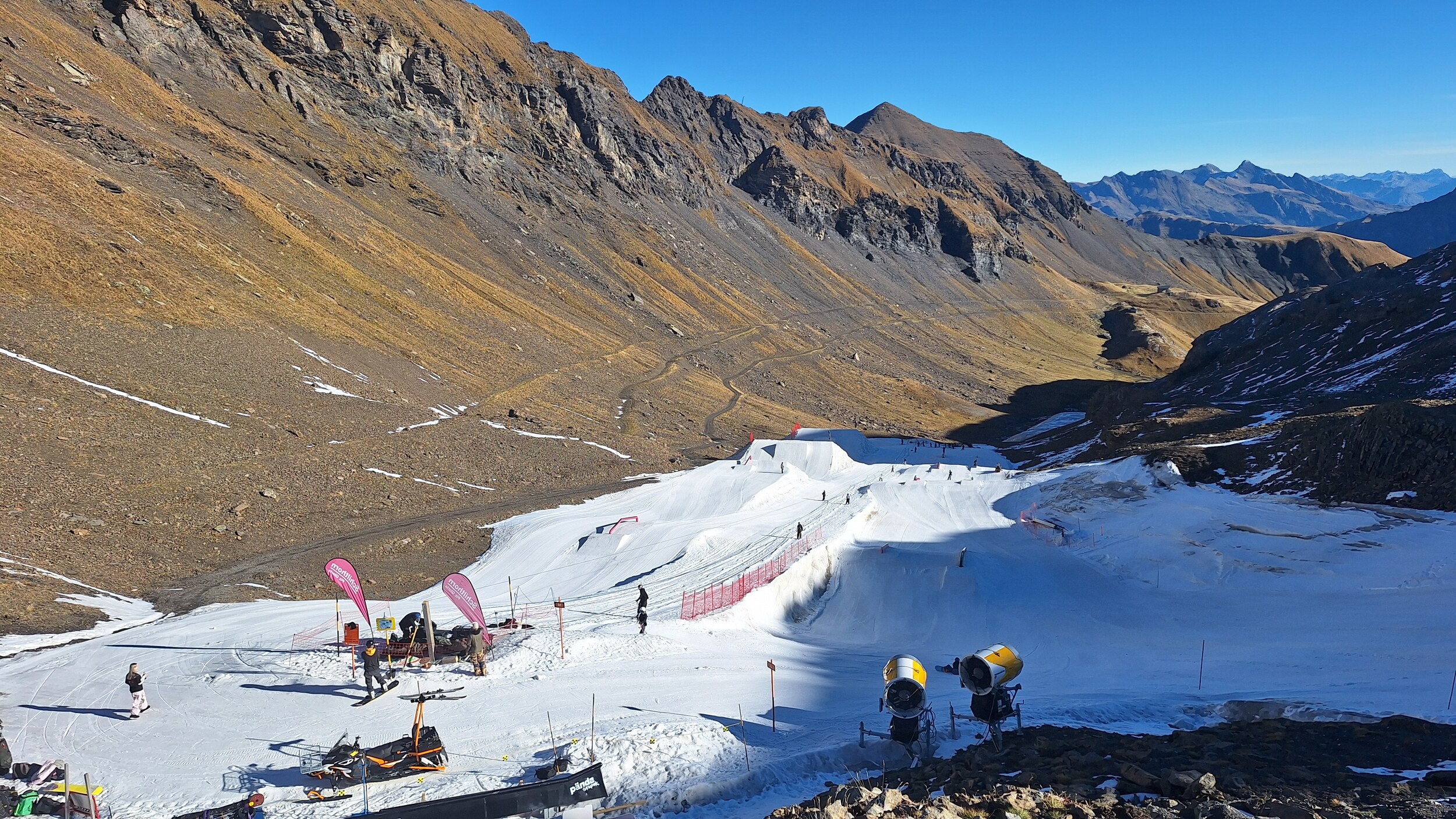 Im Berner Oberland beginnt die Wintersaison schon Ende September – trotz sommerlicher Temperaturen. Auf rund 2500 Metern im Engetal wurde aus 90’000 Kubikmetern konserviertem Altschnee die erste Trainingspiste präpariert. Daraus entsteht ein Snowpark mit Rails, Sprüngen und eigenen Seilliften, der am Wochenende mit den Pända Freestyle Sessions eröffnet wird.