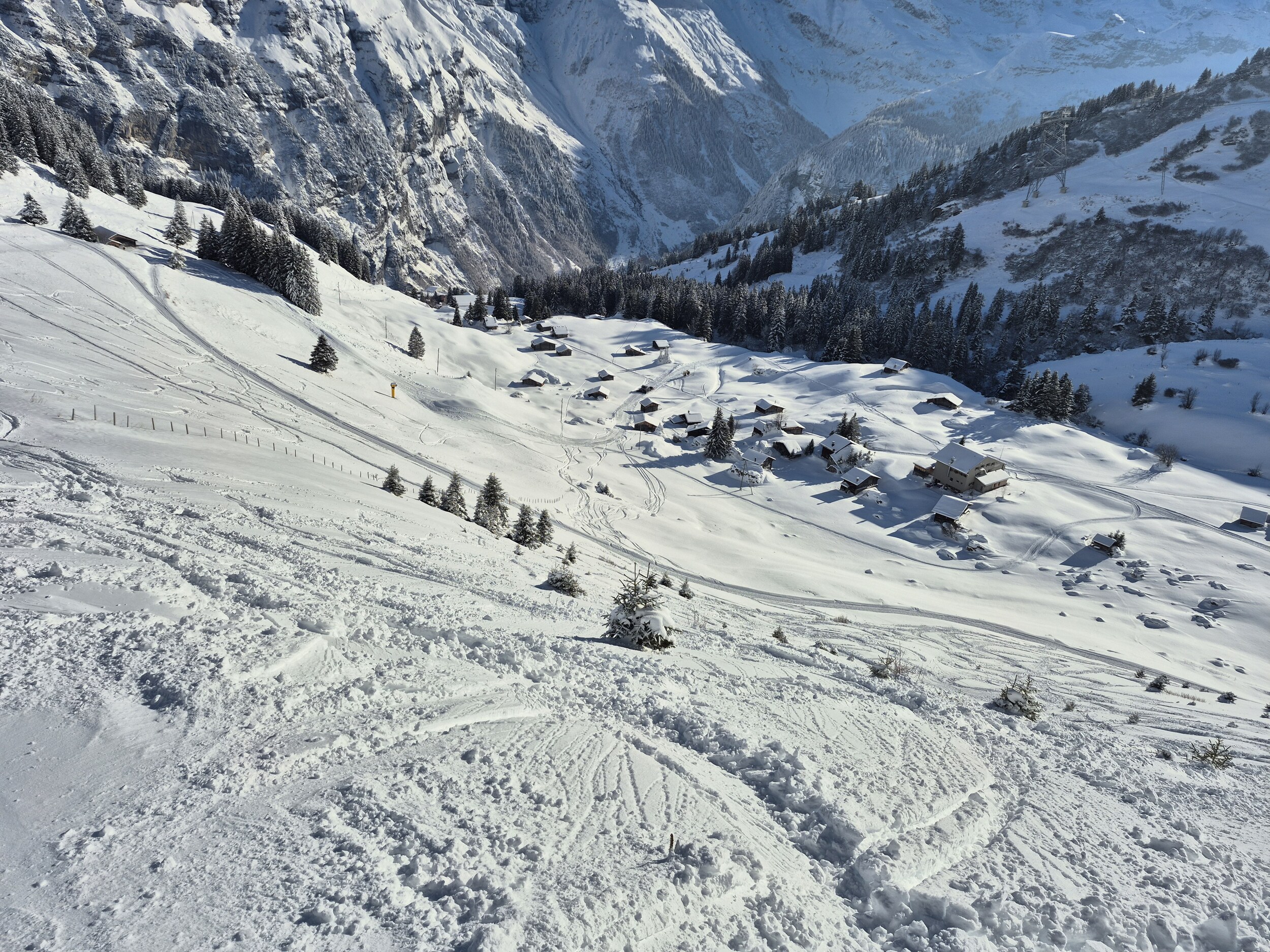 Die Abfahrt nach Mürren ist noch geschlossen, aber gut fahrbahr. Einzig im Kanonenrohr gab es 2 Abschnitte, mit vereisten Pistenfahrzeugspuren. Neben der Piste ist der Schnee super pulvrig gewesen.