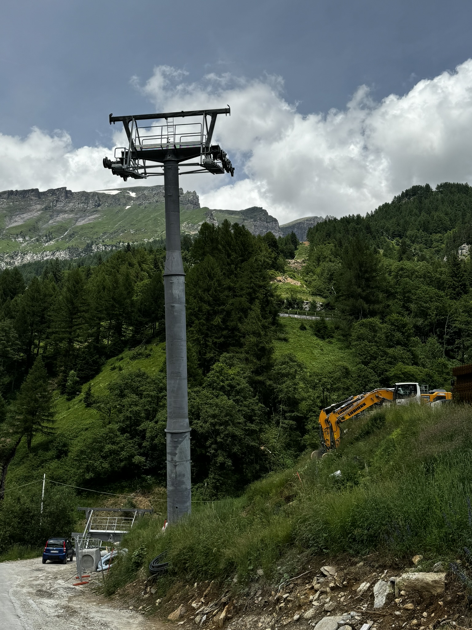 Was ich persönlich nicht verstehe, aber das ist so typisch Italien. Ist dass man in so einem kleinen Skigebiet, dass über eine extrem schmale Strasse (die zwar immer wieder breiter wird) voller Schlaglöcher, am Ende der Welt, dann so eine extravagante Anlage hinstellen muss. Ich denke eine Kompaktanlage mit offenen Stationen, aber schöner Umgebungsgestaltung hätte es auch getan.