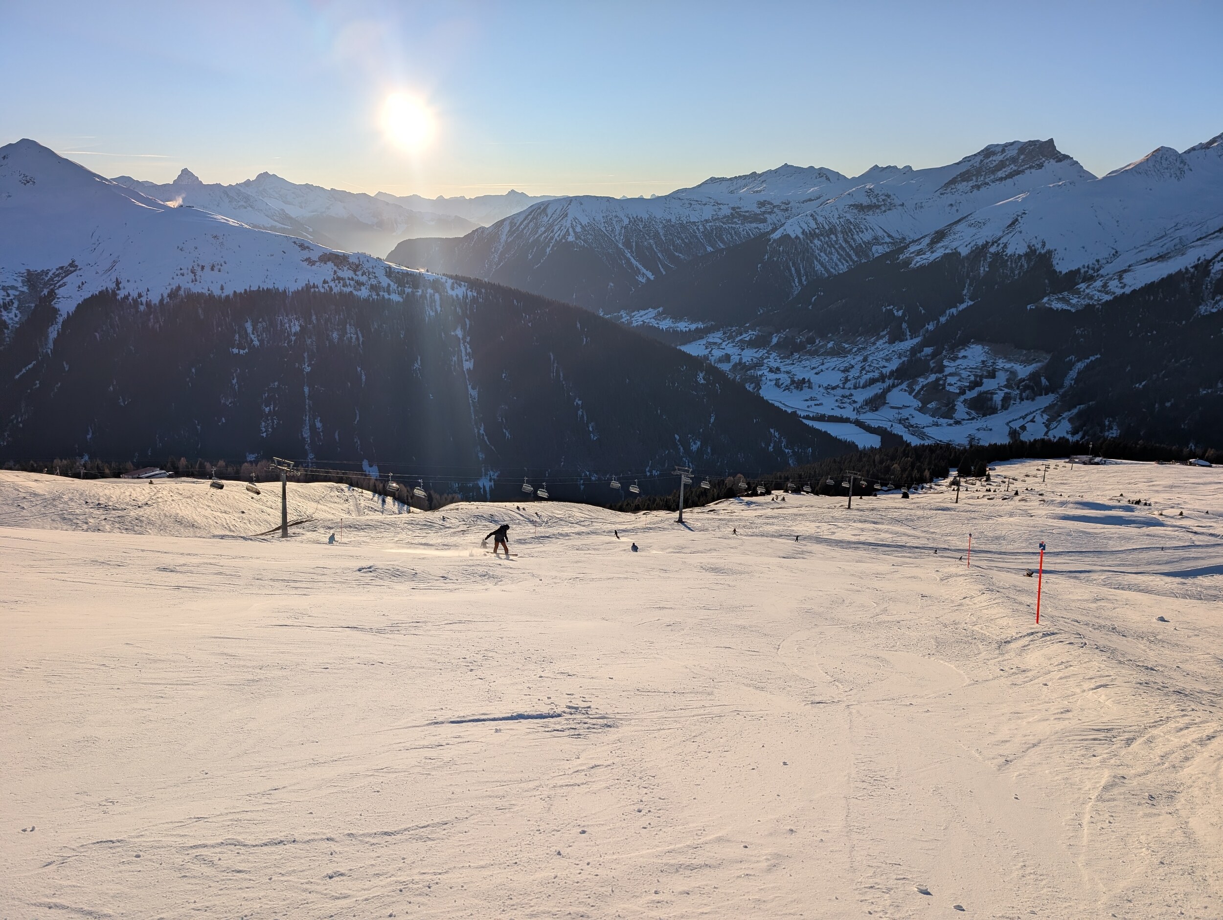 Heute zum vierten und zweitletzen Mal auf dem Jakobshorn in diesen Weihnachtsferien, und nicht weil's mir hier besonders gut gefällt.