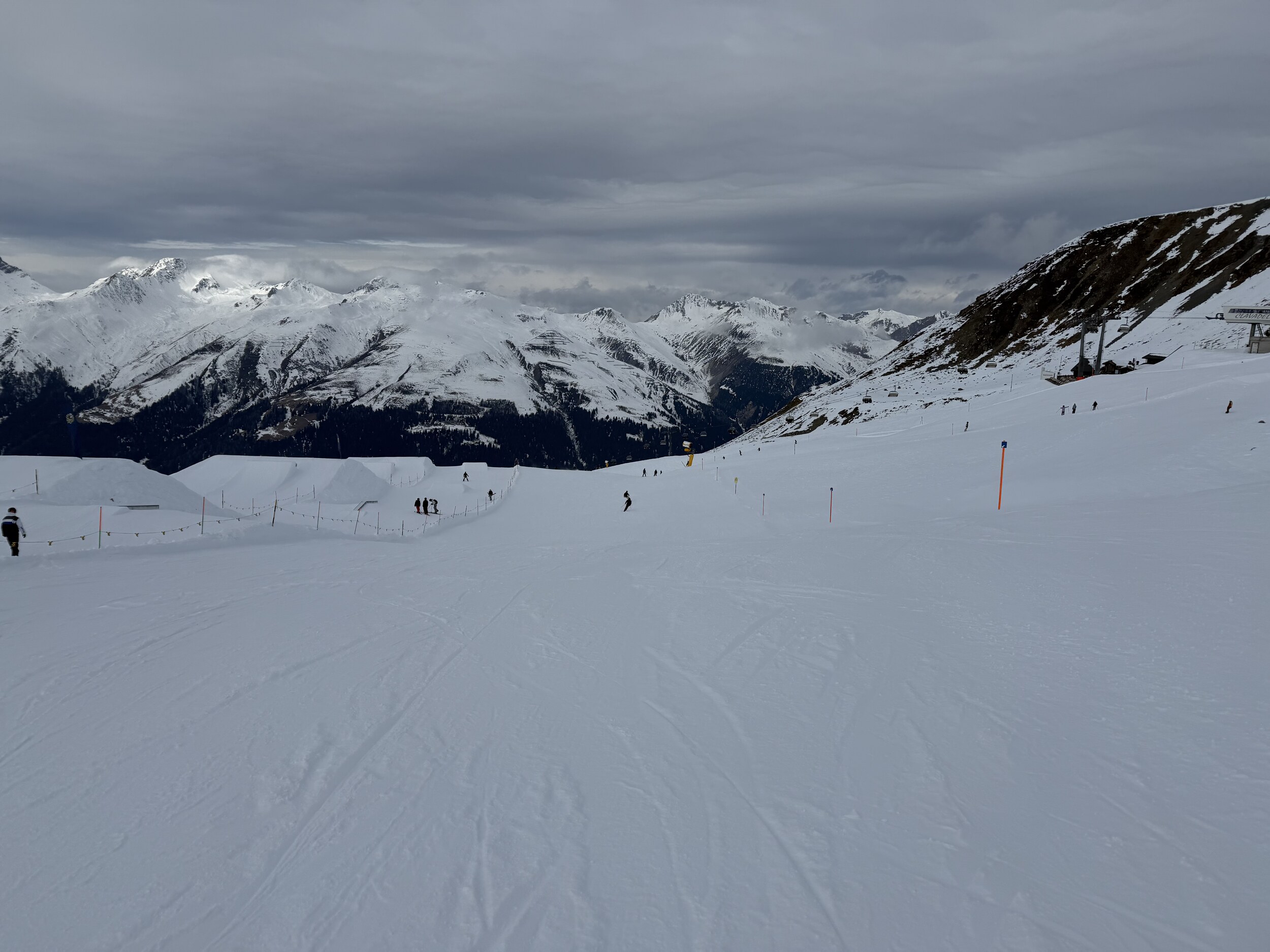 Die linke Variante beim Meierhofer endlich offen. Totalp erstmals für mich in voller Breite. Die Abfahrt zum Schifer ist top und ohne Leute. Unten markierte Schneekanonen Haufen, da kann noch viel Schnee verteilt werden.