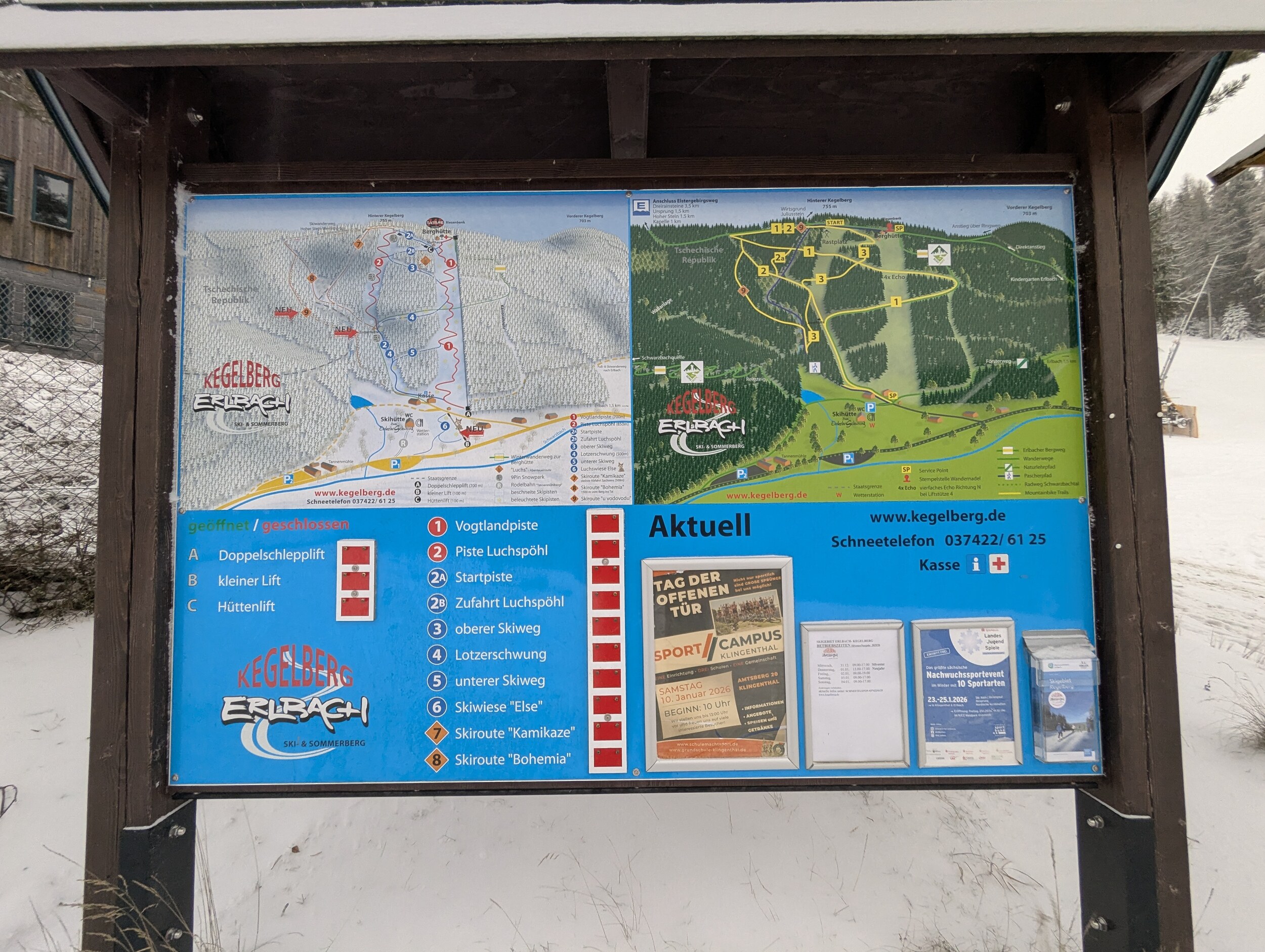 Heute Premiere für mich am Kegelberg in Erlbach. Dort seit heute offen. Hier gibt es einen Doppelschlepper und zwei Übungslifte. Die zwei Stunden Karte kostet 15€. Die erste Luftfahrt um zur Kasse zu kommen ist kostenlos.
