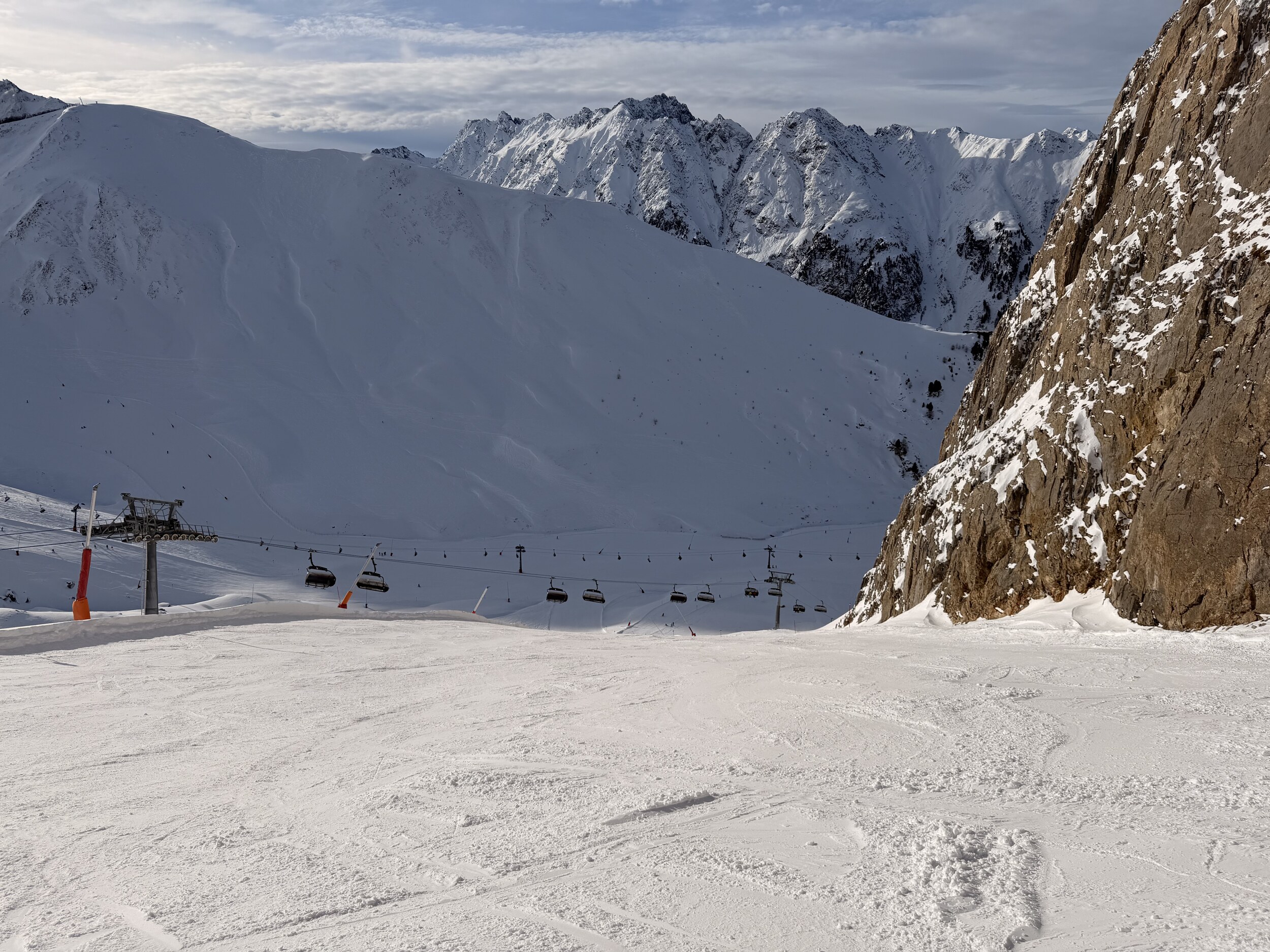 Gestern bin ich noch vormittags in Kappl gefahren. Dort war allerdings sehr voll, die Pisten zum Teil nicht geöffnet oder mit halber Breite geöffnet. Außerdem war es ziemlich eisig.