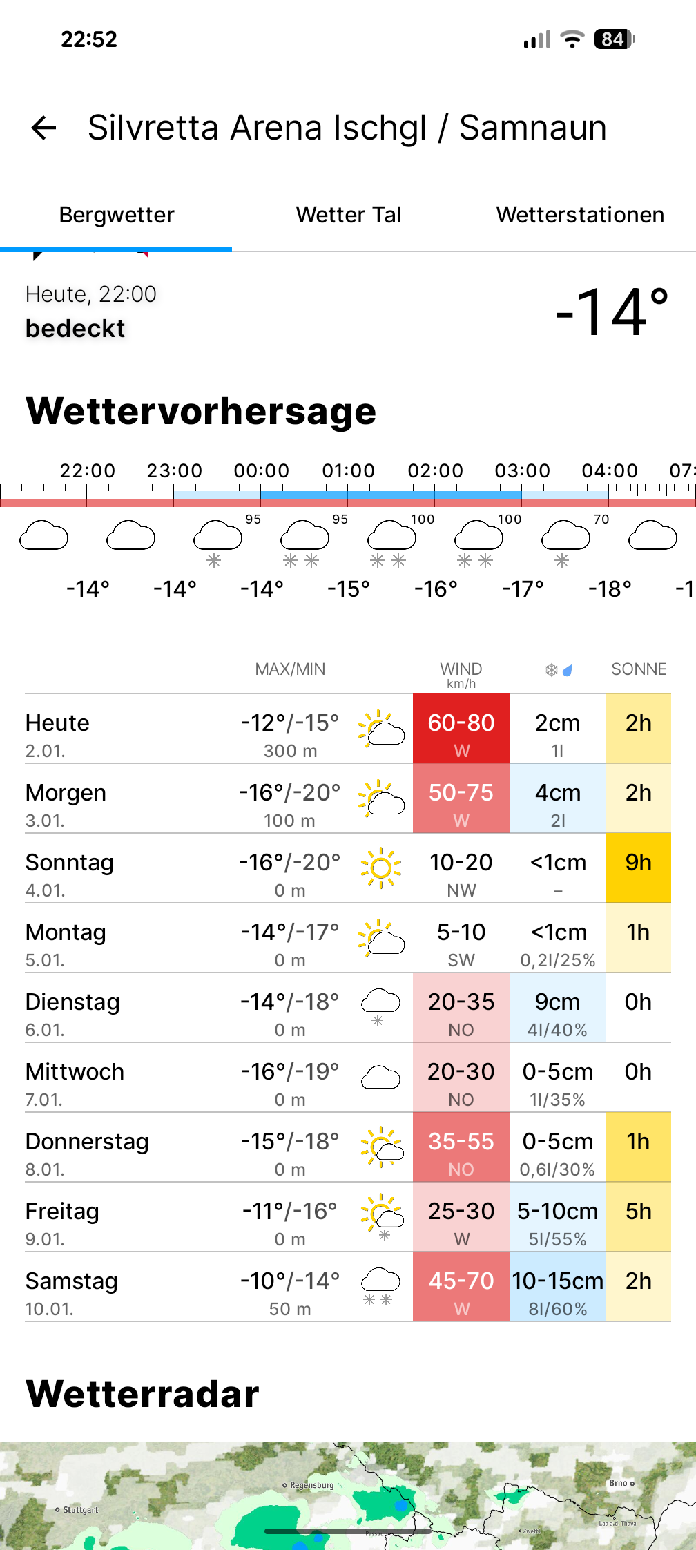 3) Aktuell (heute) mE die beste Piste ist die 14a (gefrorene Wand). Sehr steil aber momentan ungewöhnlich griffig. Must-Do ist auch die 40 am Gampen. Generell hat es sehr viele gute Pisten. Ihr werdet sie kennenlernen. Lasst Euch einfach treiben. Morgens ist die Schweiz sonnig, Ischgl fast alles im Schatten. Später dann überall abwechselnd.