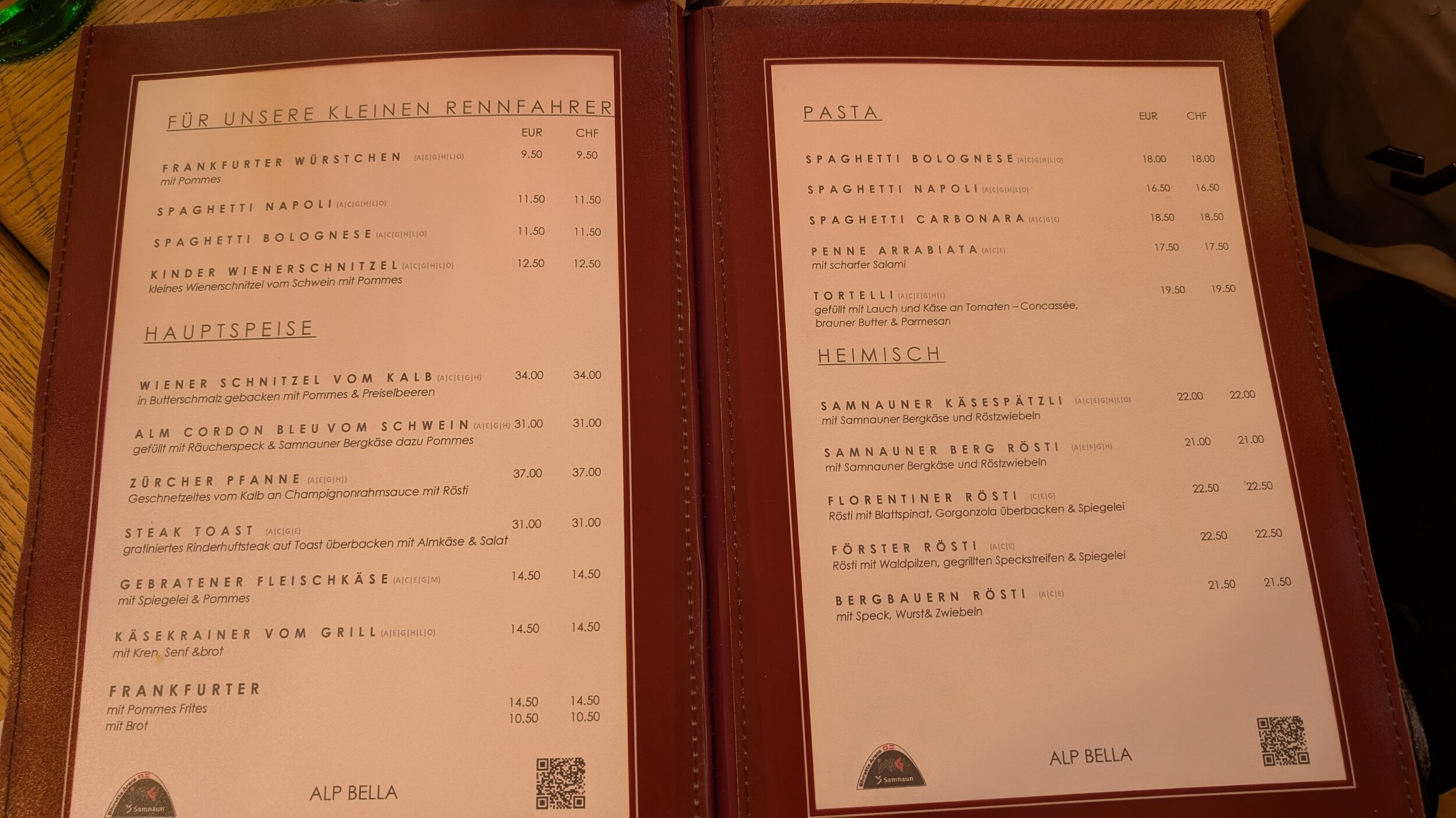 24.- für ein Schnipo finde ich jetzt nicht übermässig teuer. Gleiches (oder fast) zahlt man auch in Sölden am Rettenbach zB. . Die 32.- für dieses Gericht in der Gampenalpe dann aber schon.