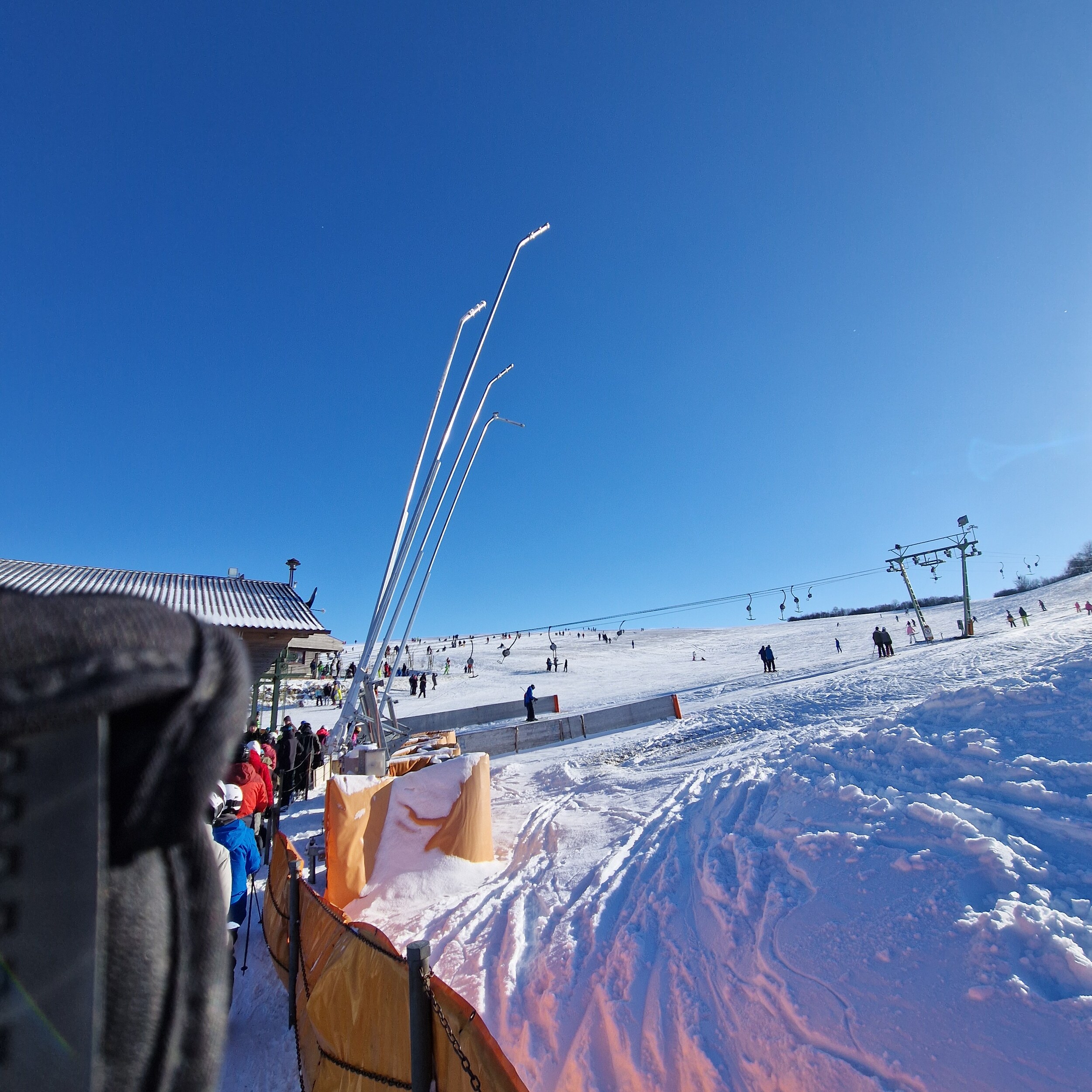 Es gab einen großen Beschneiungshügel vor den Lanzen. Dieser wurde aber noch nicht verschoben. Ob der aber überhaupt ausreichen würde. Andererseits ist es kalt genug über Nacht...