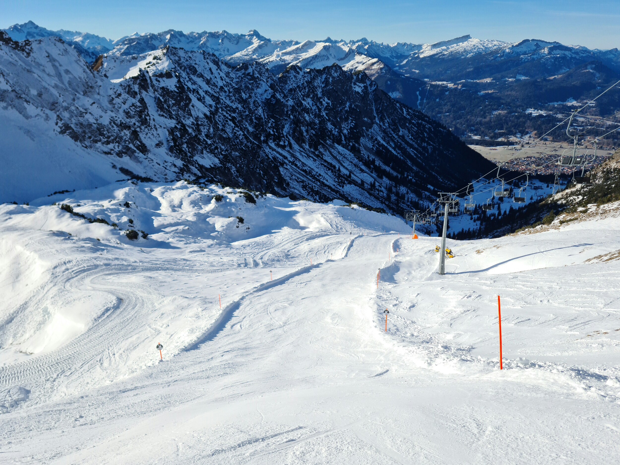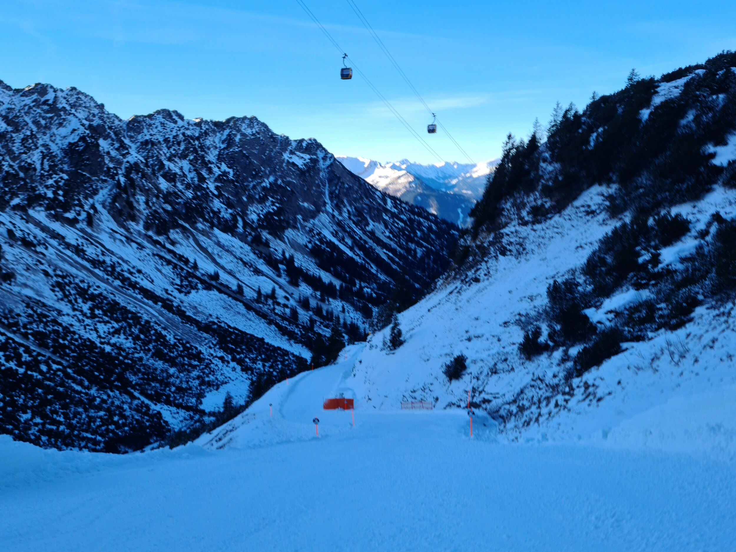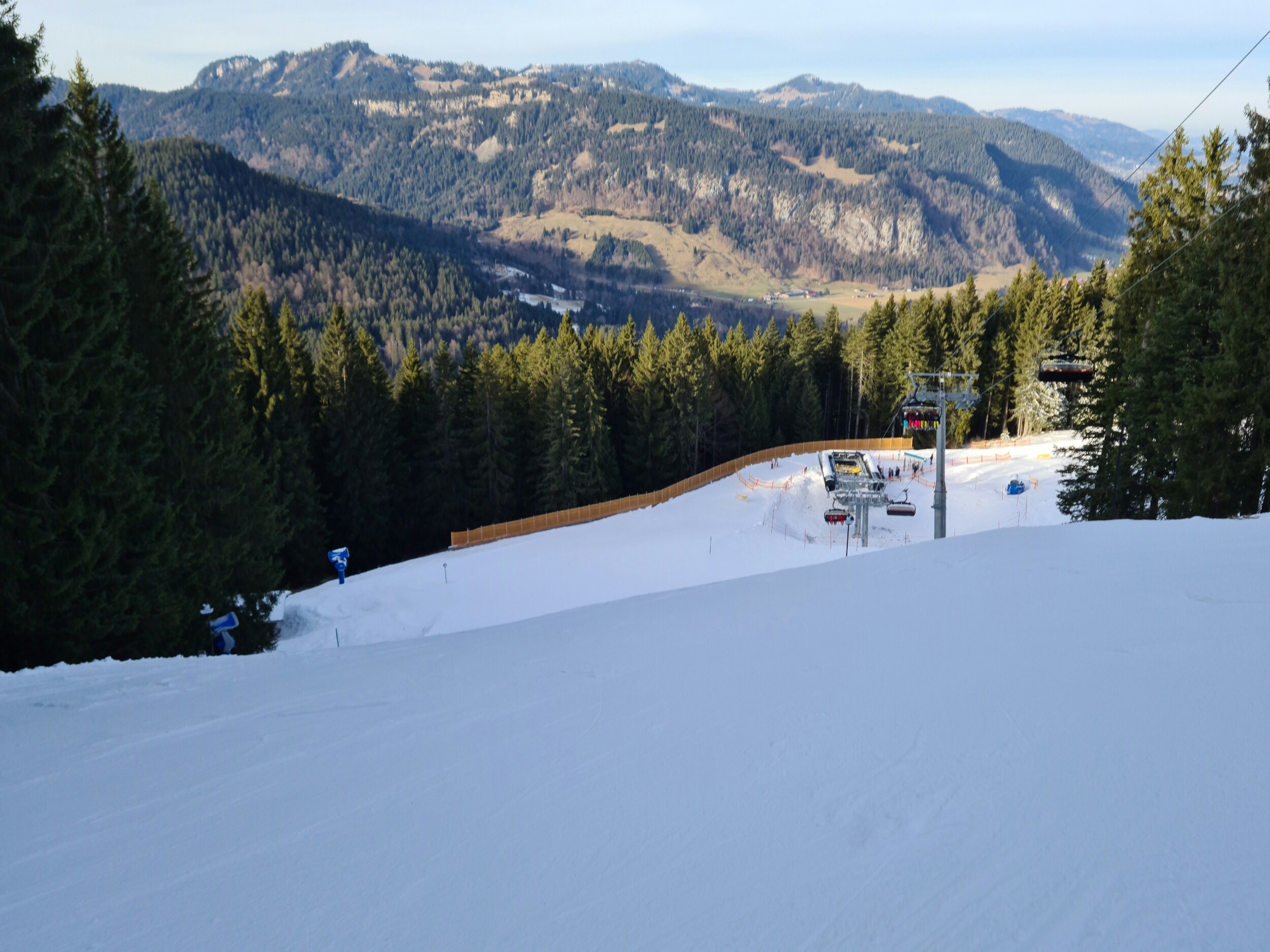Ich bin schon überrascht, dass so wenig los war. Am Nebelhorn hatte ich sogar bei zum Teil eine Privatkabine, auch sonst war es eher leer, gewartet habe ich nur kurz an Koblat- und Schrattenwangbahn. Besonders schön war natürlich, den Höllwieslift mal gefahren zu sein. Die geöffnete Abfahrt hat einfach ein tolles Gelände und auch die Naturschneeabfahrt sah so aus, als würde sie Spaß machen, wenn sie geöffnet wird.