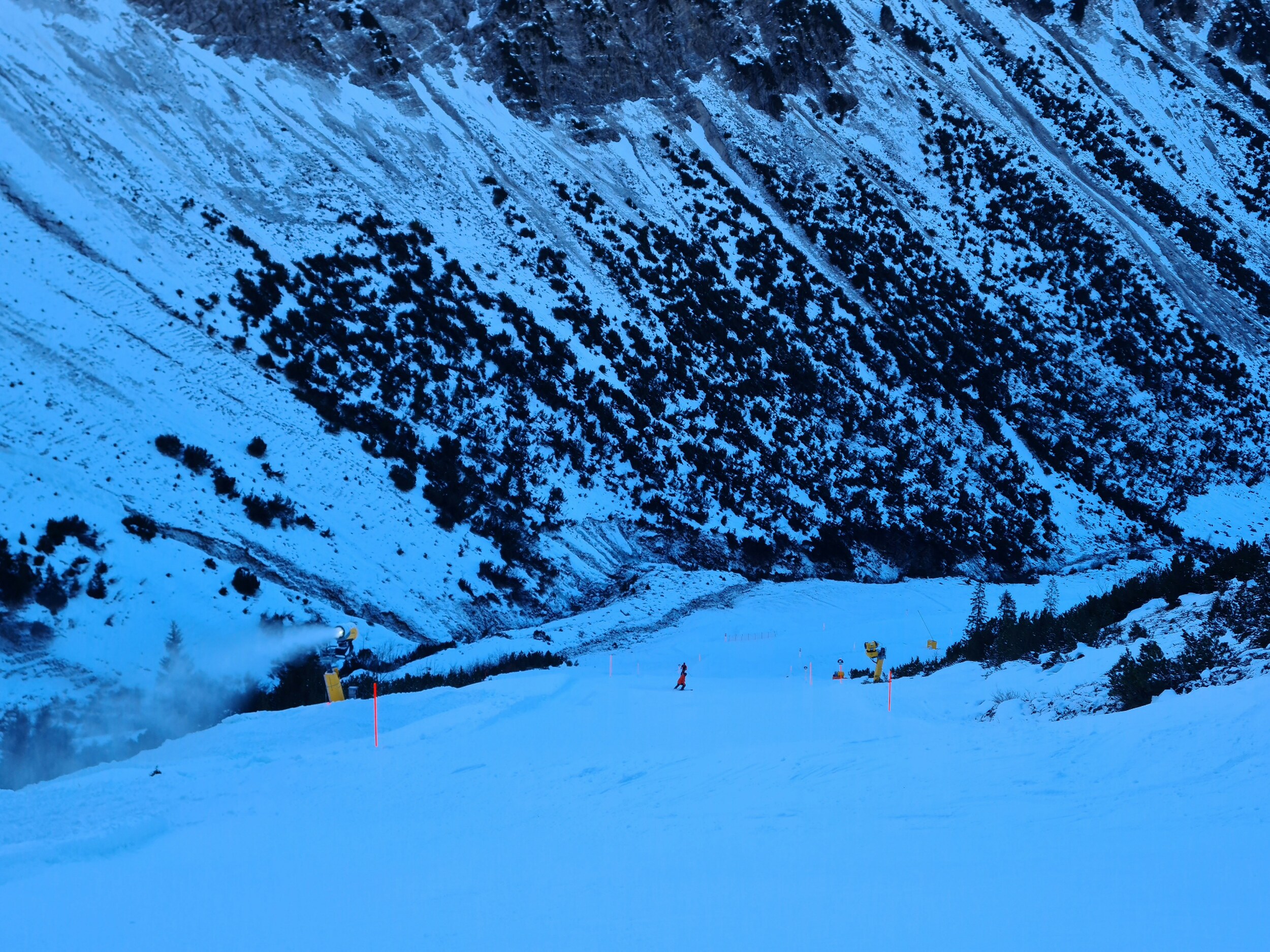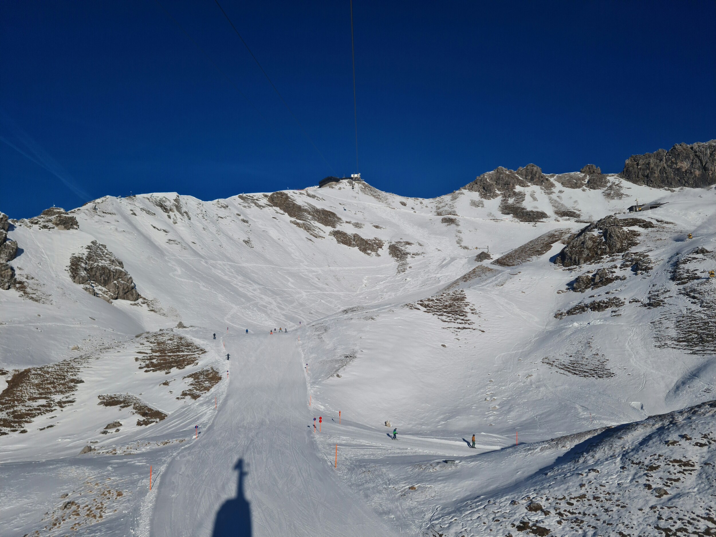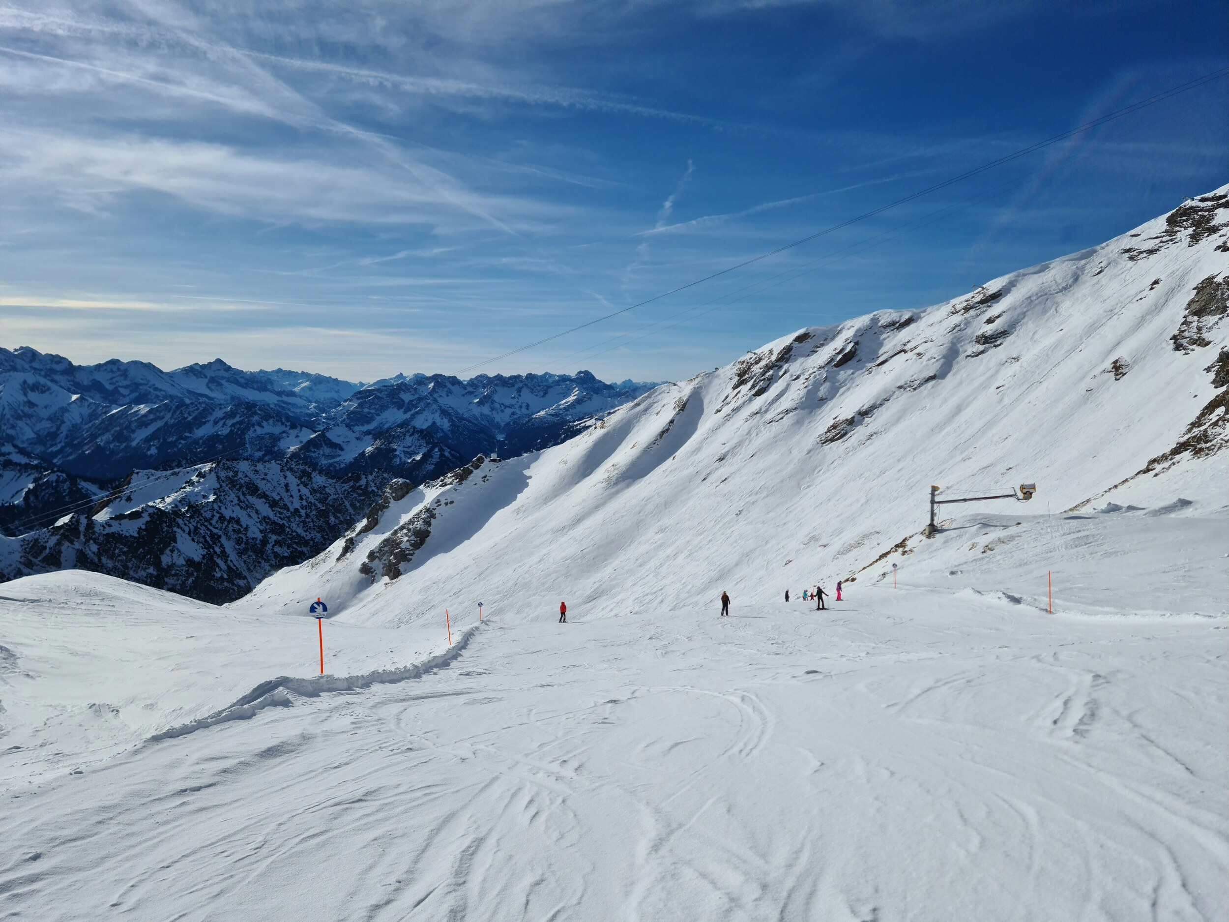 Ich bin schon überrascht, dass so wenig los war. Am Nebelhorn hatte ich sogar bei zum Teil eine Privatkabine, auch sonst war es eher leer, gewartet habe ich nur kurz an Koblat- und Schrattenwangbahn. Besonders schön war natürlich, den Höllwieslift mal gefahren zu sein. Die geöffnete Abfahrt hat einfach ein tolles Gelände und auch die Naturschneeabfahrt sah so aus, als würde sie Spaß machen, wenn sie geöffnet wird.