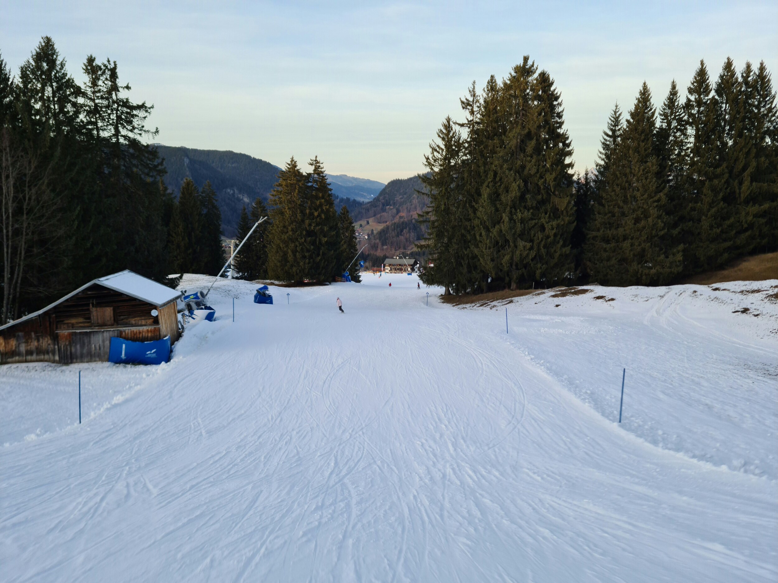Das Söllereck habe ich im Winter noch nie befahren, wollte es aber immer mal erkunden. Mit der Wiedereröffnung des Höllwieslifts, dessen Schicksal ich seit Jahren verfolgte, auf verkürzter Trasse gab es nun für mich einen Anlass, noch zum Söllereck zu fahren. Und es hat sich gelohnt, denn der Höllwieslift erschließt eine wunderbar coupierte Piste und war gleichzeitig überhaupt nicht überlaufen. Die Piste selbst war auf der härteren Seite und es gab einzelne eisige Stellen, die mich aber nicht wirklich gestört haben, weil die Abfahrt für mich insgesamt griffig genug war. Die anderen Pisten des Söllerecks habe ich als gut empfunden, auf der Talabfahrt war aber einiges los. An der Schrattenwangbahn gab es zwar kürzere Wartezeiten, die rote Piste fand ich aber gut, die Blaue bin ich nicht gefahren.