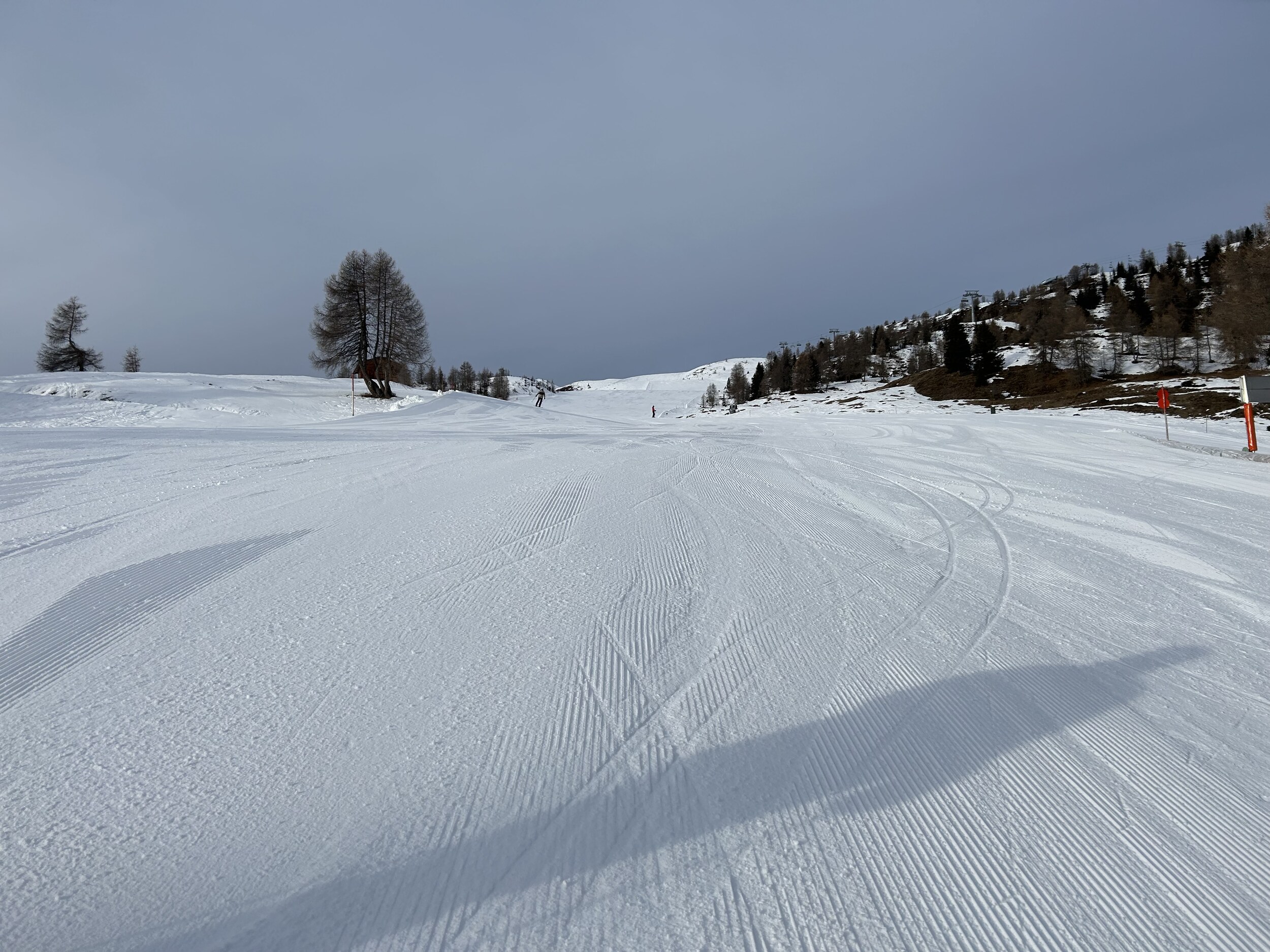 Pisten oben sehr fein präpariert, Bodensicht passt auch noch. Wenig los bisher.