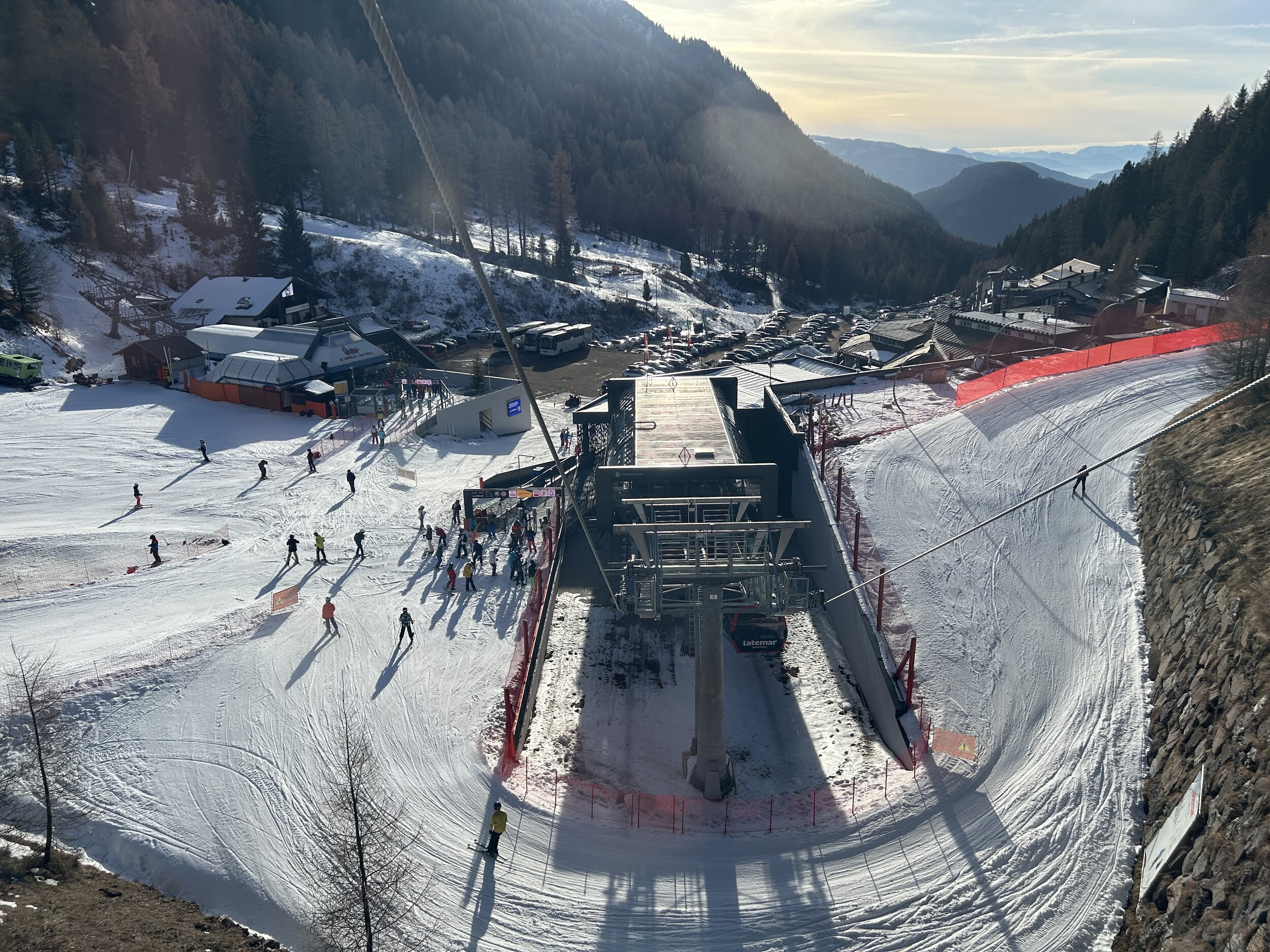 Heute in Obereggen doch deutlich mehr los als gestern in Cermis, geöffnete Pisten aber sehr gut.