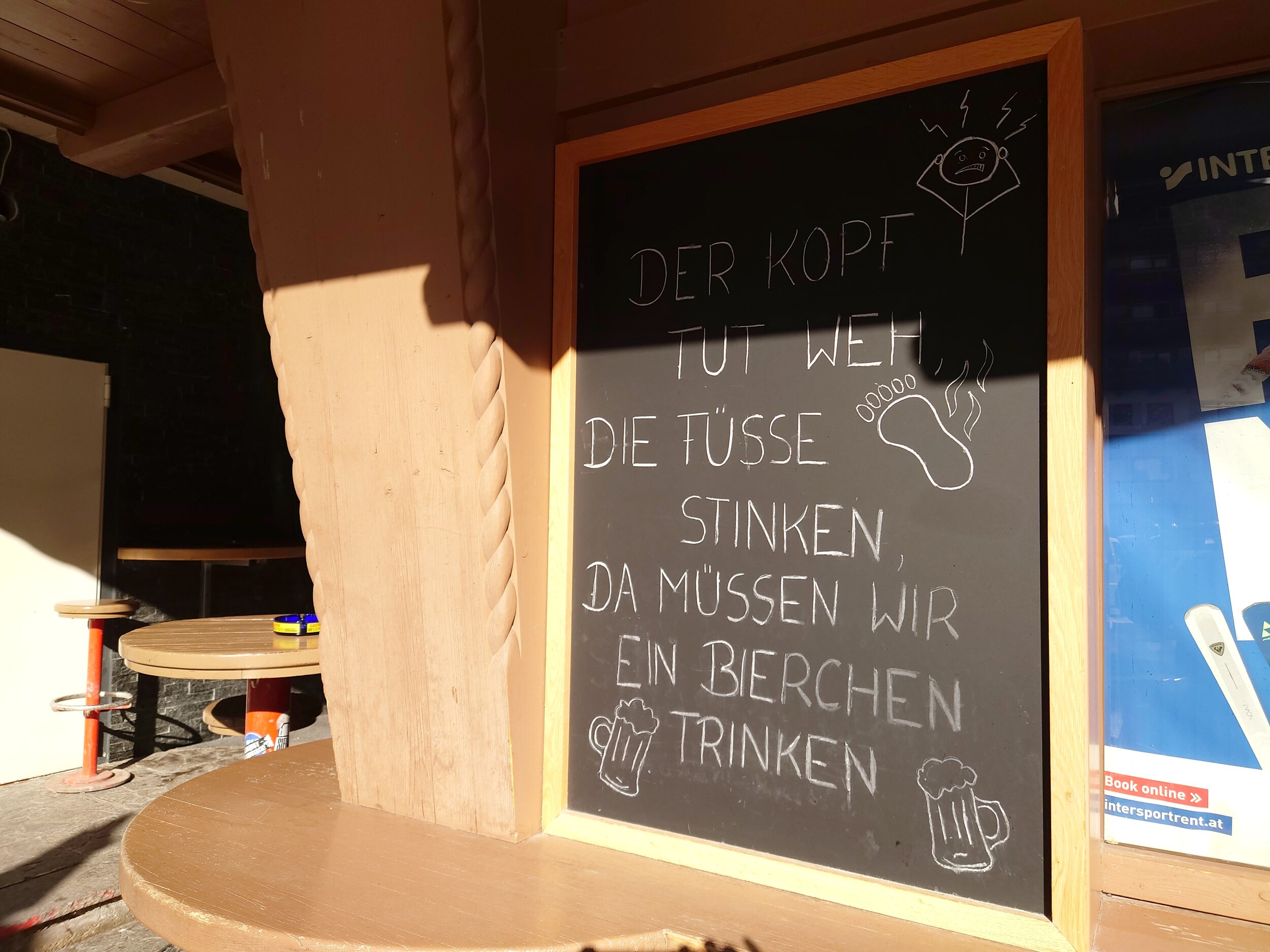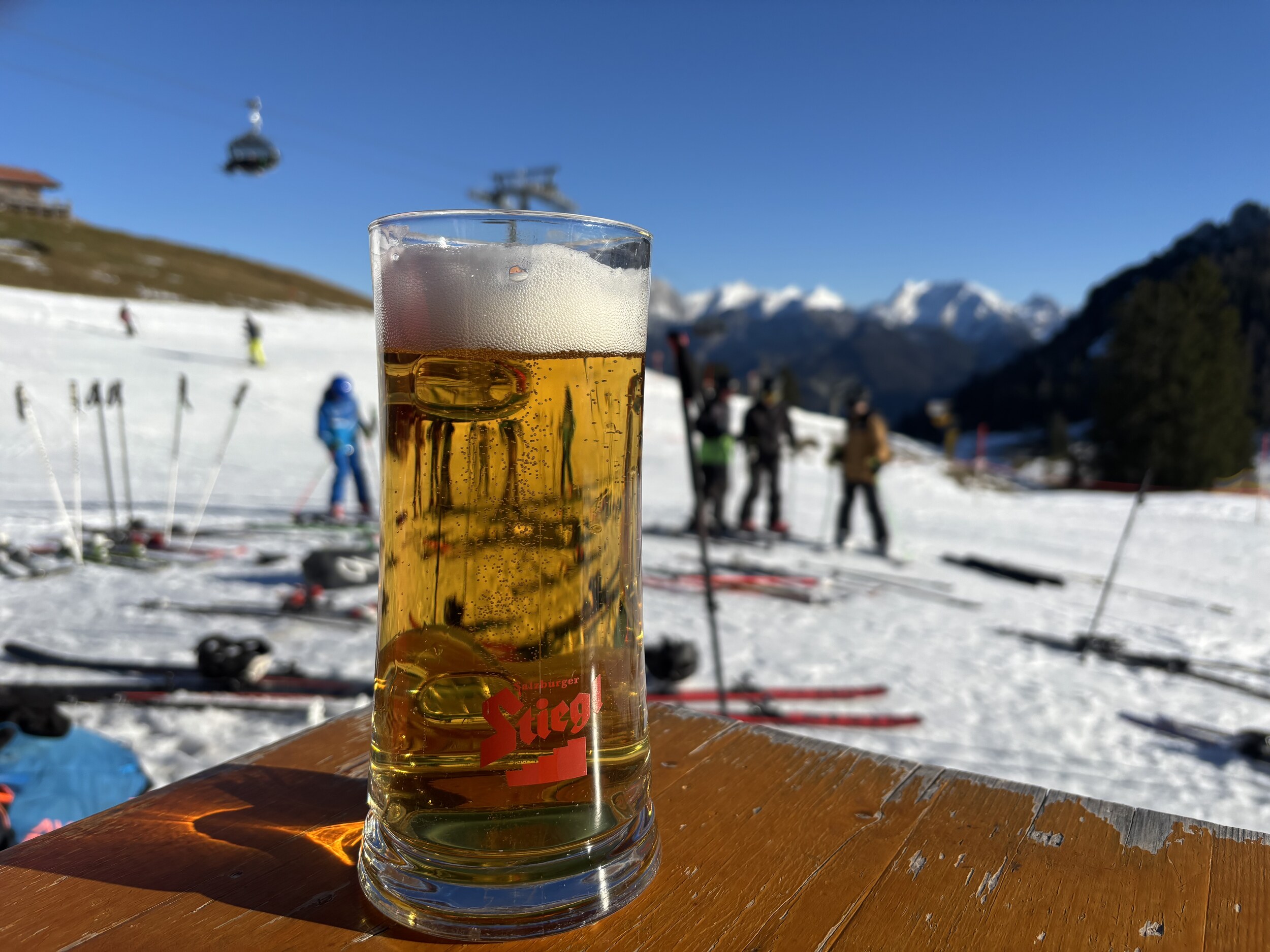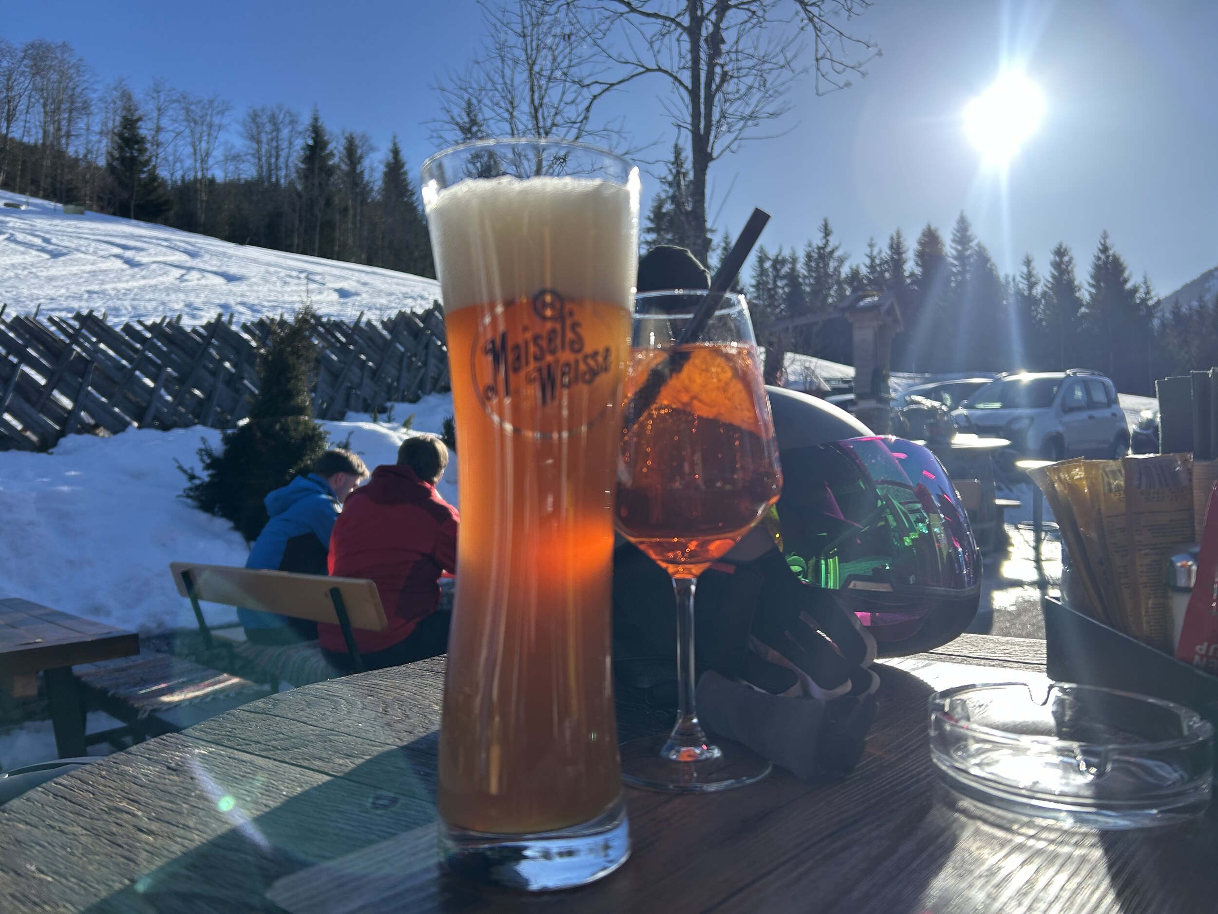 Dieses leckere Radler genieße ich gerade nach einem schönen Schnee-Skitag und Sauna in Gurgl.