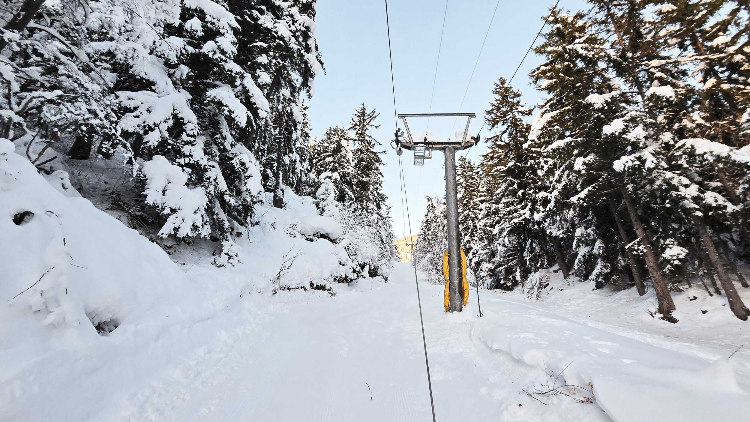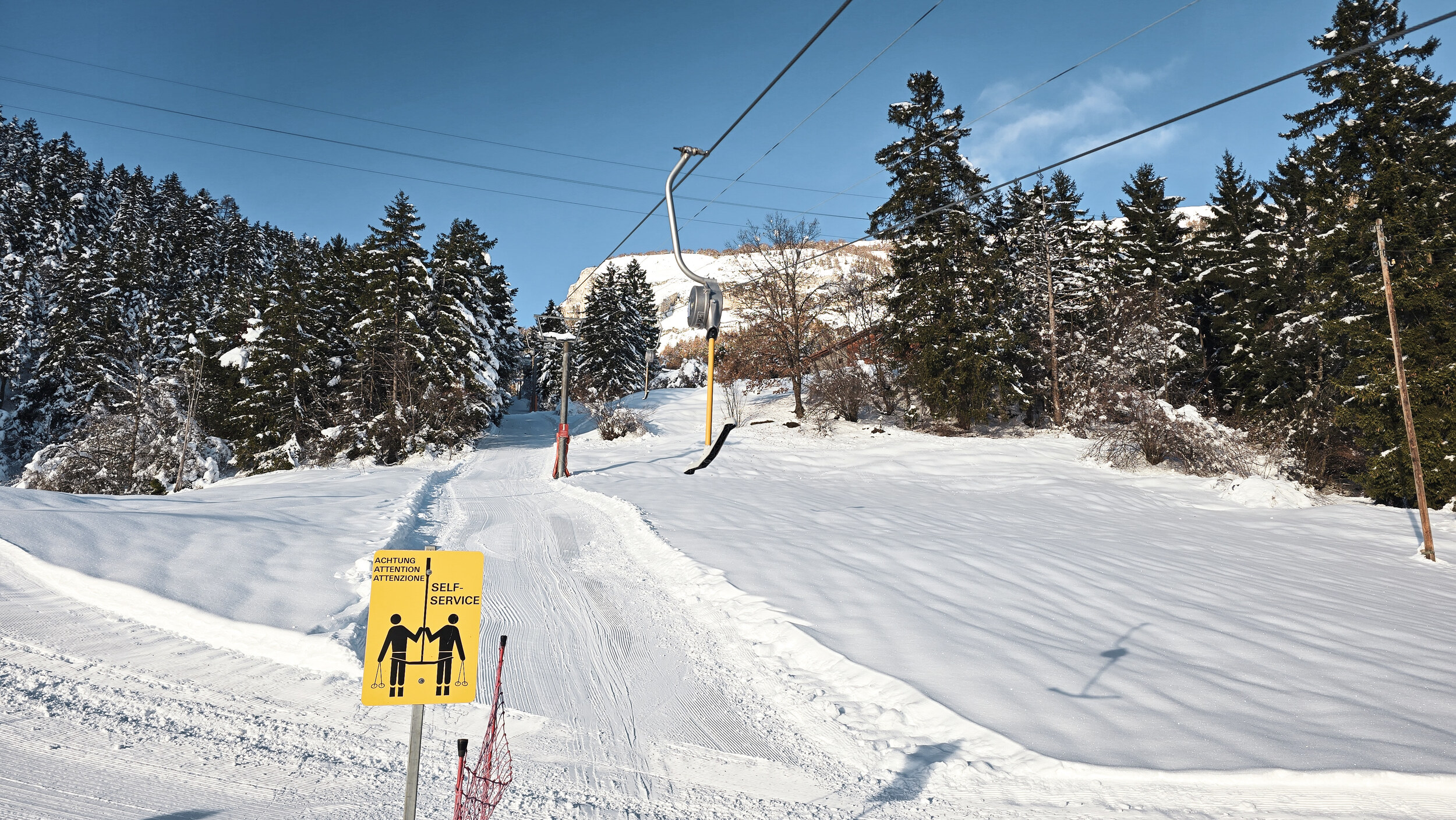 Die Aussicht macht diese versteckte Ecke zusätzlich besonders. Vom Tal aus würde man kaum vermuten, dass hier oben ein Skilift seine Runden dreht. Doch wer einmal dort steht und in eine frisch verschneite Landschaft blickt, versteht sofort, warum dieser Ort seinen ganz eigenen Reiz hat. Besonders bei Neuschnee wirkt die Szenerie fast schon märchenhaft. Am Ende bleibt der Eindruck einer Anlage, die wohl vor allem der Dorfjugend und den Einheimischen dient. Ein Lift, der nur selten läuft und kaum über das Tal hinaus bekannt ist. Doch gerade deshalb hat dieser Ort etwas Besonderes. Wer gezielt das Aussergewöhnliche sucht und Freude daran hat, eine entlegene und malerische Ecke zu entdecken, dem sei ein Besuch hier wärmstens empfohlen.