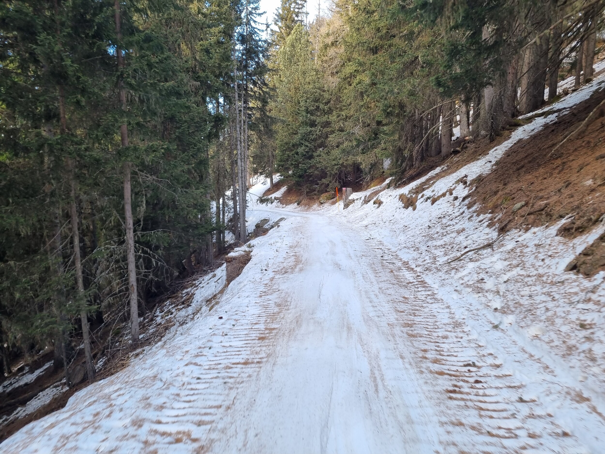 Hätte nicht erwartet dass an der schwarzen Piste von Attelas nach Ruinettes noch Steine sind nach den Schneefällen.