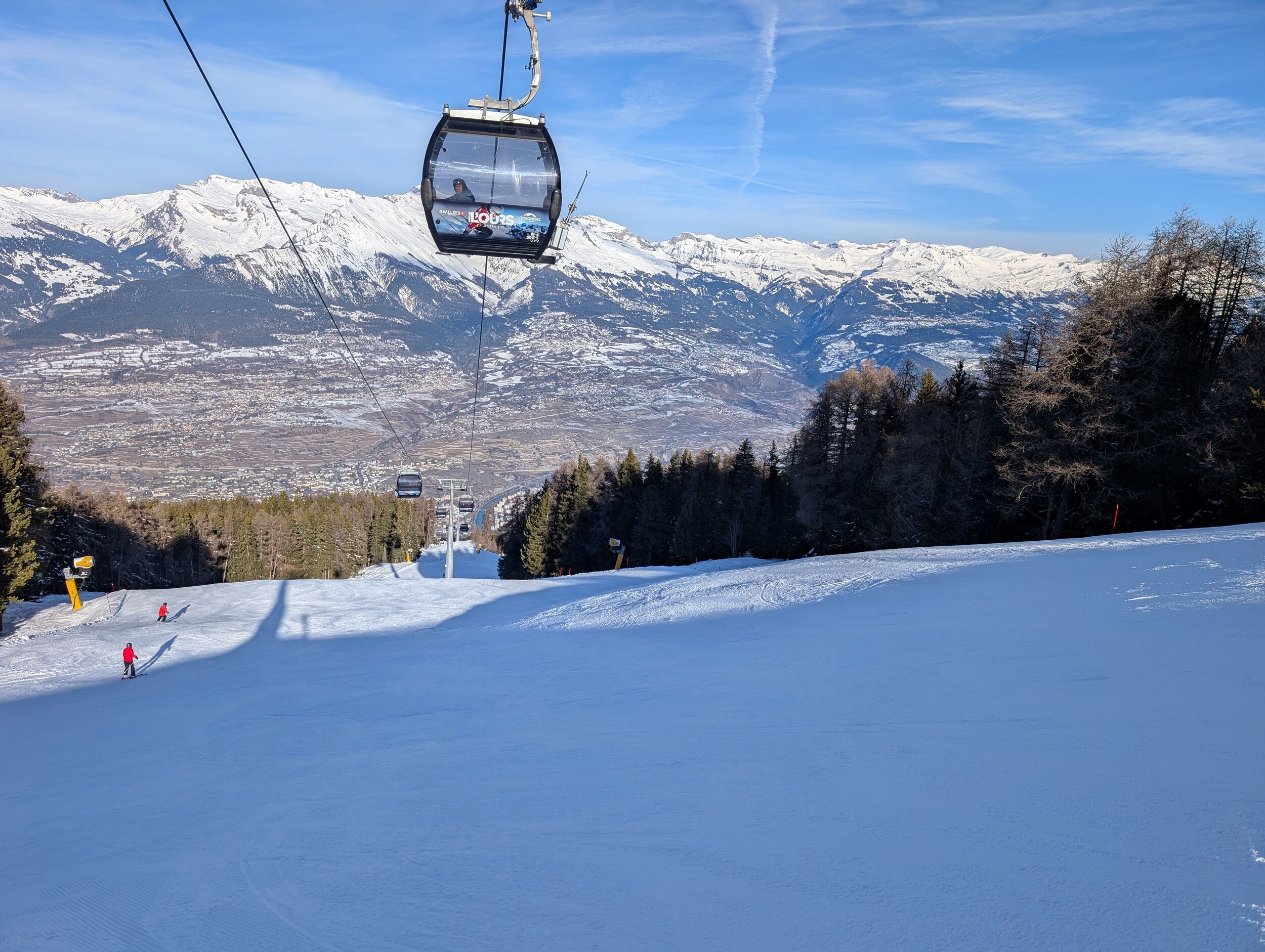 Zum Abschluss sind wir nach Veysonnaz gewechselt und haben noch die Pisten Mayens und Ours gefahren. Natürlich sind die Pisten dort bereits ziemlich rutschig, und wirklich genussvoll war es nicht mehr.