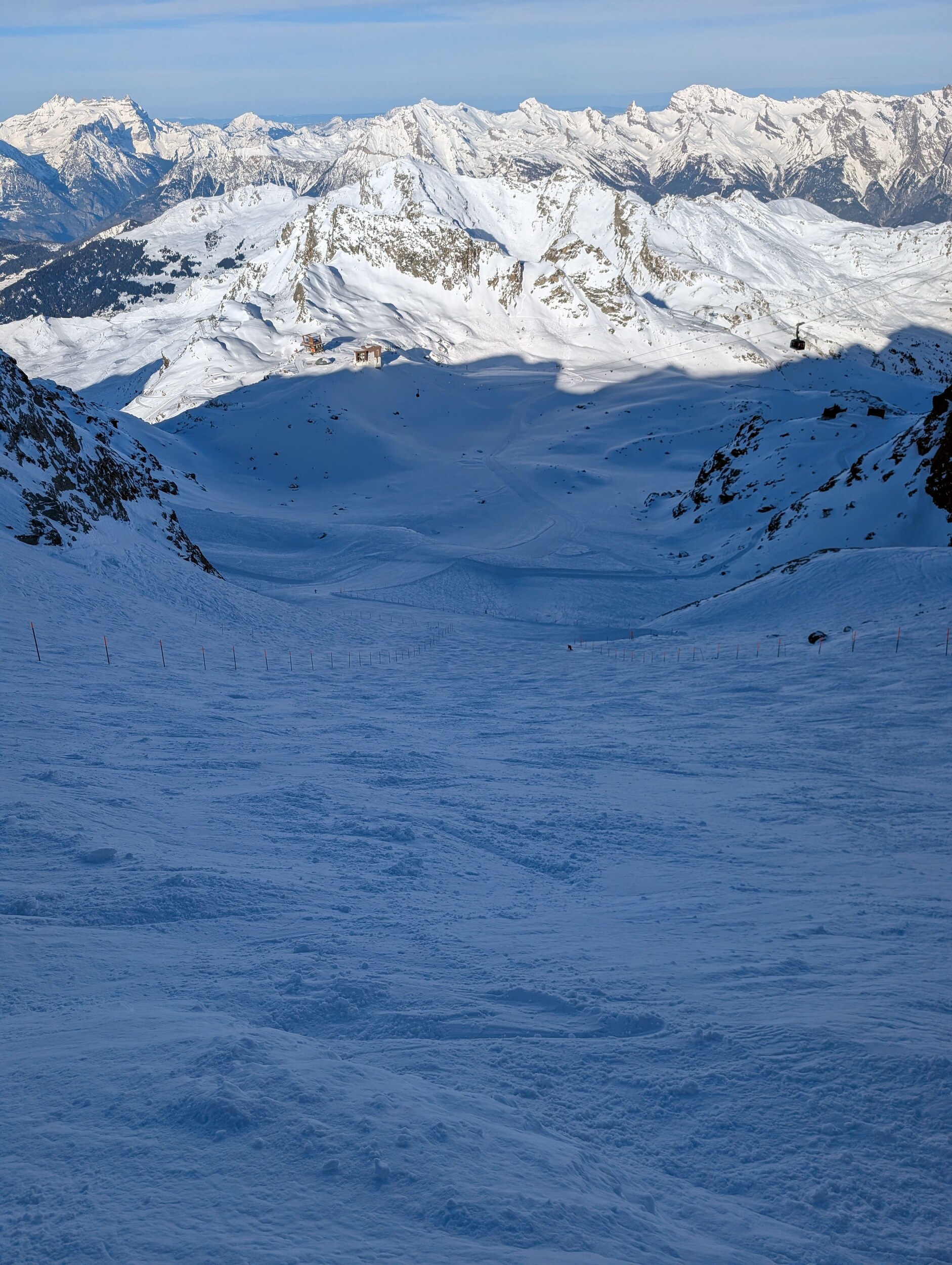Deshalb auch heute wieder der Einstieg ins Gebiet über den Mont-Fort mit der tollen Aussicht und der schönen Piste.