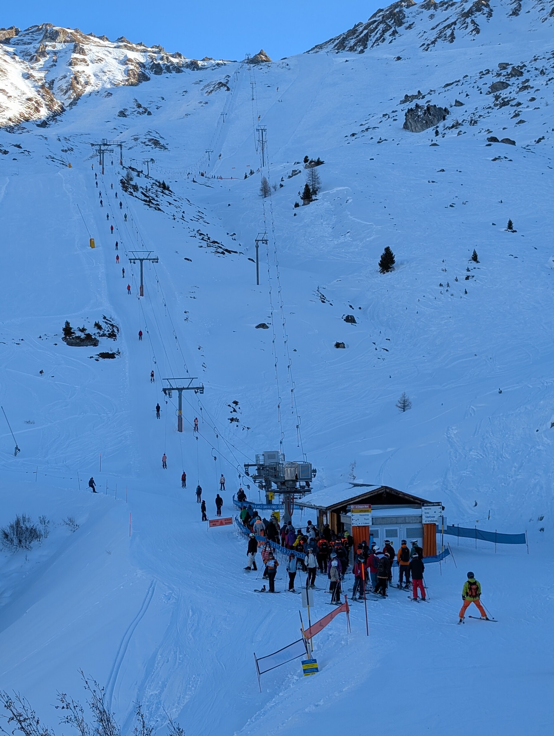 Gestern war ich in den 4 Vallées. Wir sind bei den Attelas-Pisten gestartet, die perfekt präpariert waren. Die Wartezeiten beim Funispace und beim Sessellift Attelas lagen unter 5 Minuten. Danach sind wir wegen der Sonne in den Sektor La Chaux gewechselt – offenbar hatten viele dieselbe Idee, entsprechend waren die Pisten recht voll und die Wartezeiten deutlich länger.
