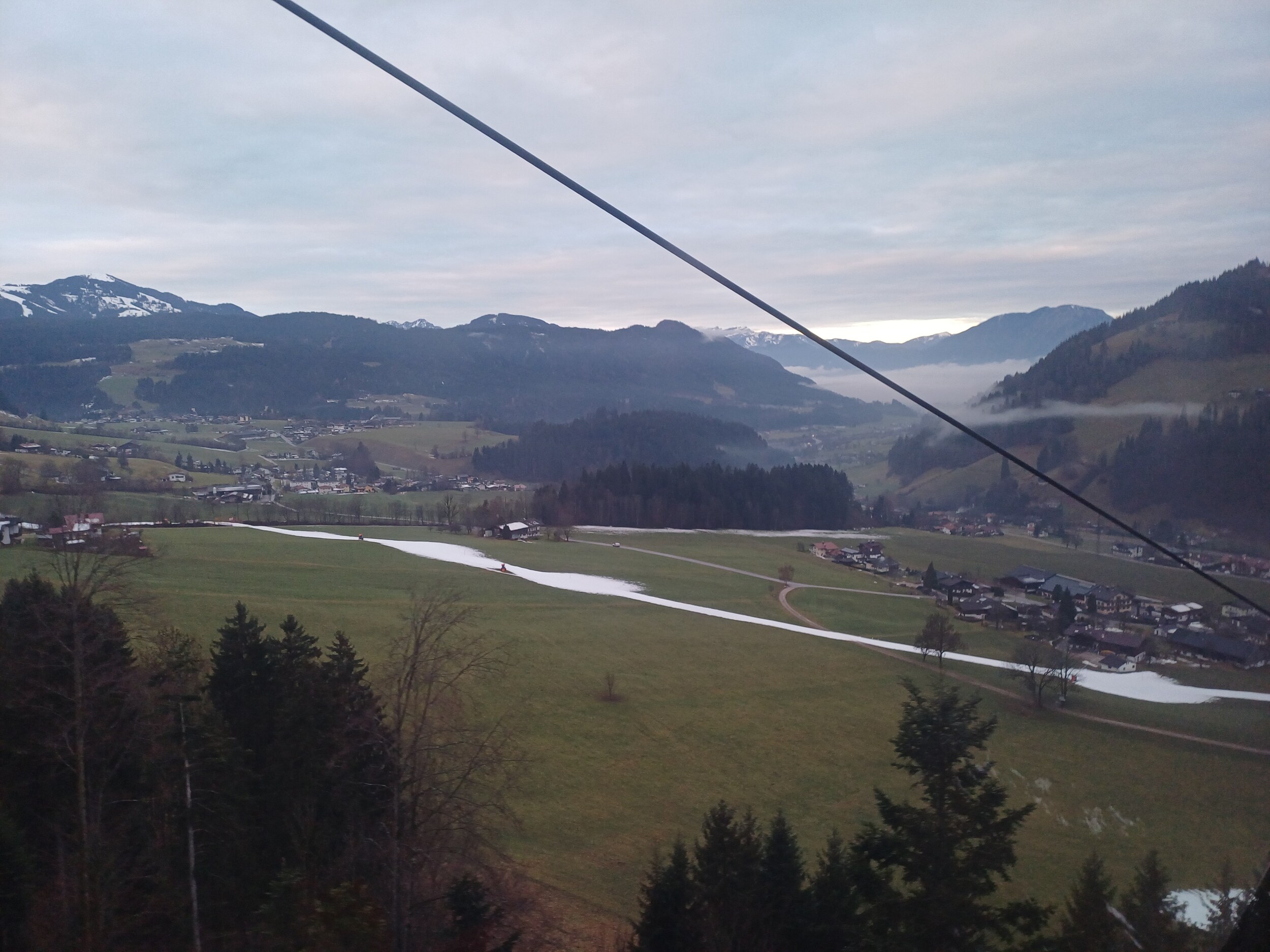 Weiter gehts: Blick auf das wenig einladende Hopfgarten: Allgemein fällt mir bei den Skiwelt Orten auf, dass es keine so große Hotelerie wie in den anderen Tälern in Tirol gibt. Eher Ferienhäuser und Pensionen / Fewos. Zumindest mein Eindruck.