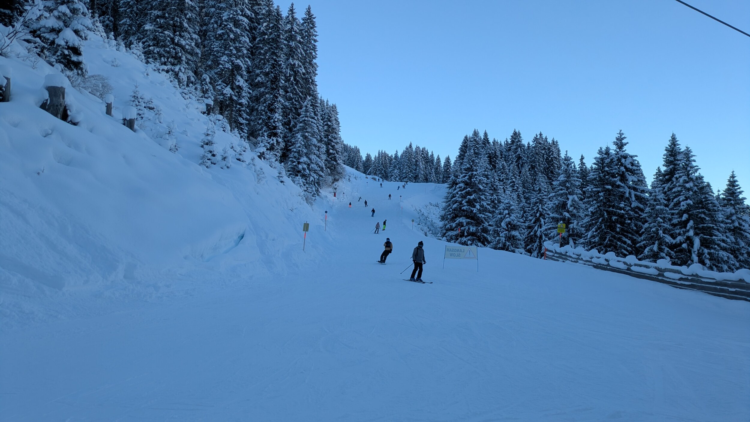 Insgesamt war bis auf Sonntag relativ wenig los. Wartezeiten gab es wenig (4-5 FBM) bis gar nicht und auf den Pisten hielt sich der Andrang meist in Grenzen. Für uns seit Jahren endlich mal eine Skiwoche mit etwas weniger Getümmel