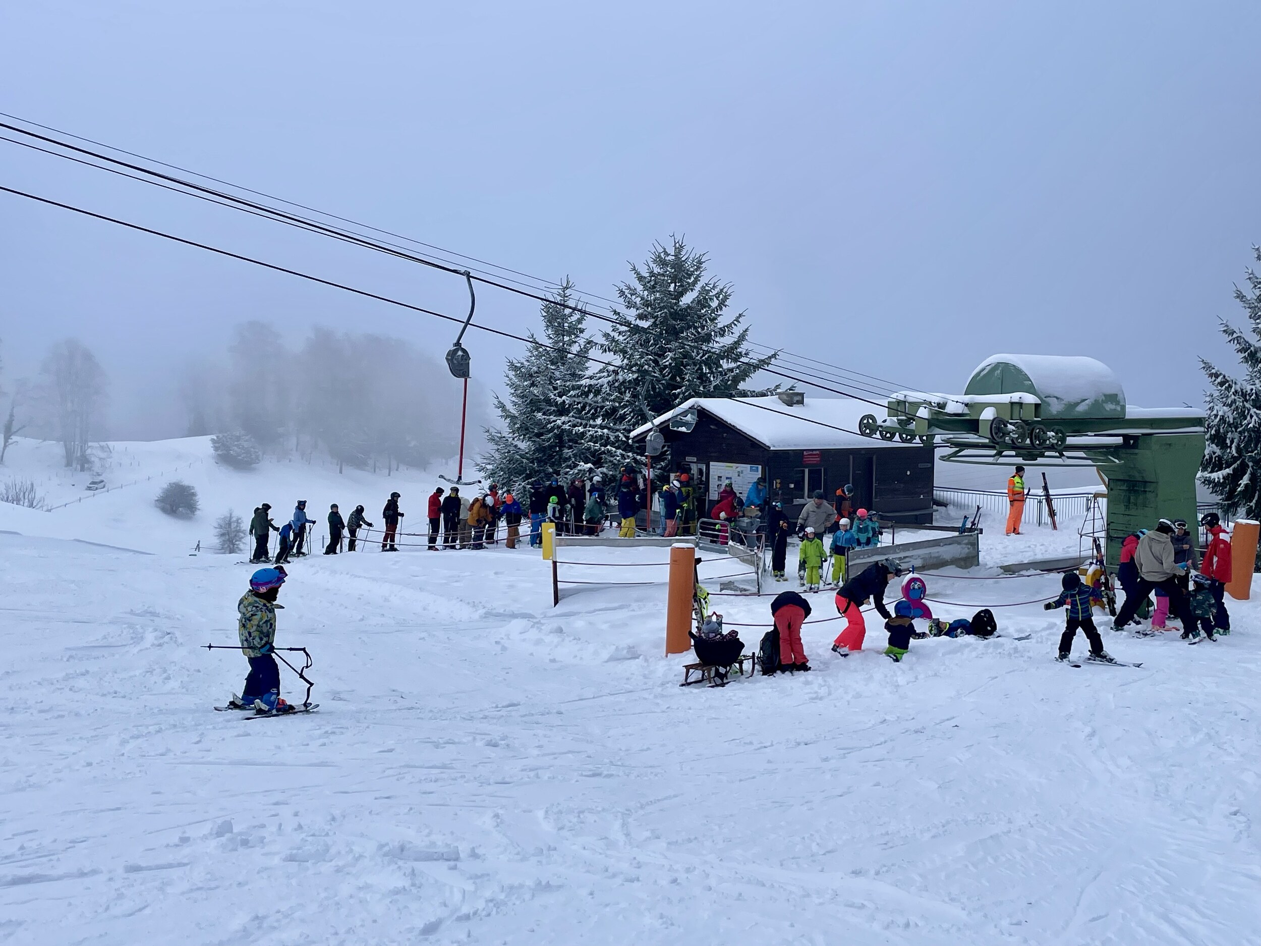 Ab 10Uhr bildeten sich Schlangen am grossen Lift und dem kleinen Ponylift.