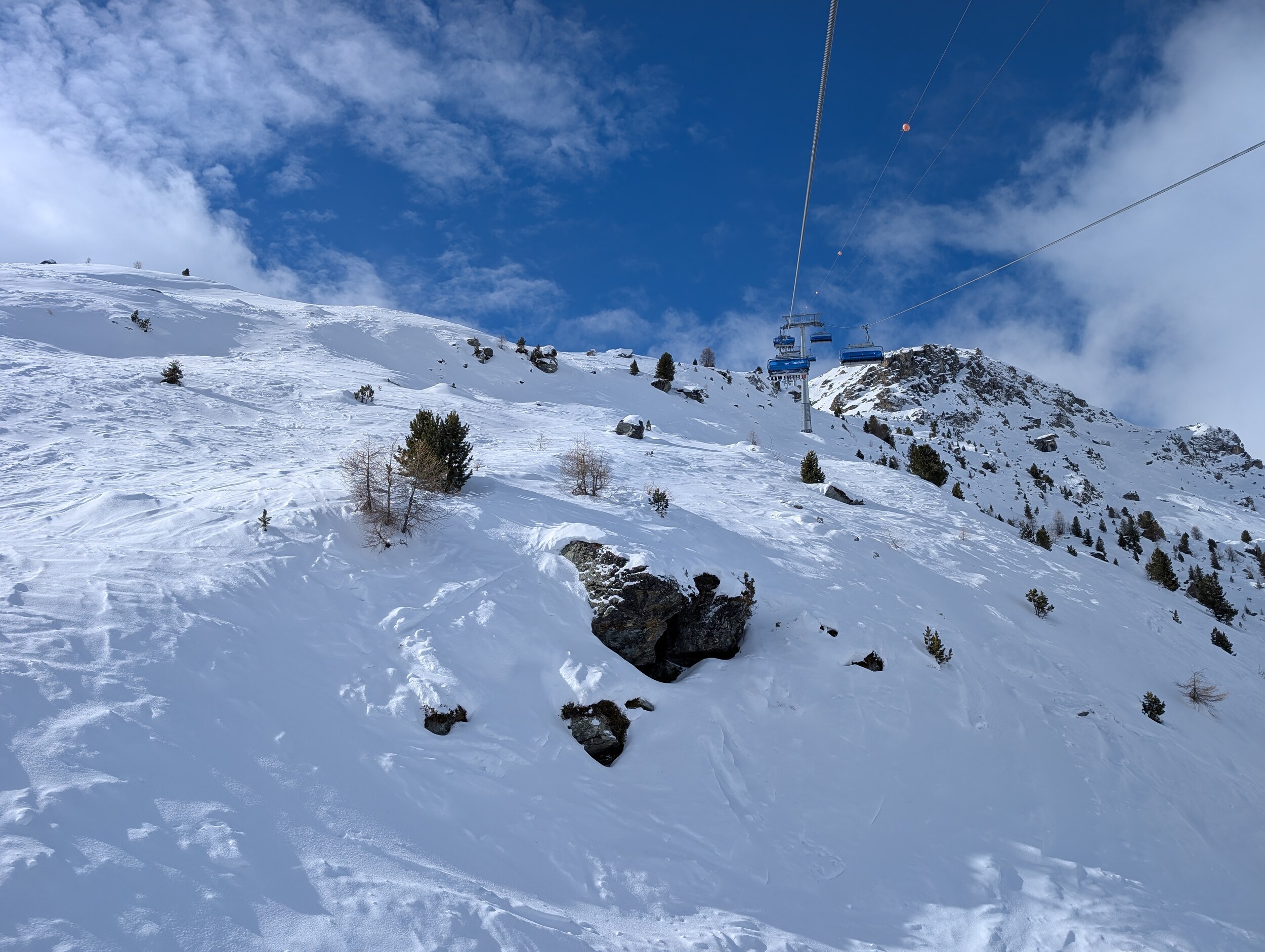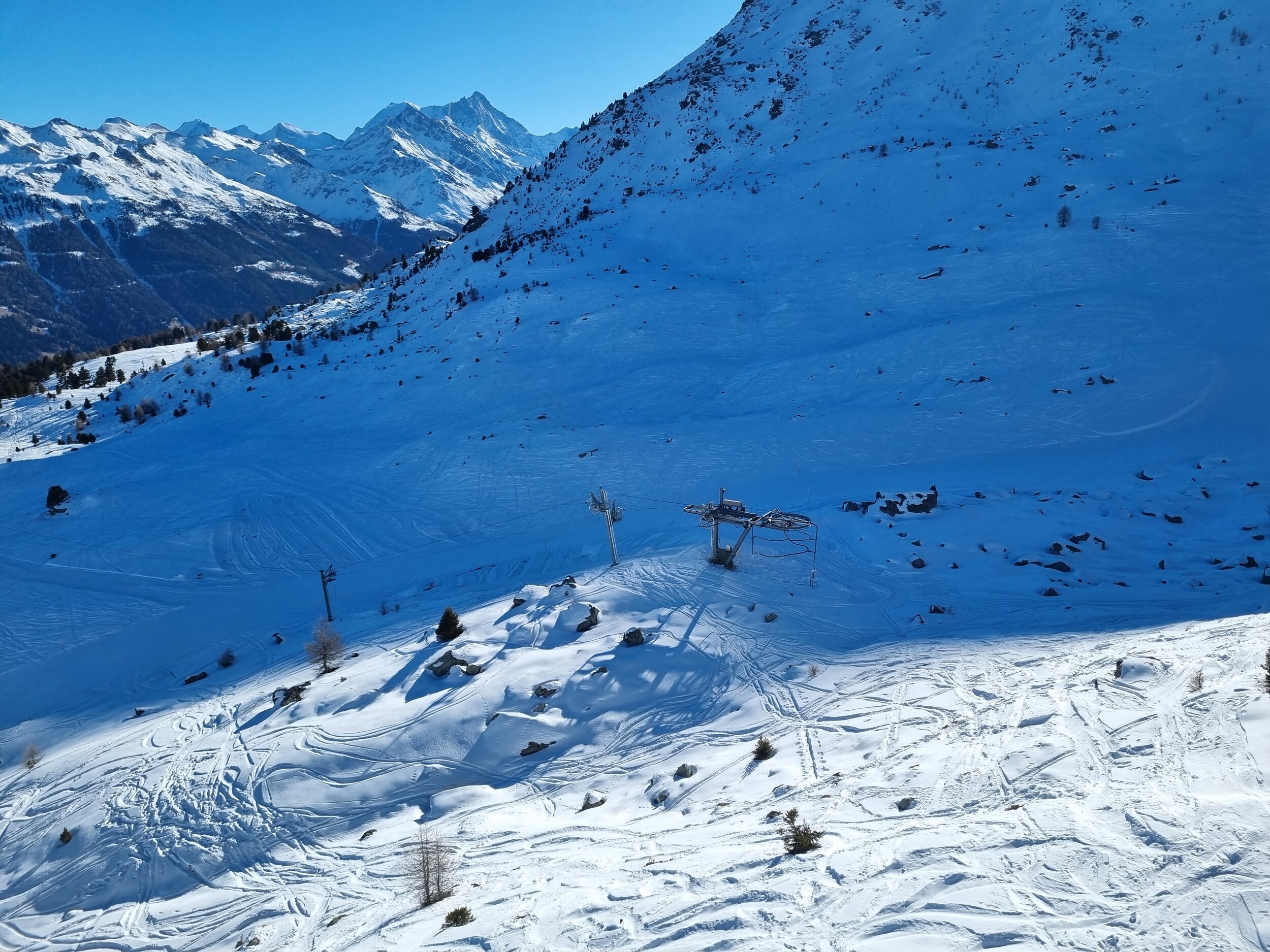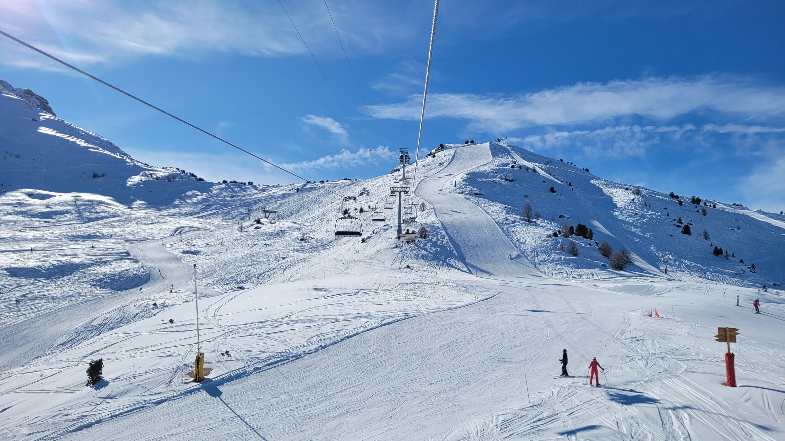 Allerdings wird es von dort mit Wiederholungsfahrten der schwarzen Tracuit zum Sessel etwas umständlich über die Ziehwege.
