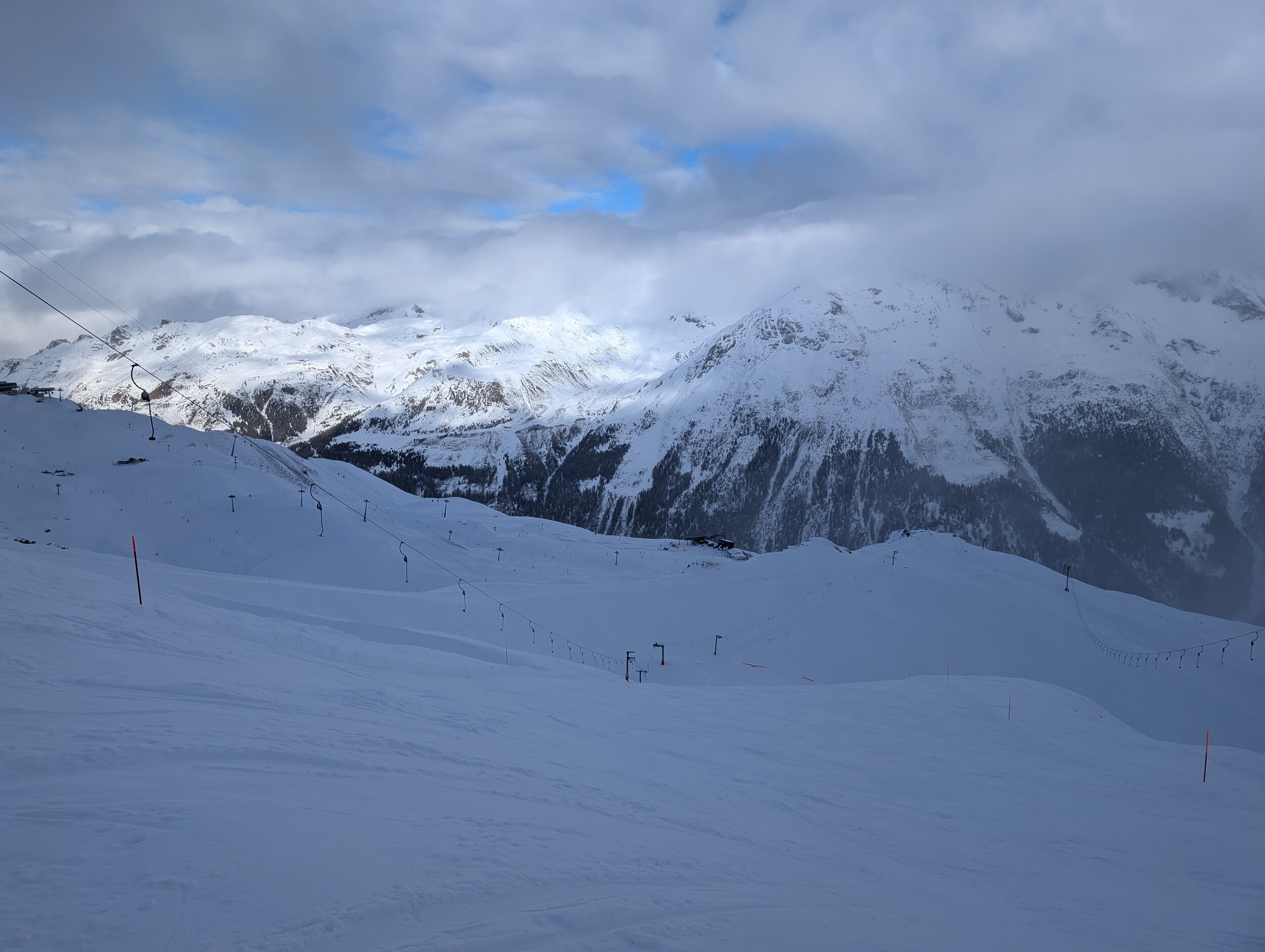 Bella Tolla und Illhorn noch geschlossen, am Illhorn wurde aber die Öffnung vorbereitet und am nächsten Tag auch geöffnet. Den Schnee hat das Gebiet gebraucht, freut mich sehr. Jetzt macht hoffentlich bald Bella Tolla auf!