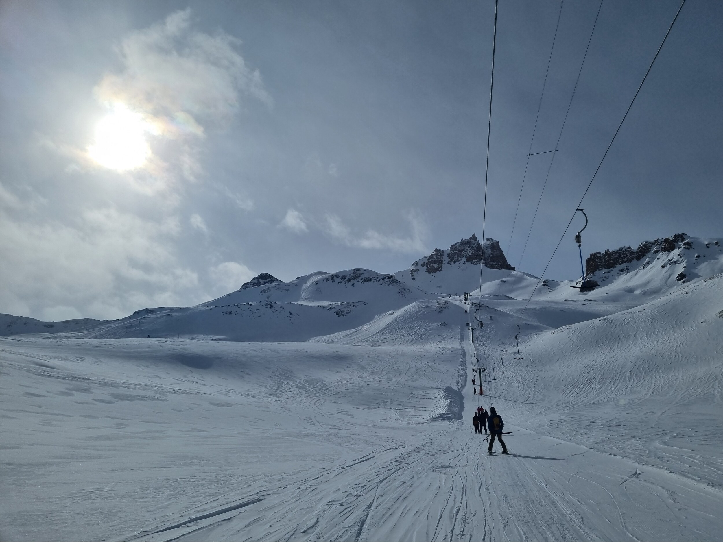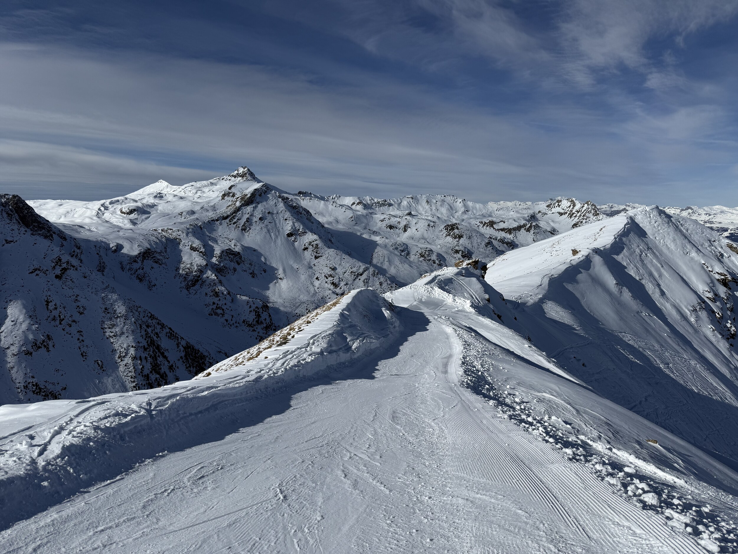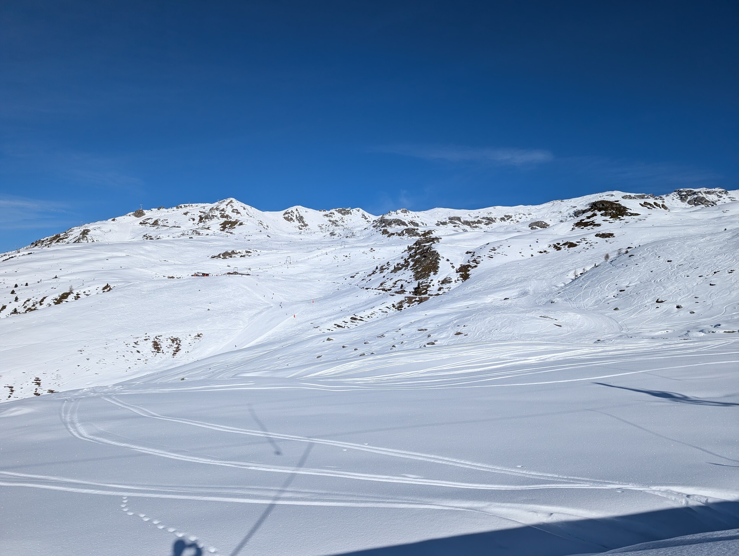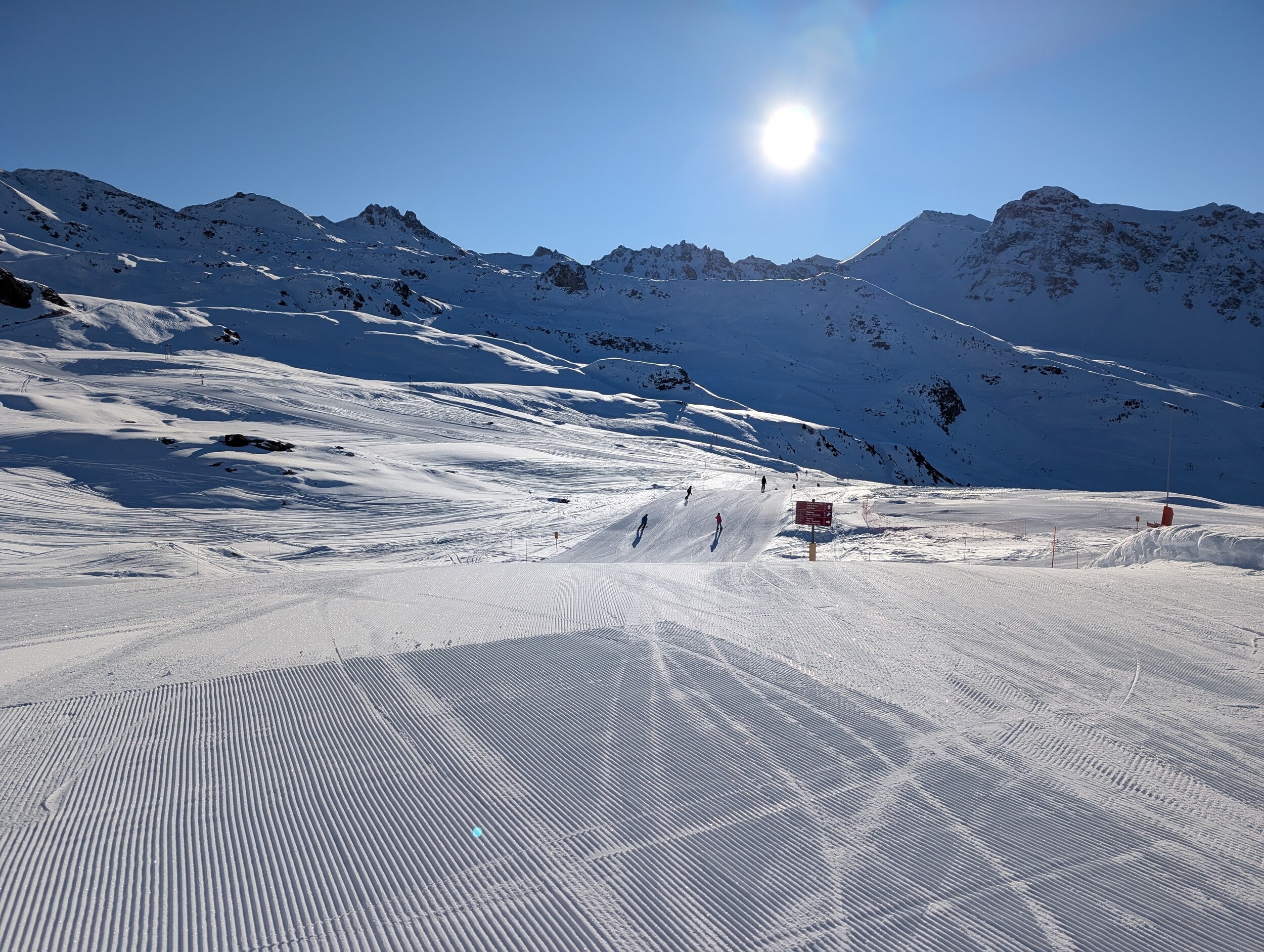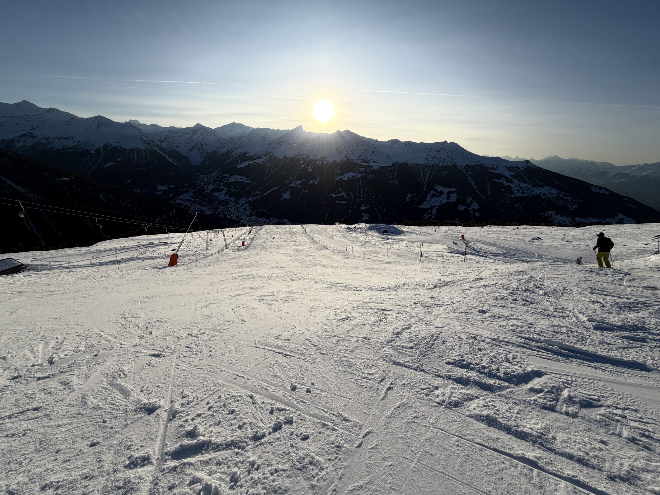 Da nichts los ist, sind die Pisten bisher kaum zerfahren, ich glaube bei mehr Andrang wäre das bald nicht mehr so cool. Um 1 liess ich es dann sein nach einem sehr guten Vormittag insbesondere an Tracuit und der Talabfahrt.
