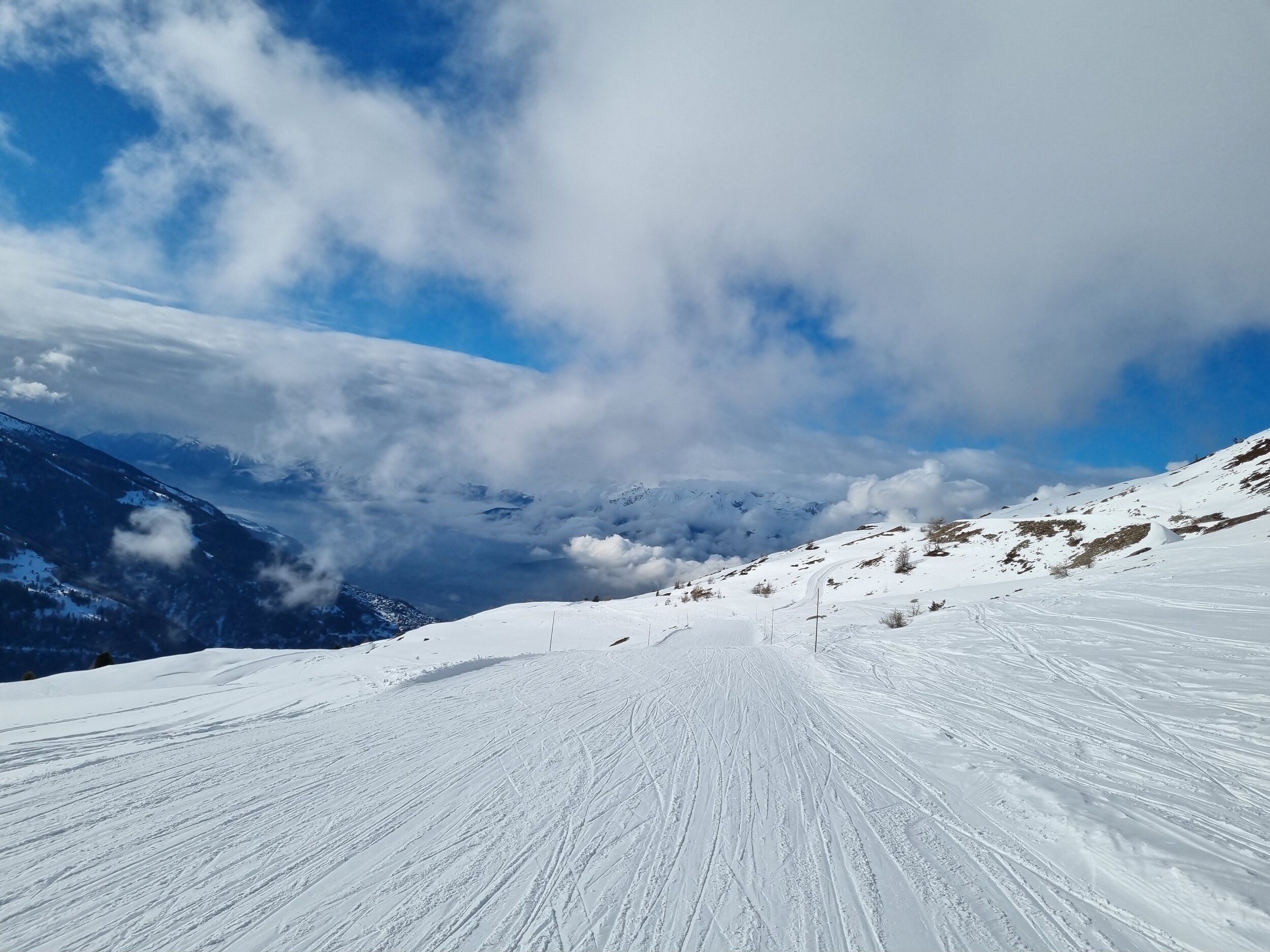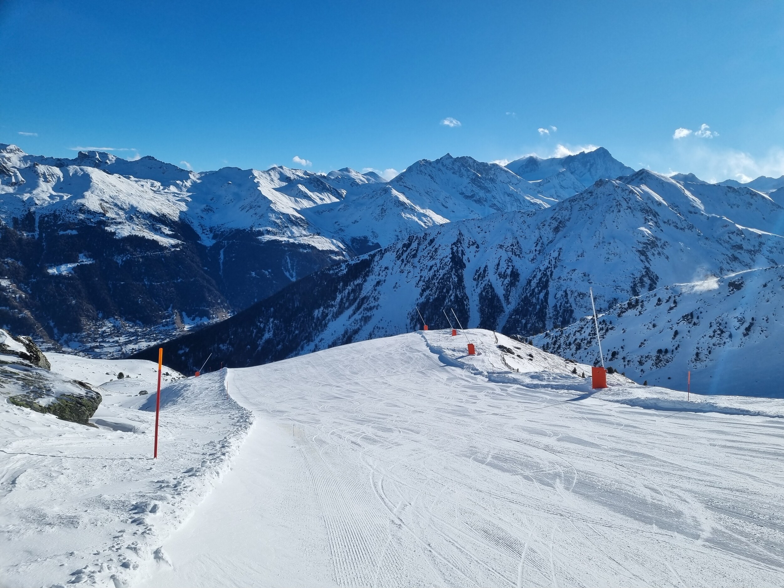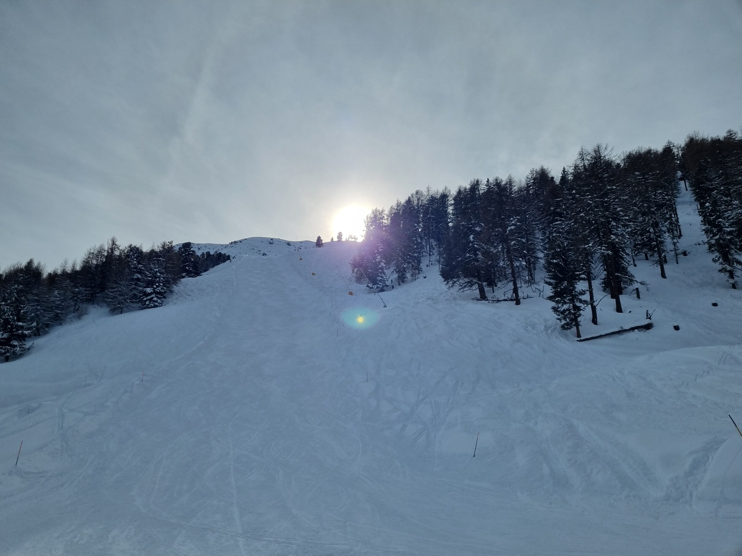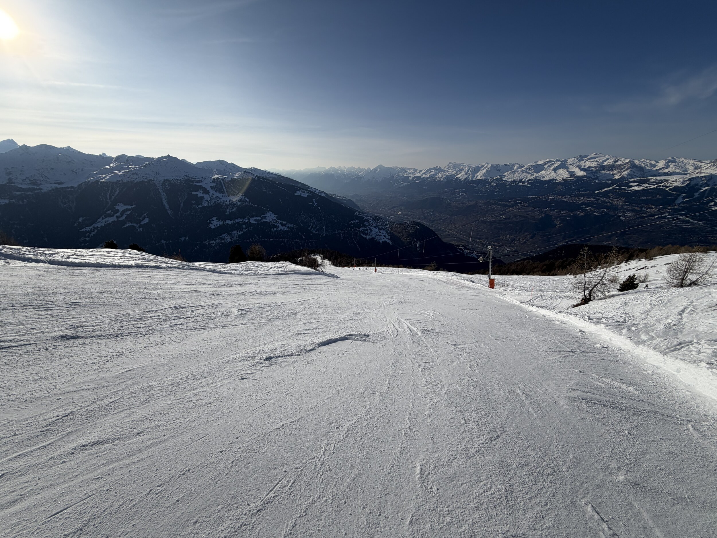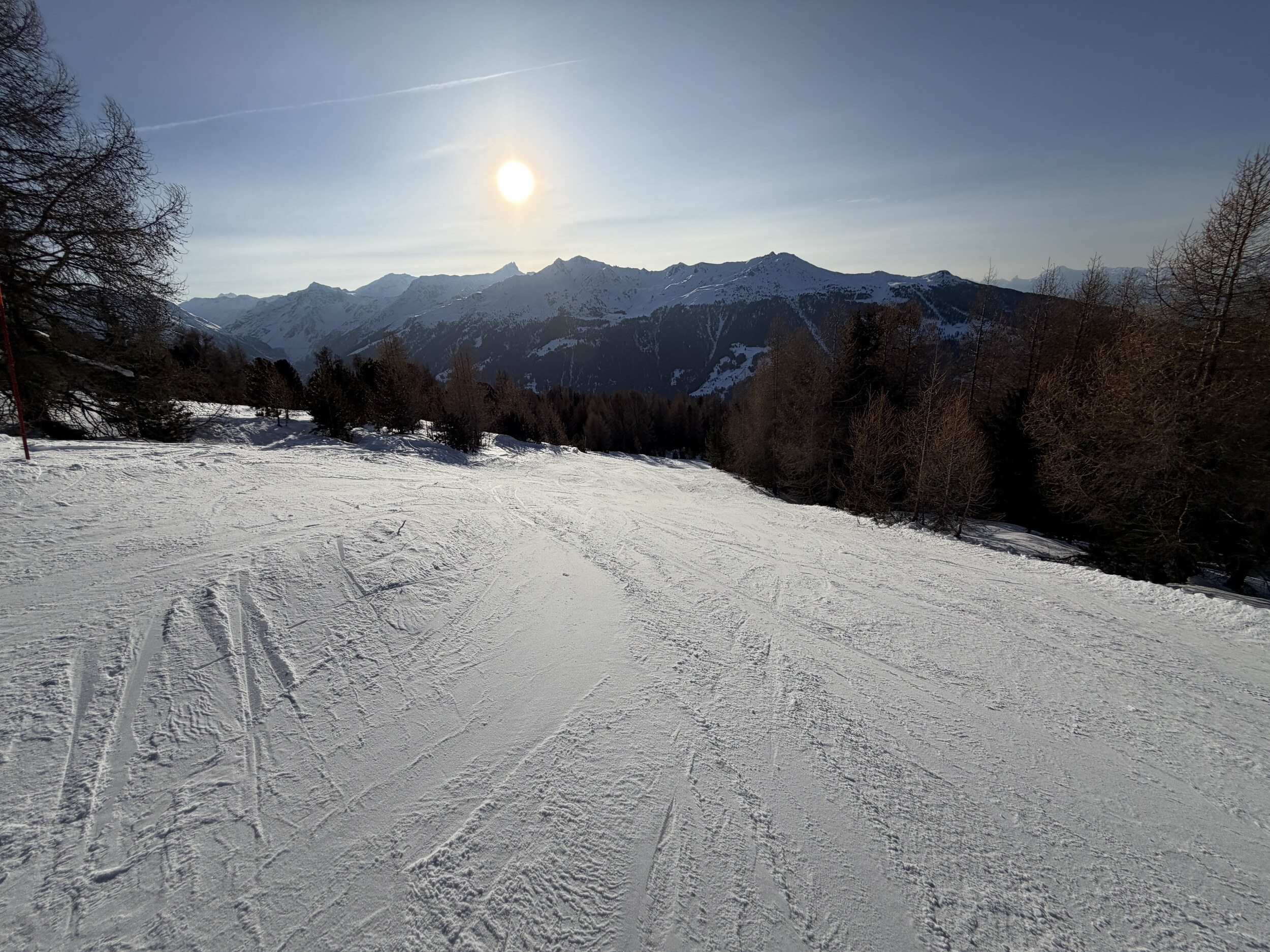 Da es alles andere als überfüllt war, waren die Pisten auch am Nachmittag noch in einem guten Zustand, nur der unterste Abschnitt der Talabfahrt nach St. Luc war total vereist.