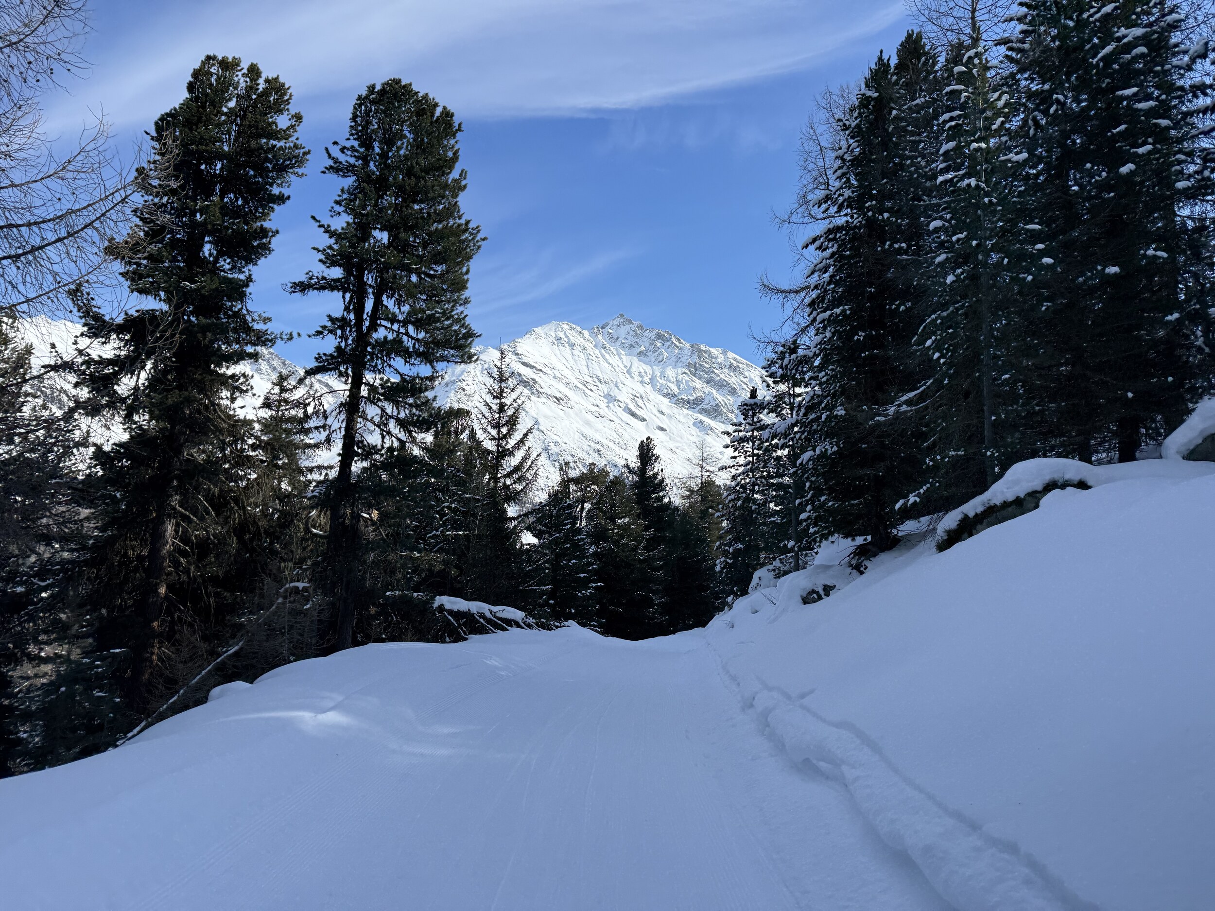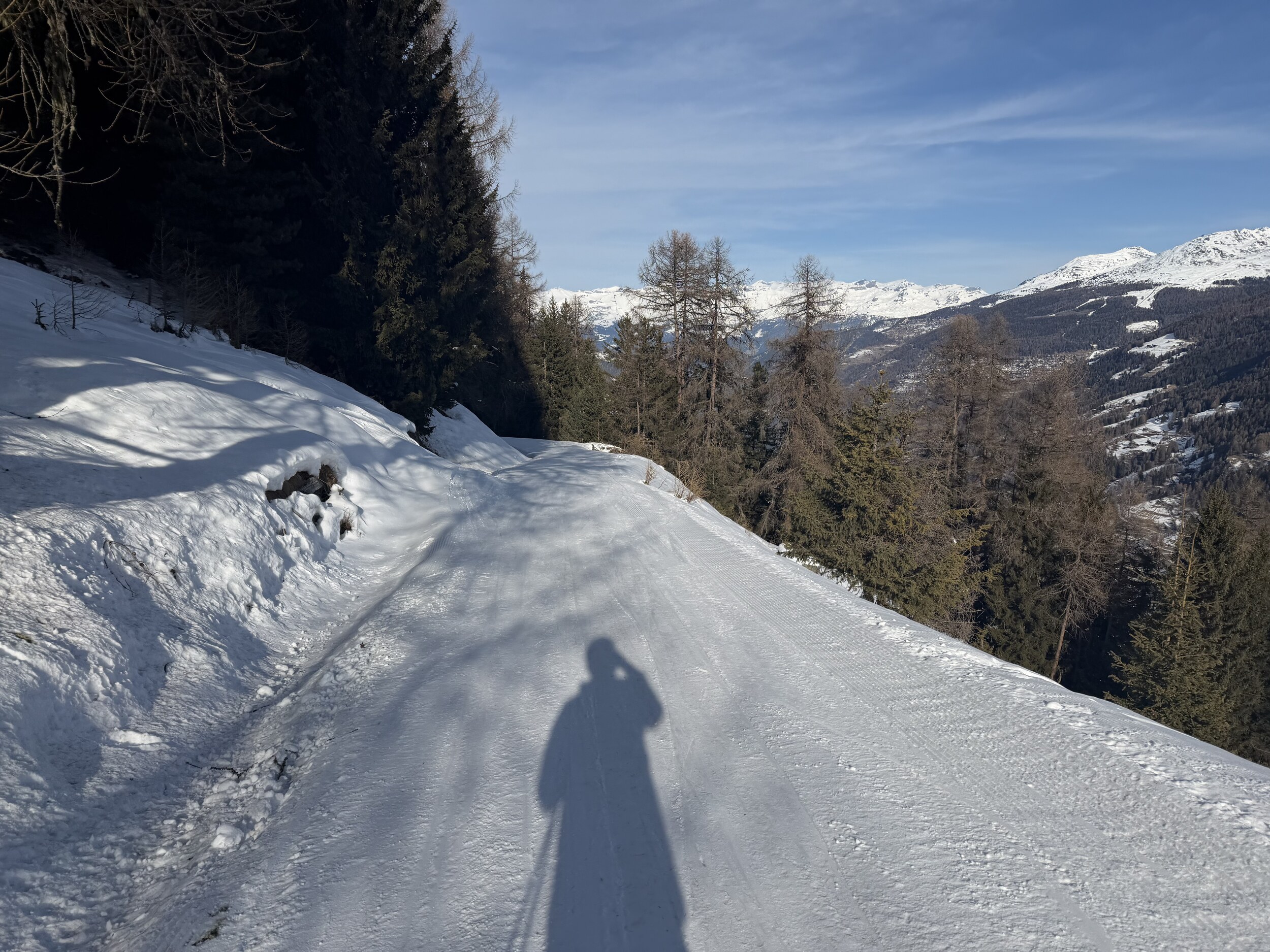 Mich Ach und Krach und sehr vorsichtig hab ich's aber geschaffft: Der Ziehweg war dann easy: Der Fussweg zurück zur Talstation aber dann doch ziemlich weit. Bleibt mir ein bisschen weniger Zeit für Grimentz: Auch hier gute Bedingungen.