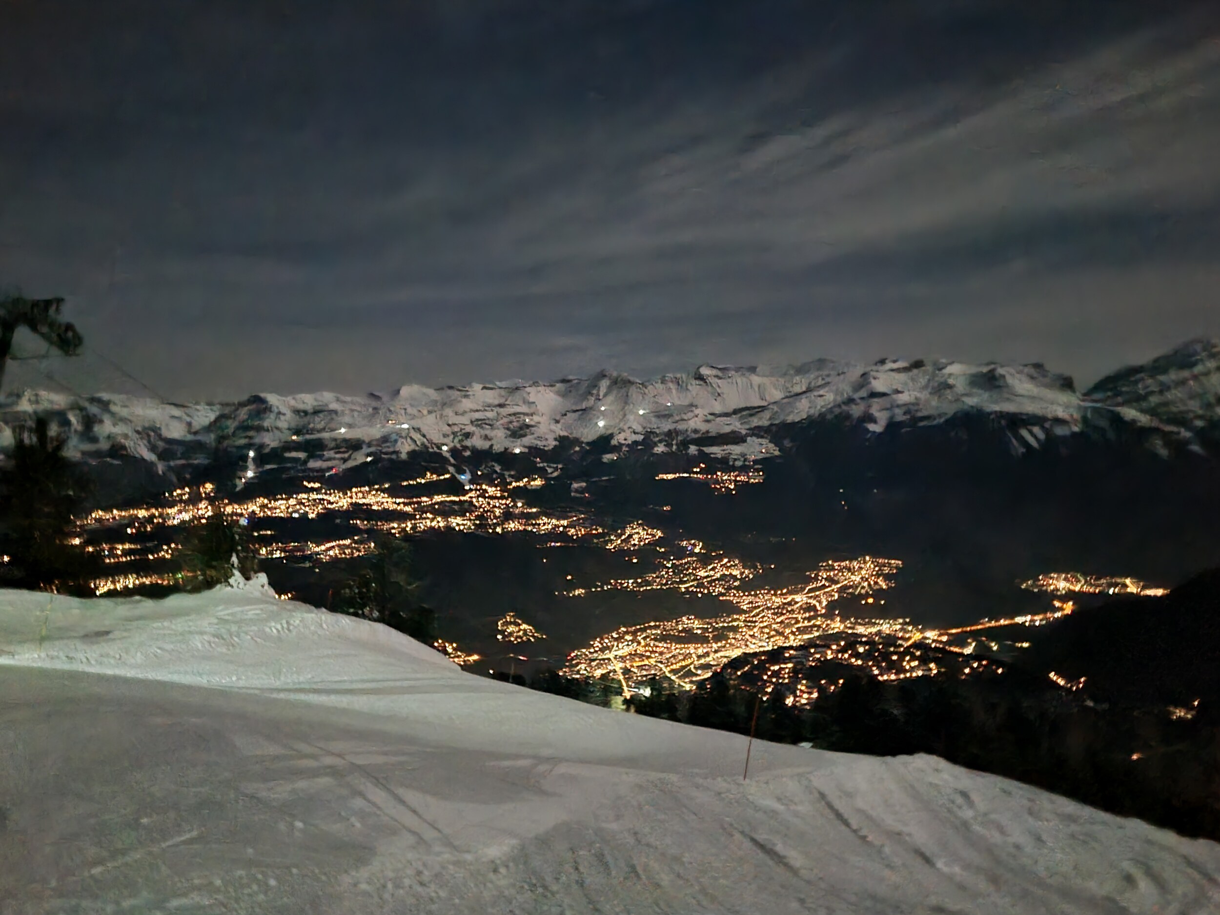 Gestern abend war wieder das einmal pro Monat zu Vollmond stattfindende Nachtskiangebot in Vercorin.
