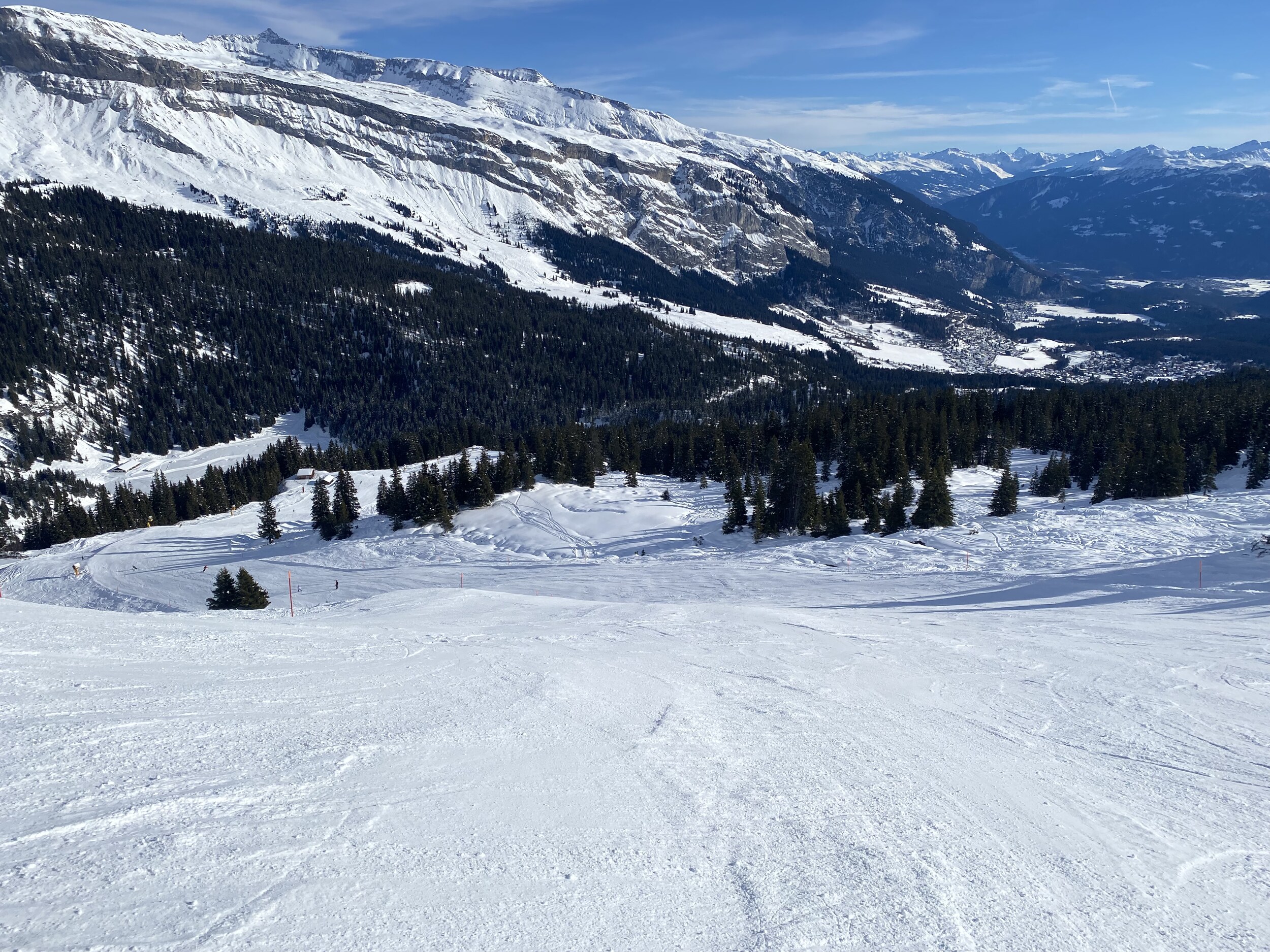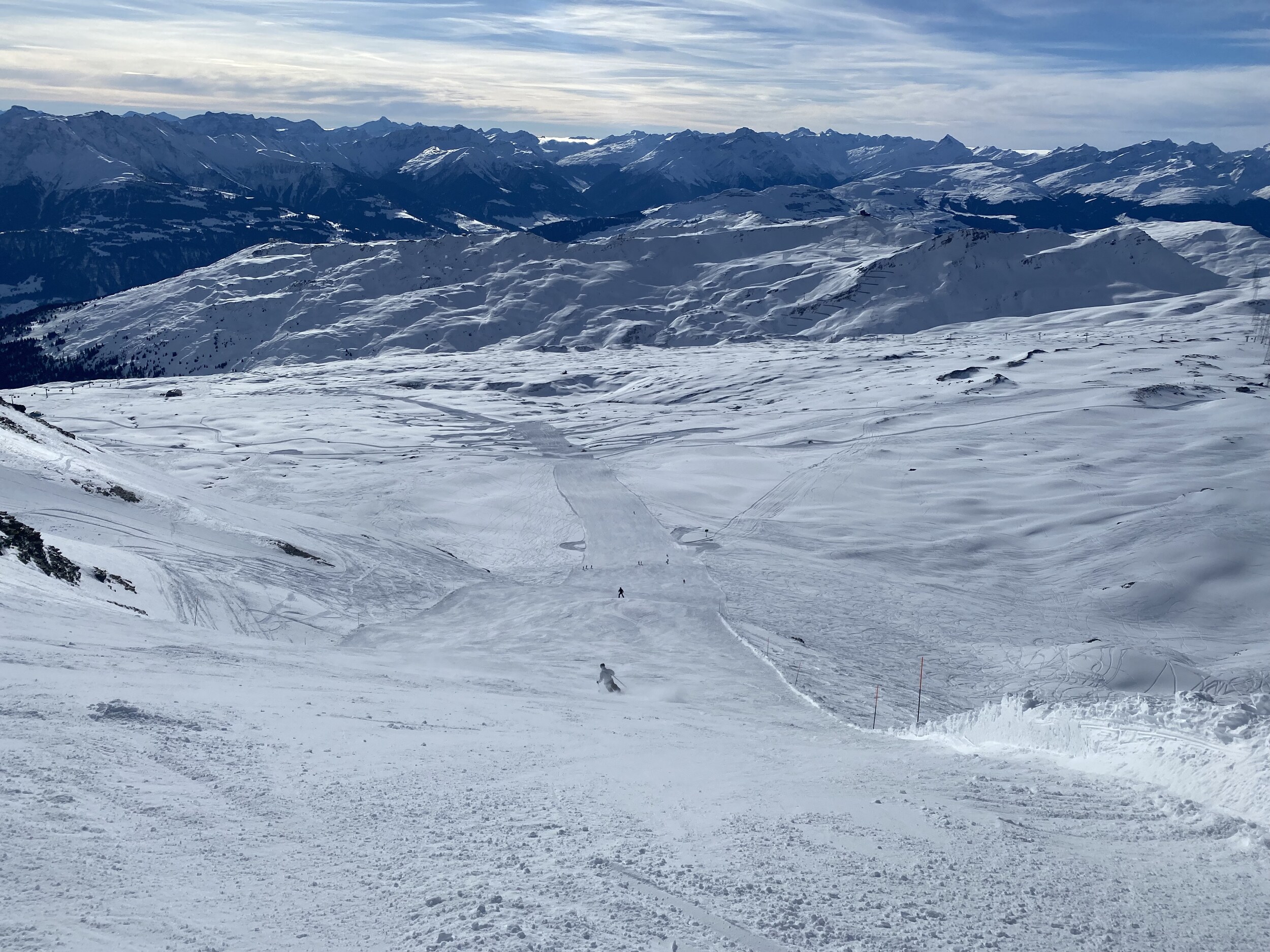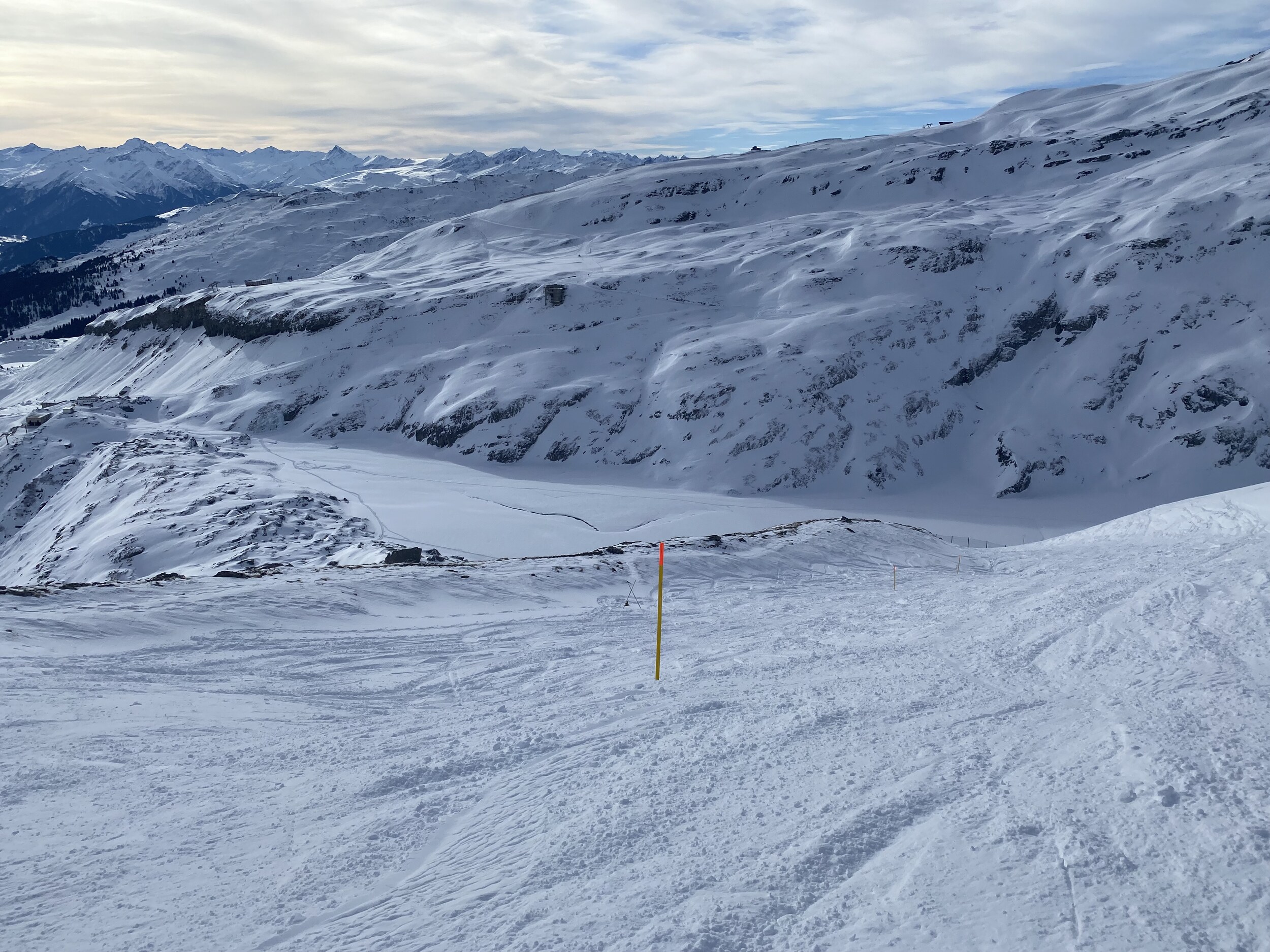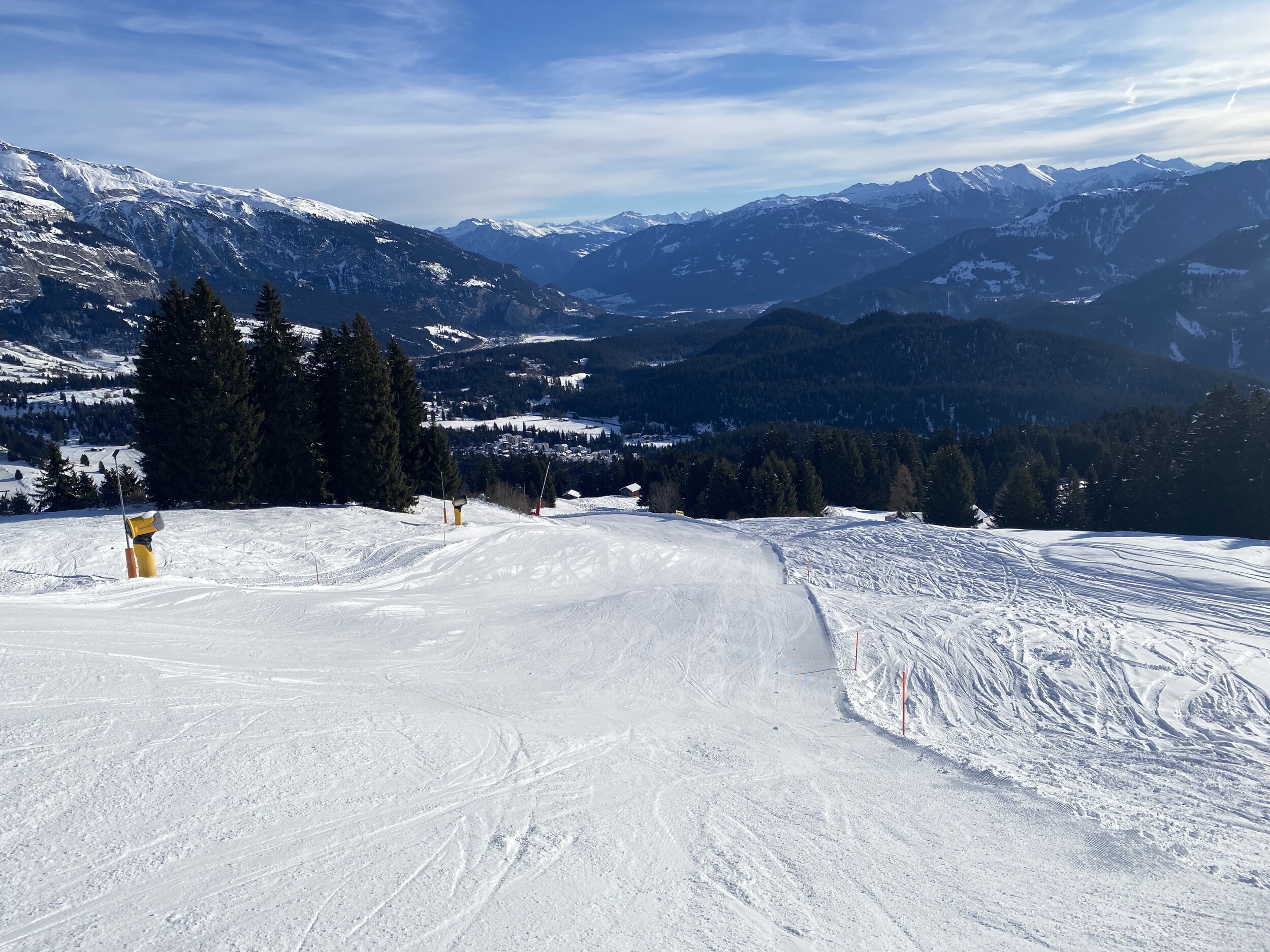 Da die Pulver nach wie vor geschlossen ist und die 43 für mich unattraktiv ist bin ich zurück zum Crap Sogn Gion und als nächstes die 64 über Curnius nach Larnags gefahren. Beides ist früh am Morgen super zu fahren und sehr leer. Mir hat das so gut gefallen das ich beide 64iger Pisten auch gleich wiederholt habe - kein Problem da es in Curnius am 4er Sessel keine Wartezeiten gab.