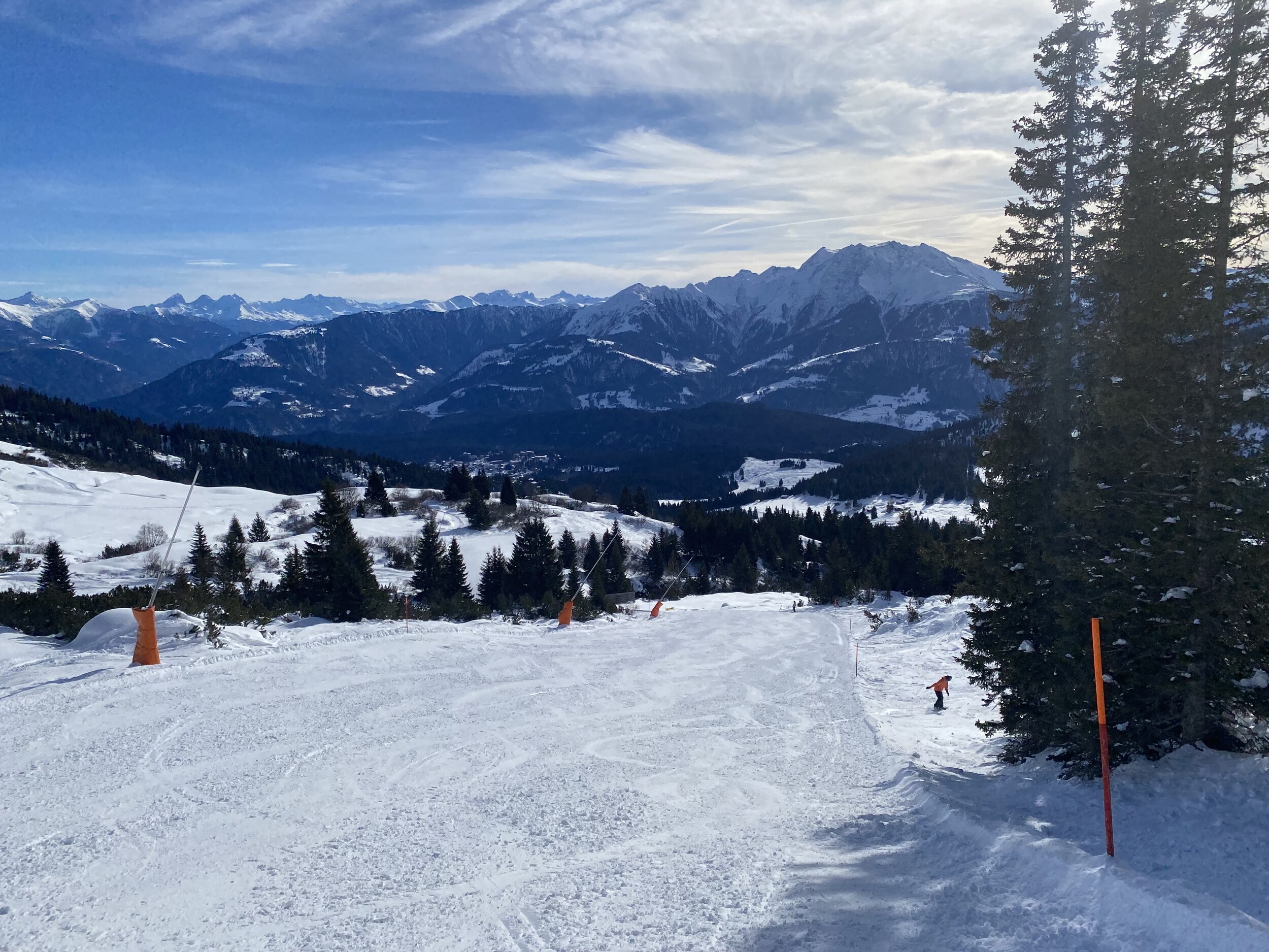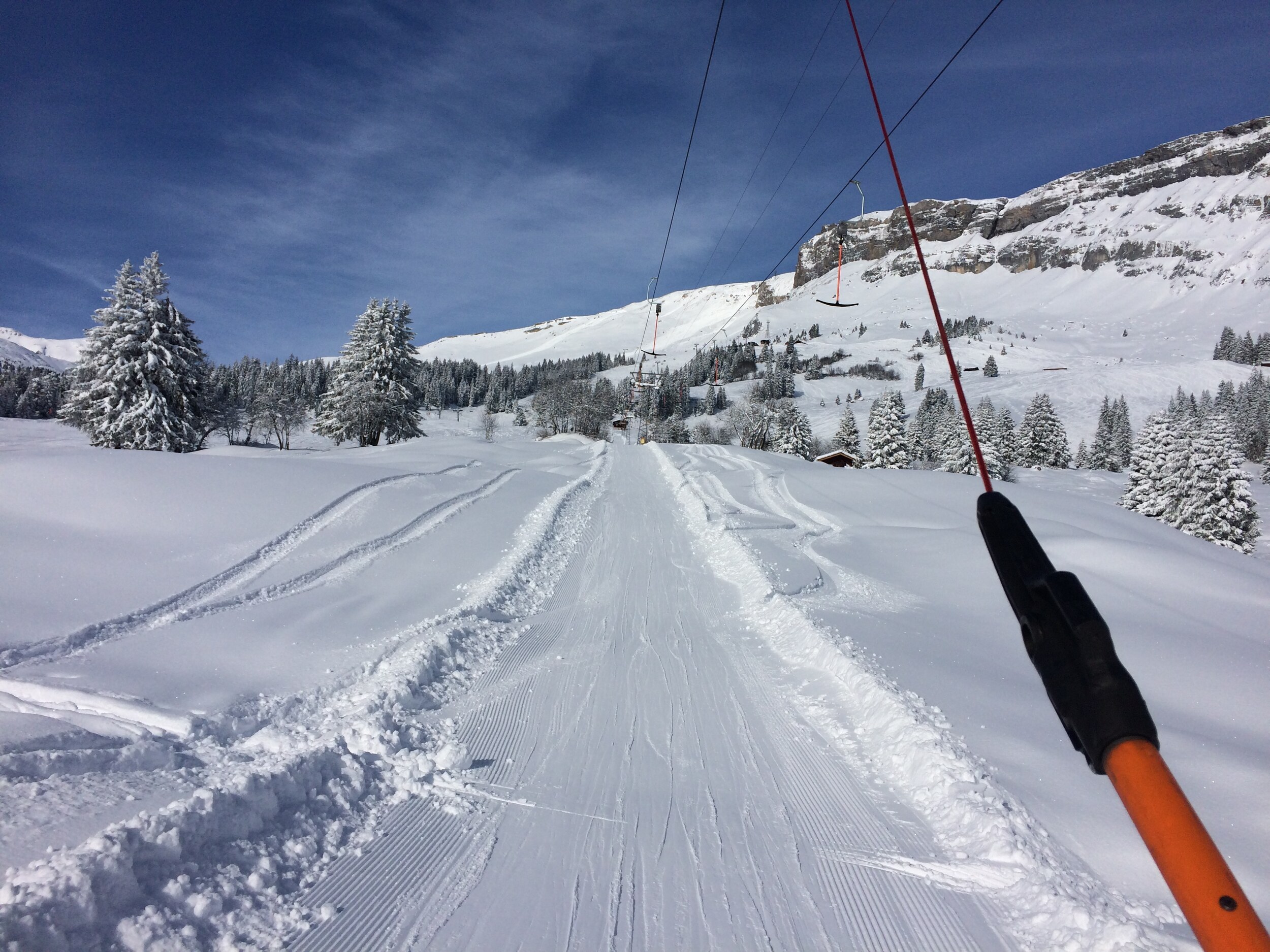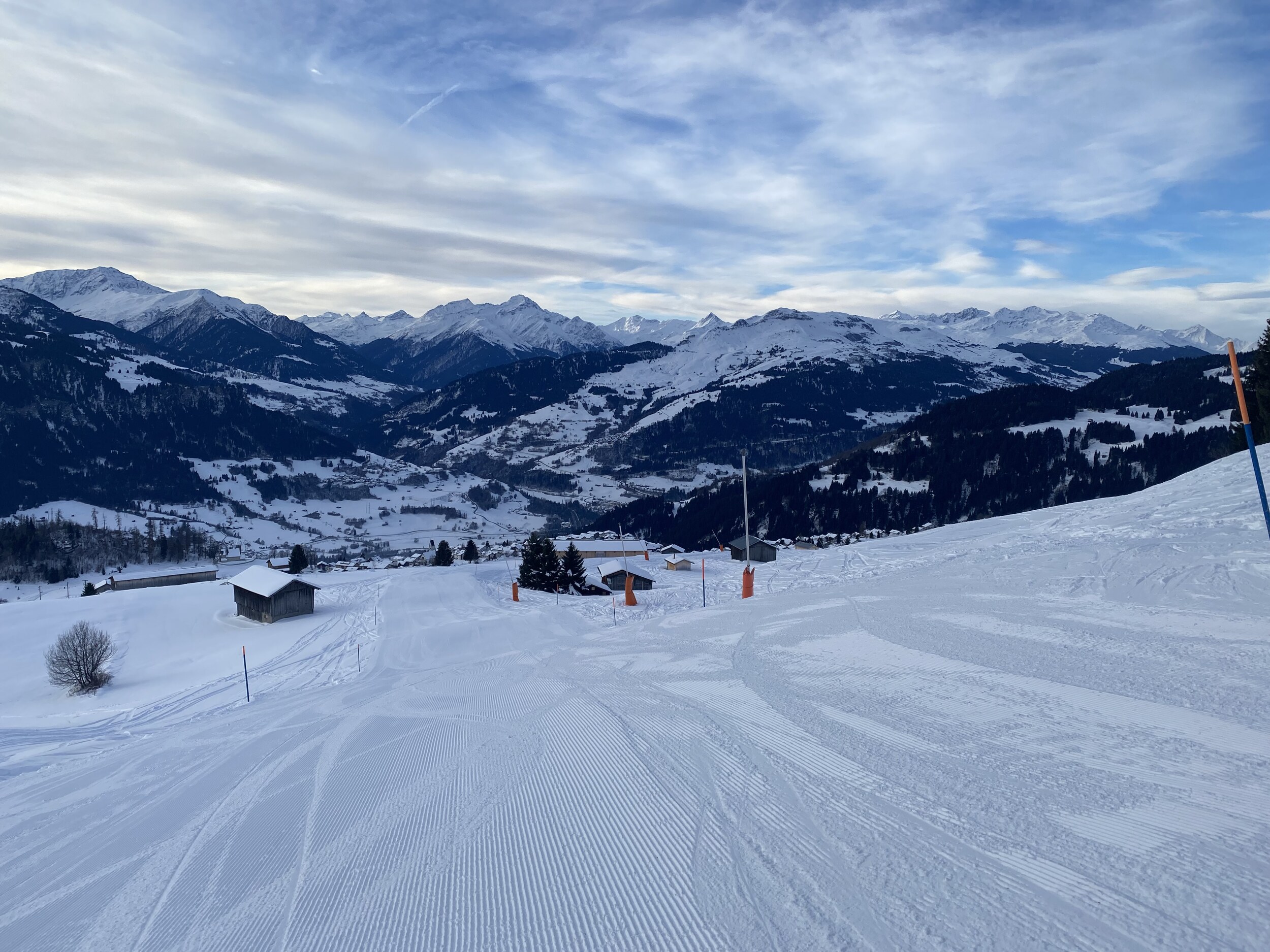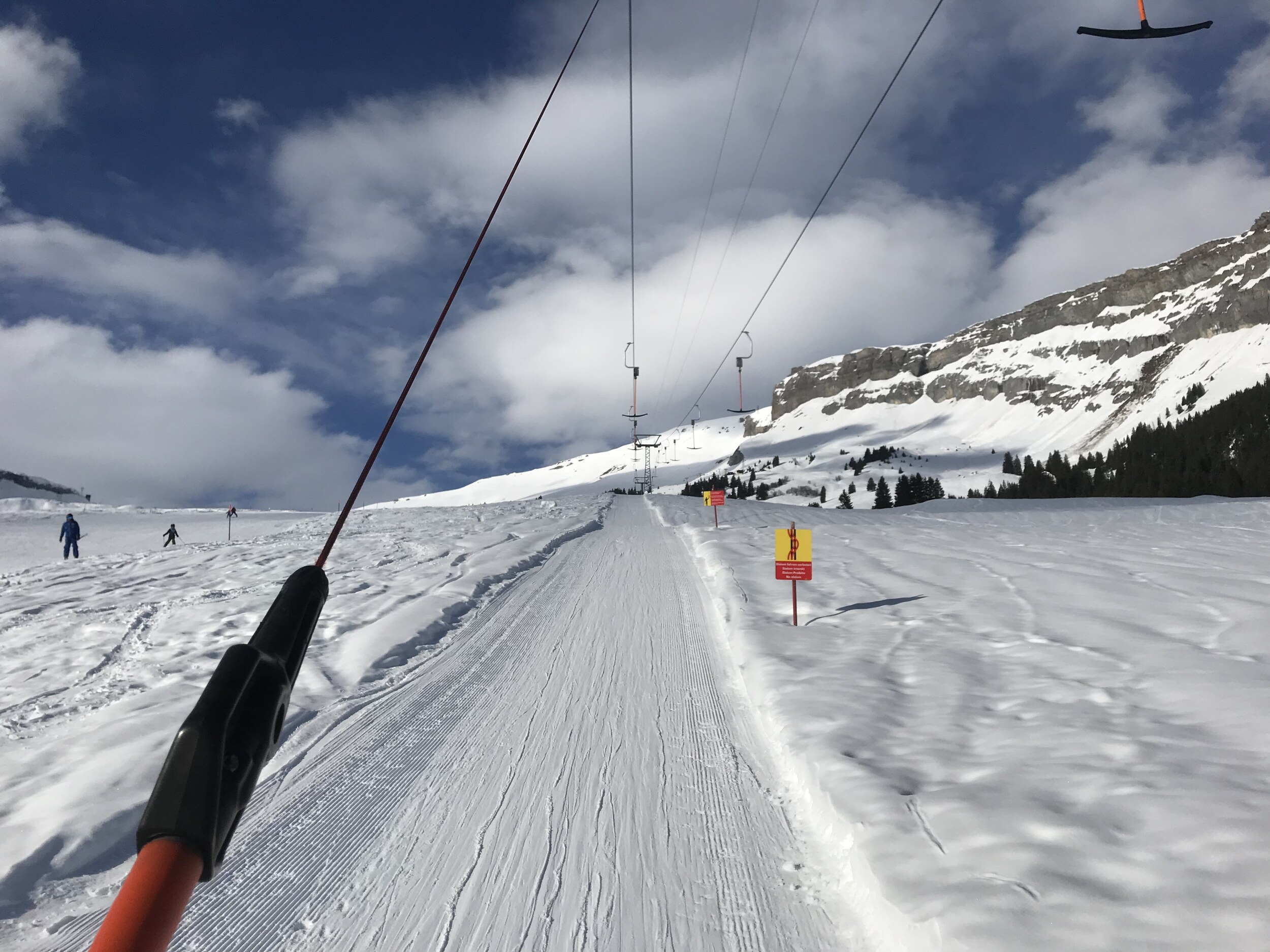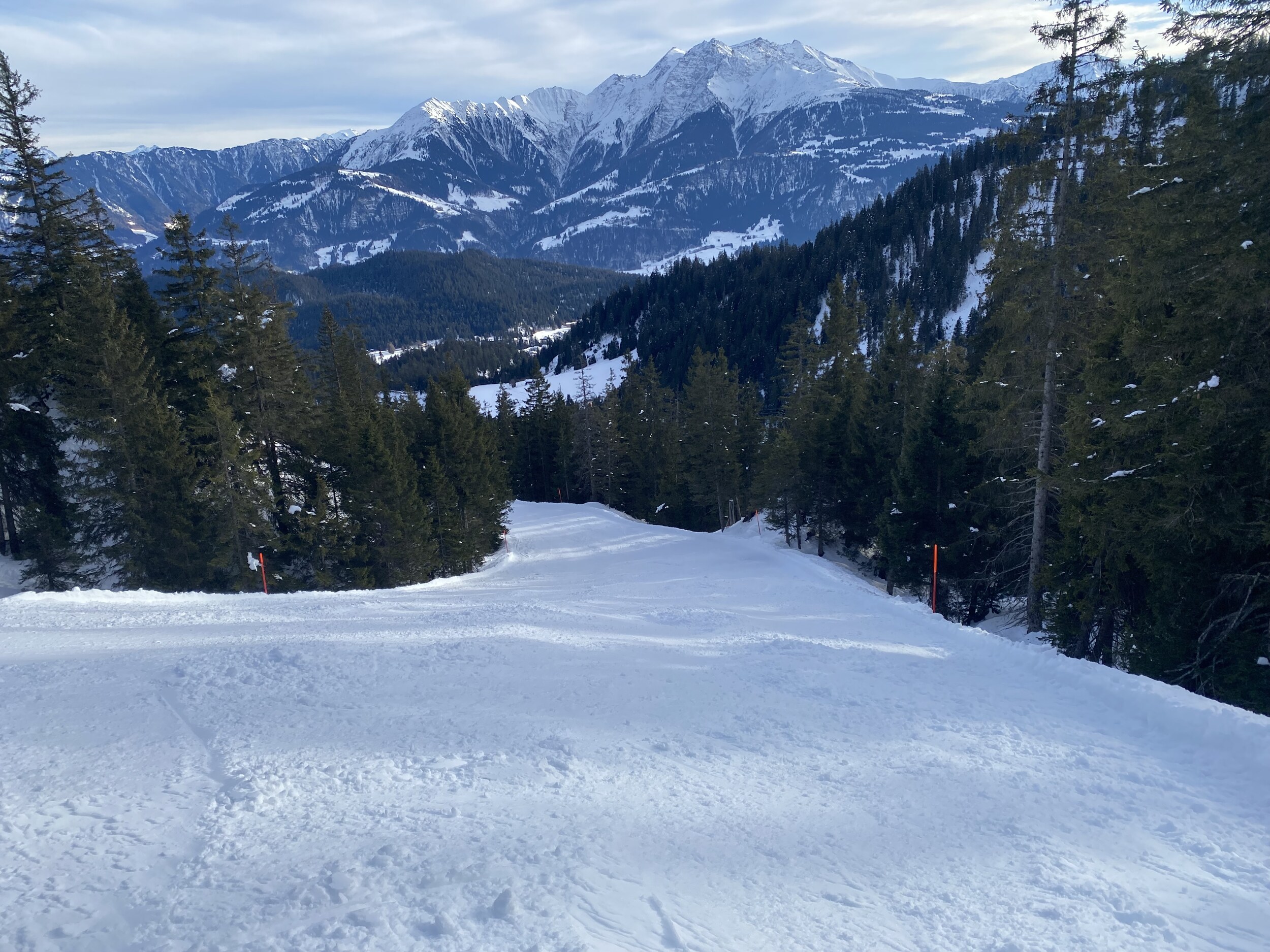 Da die Pulver nach wie vor geschlossen ist und die 43 für mich unattraktiv ist bin ich zurück zum Crap Sogn Gion und als nächstes die 64 über Curnius nach Larnags gefahren. Beides ist früh am Morgen super zu fahren und sehr leer. Mir hat das so gut gefallen das ich beide 64iger Pisten auch gleich wiederholt habe - kein Problem da es in Curnius am 4er Sessel keine Wartezeiten gab.