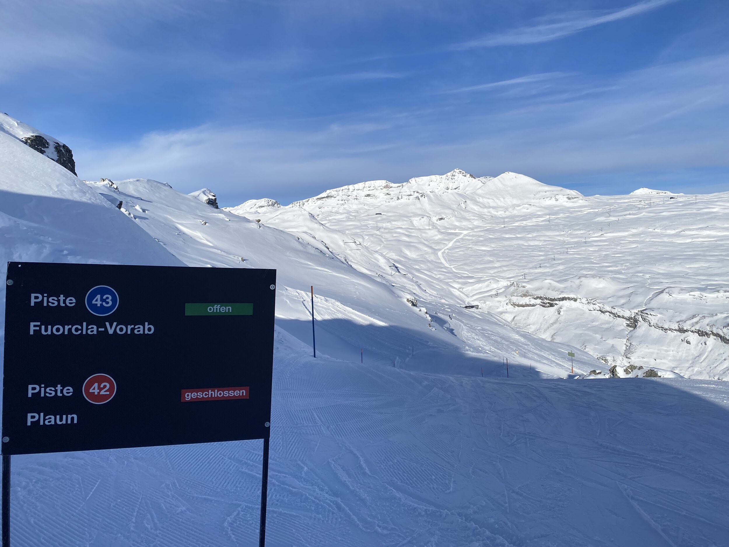 Seit heute ist dann auch Crest la siala-Fuorcla offen und Masegn-Fuorcla folgt wahrscheinlich noch diese Woche. Als nächstes dann Vorab-Fuorcla dann Treis Palas und dann gegen Anfang Februar Lavadinas.