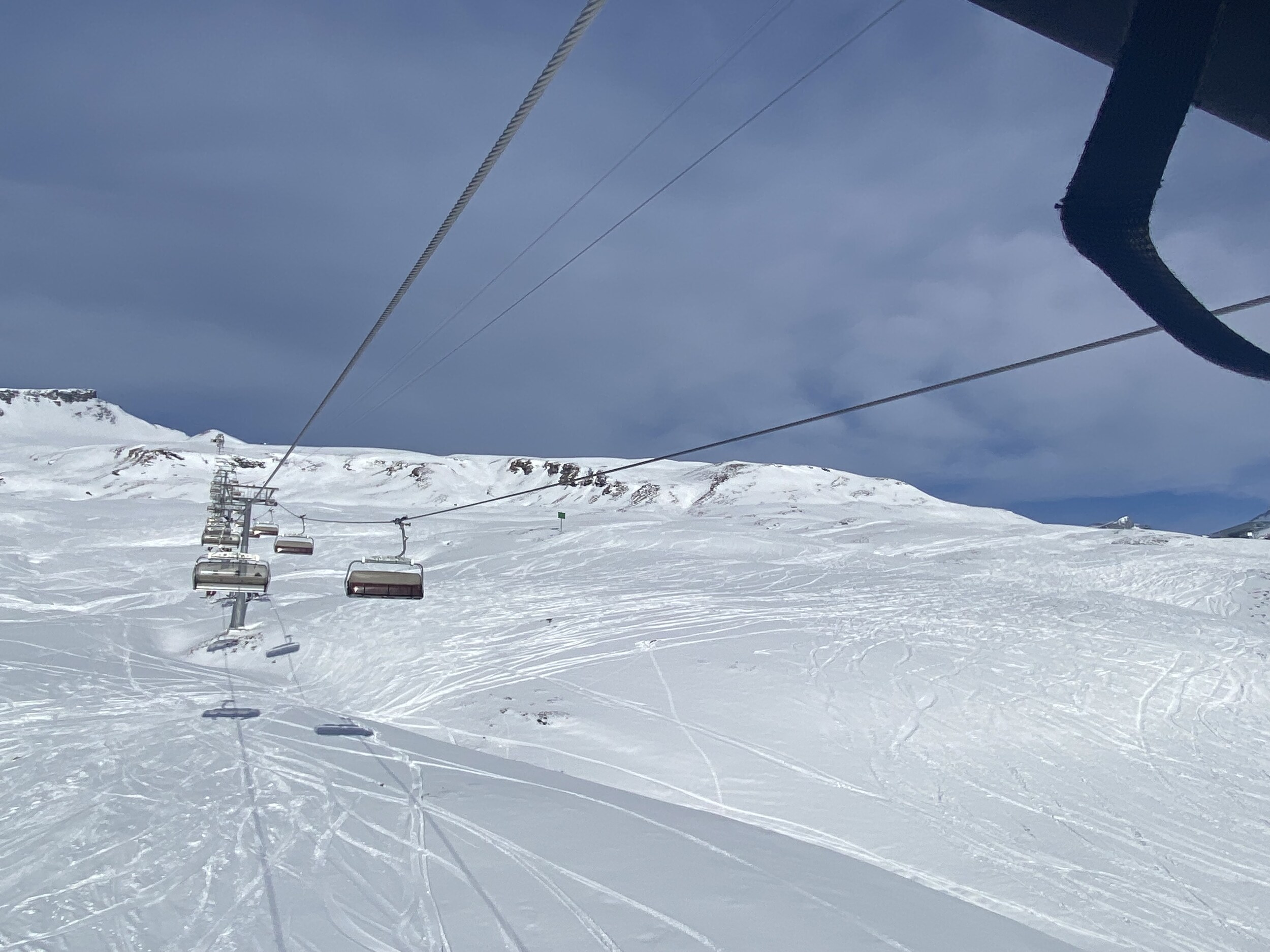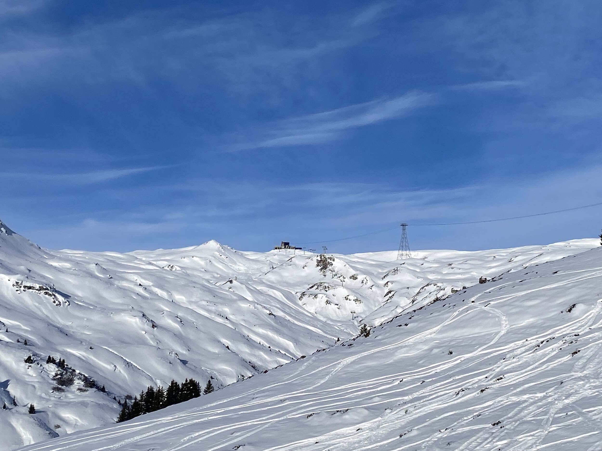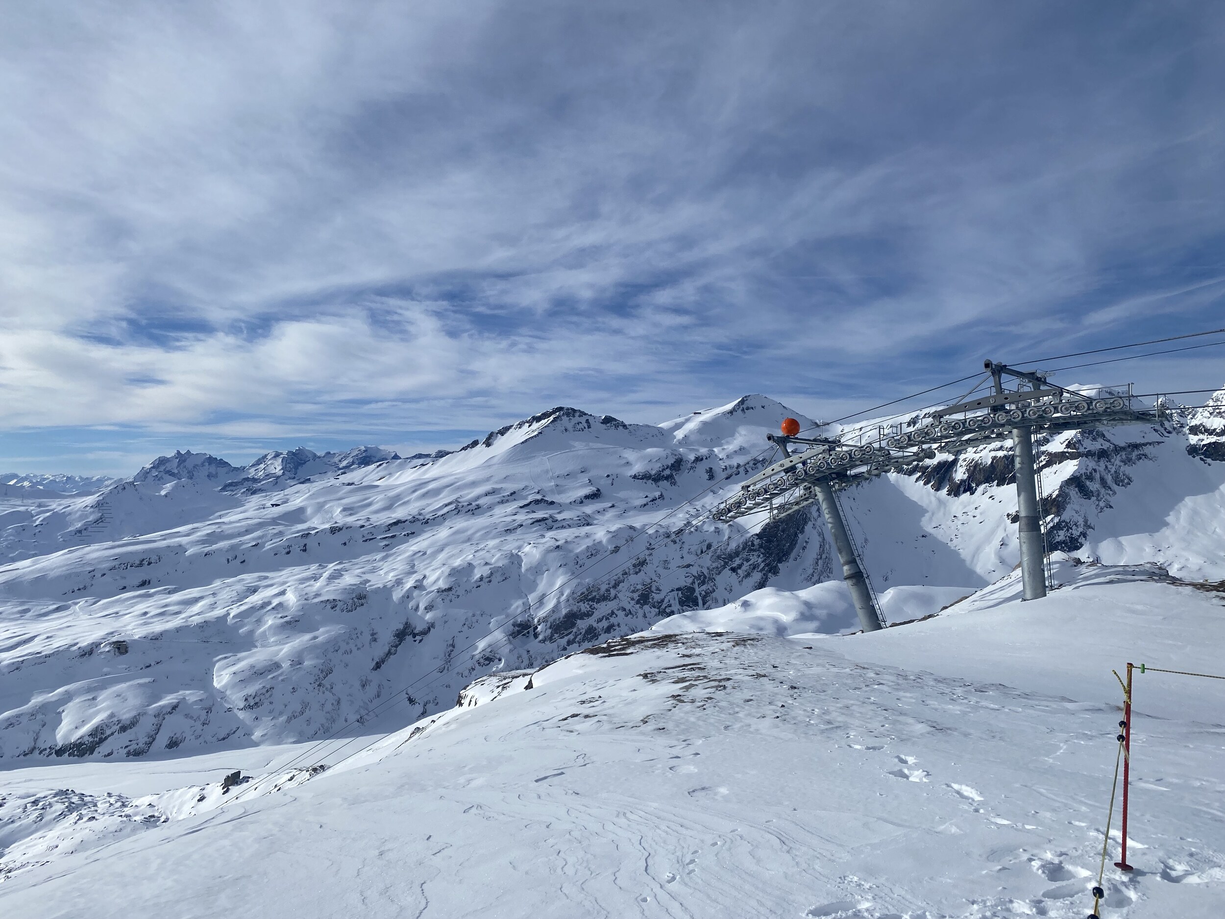 Von der Siala Gondel aus konnte ich dann in der Ferne erkennen das der Porsche Sessel in Betreib ist. Es gibt aber noch keine präparierten Pisten von dort und ich sah auch noch keine Skifahrer.