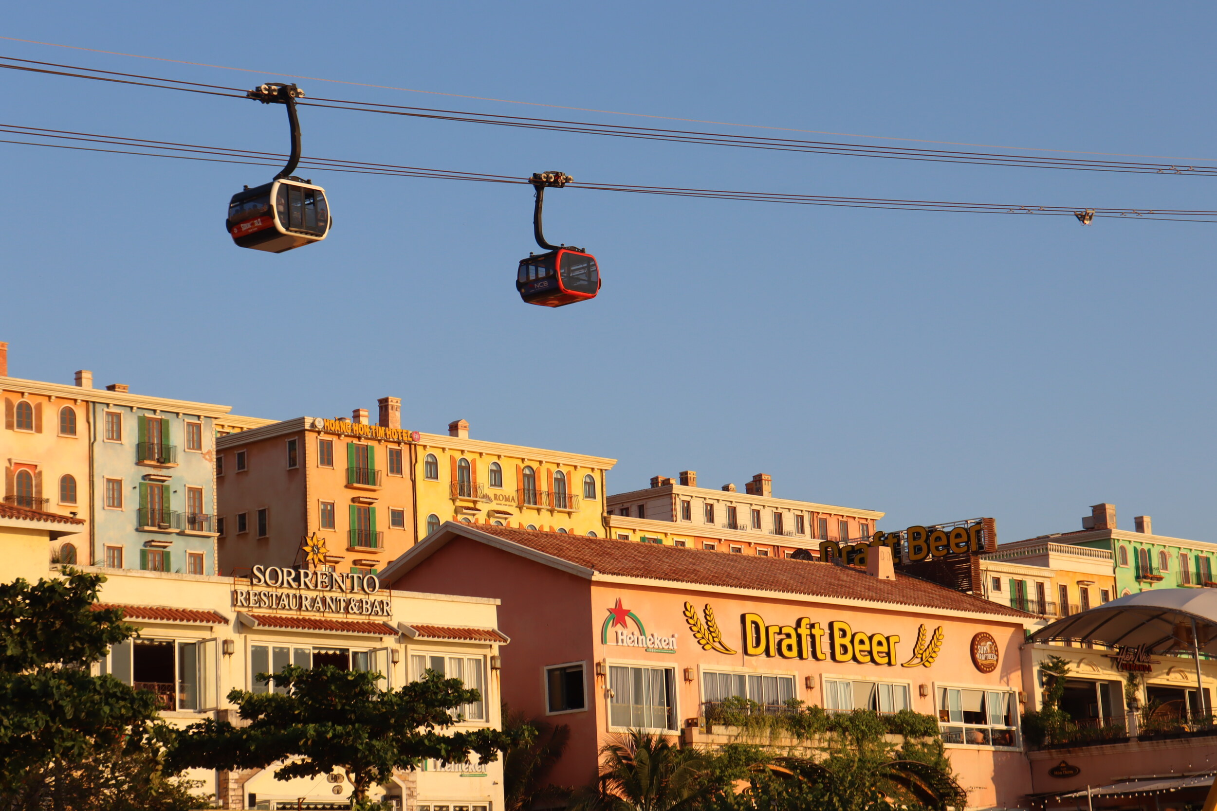 Wie bekannt, ist die 3S-Seilbahn Hòn Thơm mit 7.899,9 Metern die längste Seilbahn der Welt in einer Sektion und bereits seit 8 Jahren in Betrieb. Inzwischen wurde die Anzahl der Kabinen von 35 auf 68 erhöht, wodurch im Endausbau eine Förderleistung von 3.500 Personen pro Stunde erreicht wurde. Auch dies wird jedoch aufgrund der massiven Bautätigkeiten auf der Insel bald nicht mehr ausreichen. Daher plant der Betreiber Sun Group, Anfang 2028 eine parallele 3S-Bahn zu eröffnen – mit 116 Kabinen und einer Förderleistung von 7.000 Pers/h (wieder mal ein neuer Weltrekord …). Lieferant wird aber diesmal Poma sein, obwohl bisher alle Seilbahnen der Sun Group von Doppelmayr gebaut wurden.