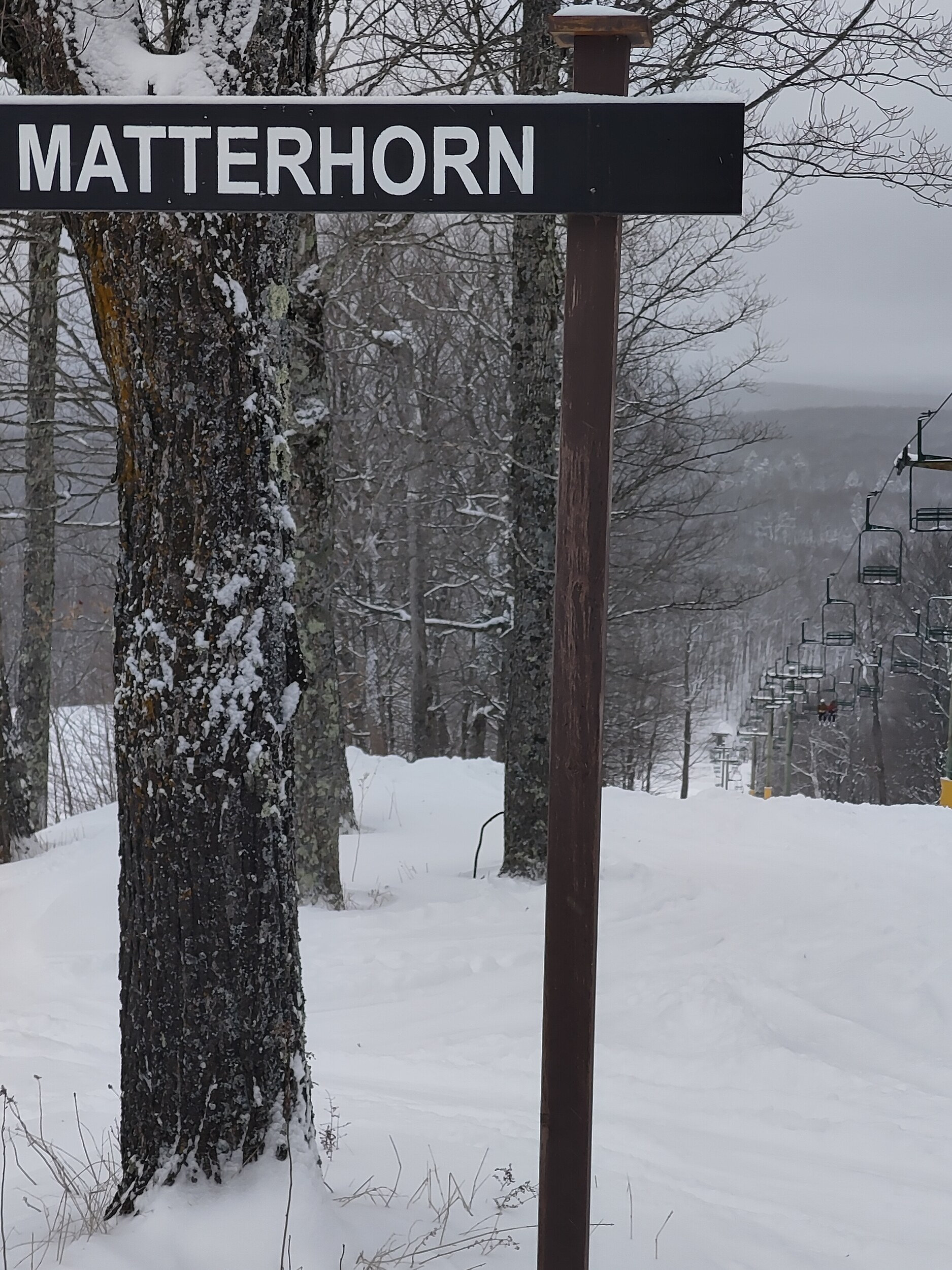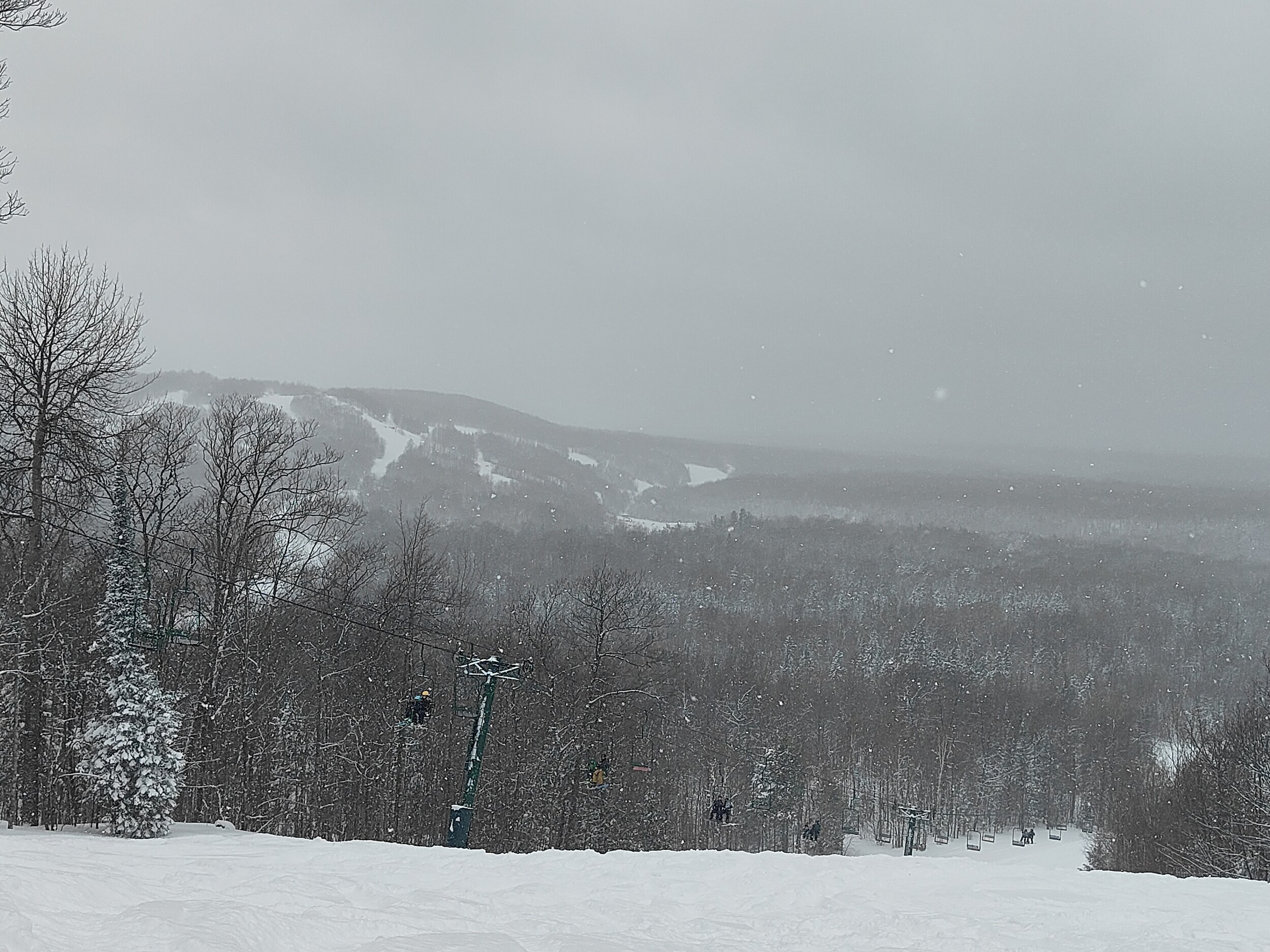 Das Skigebiet kann dann auch eine ganze Reihe mehr als alle anderen, die ich seit Milwaukee gefahren bin. Es besteht aus zwei Gipfeln und zwei Talenden, hat 10 ernstzunehmende Sessellifte und - JA - vier davon sind Expressslifte! An den Liften Yodeler, Chute, Eagle und Snowpine hat es richtige Abfahrten mit Gefälle und einiges an Länge, auch wenn man die Hänge locker ohne Pause befahren kann (der Spruce Lake war leider geschlossen und kann nicht beurteilt werden). So cruise ich hin und her durch das Gebiet, bis ich alle Lifte gefahren bin, und freue mich auf die kommenden Skigebiete. Hoffe, Holiday Valley war der Anfang vom Aufstieg.