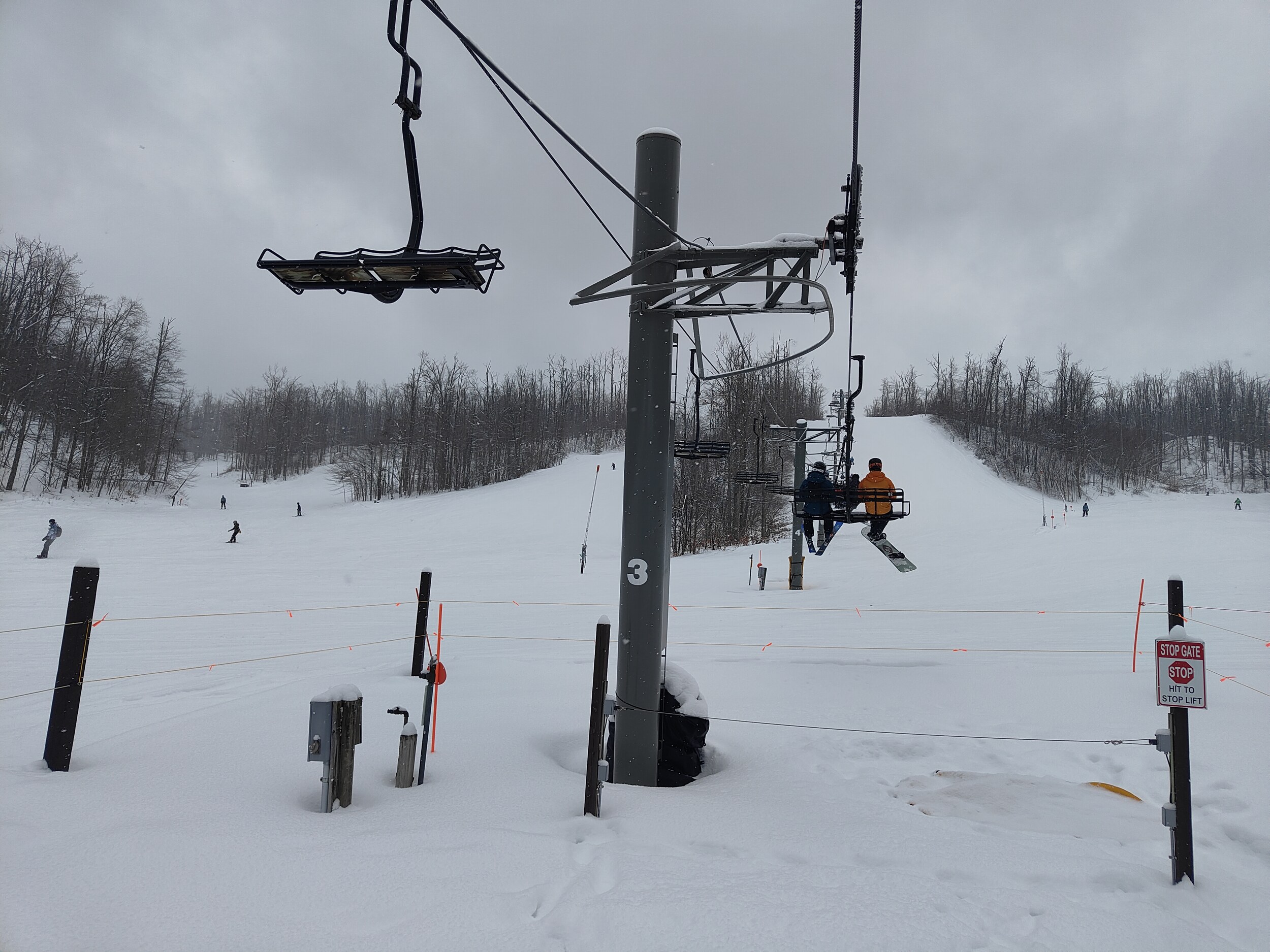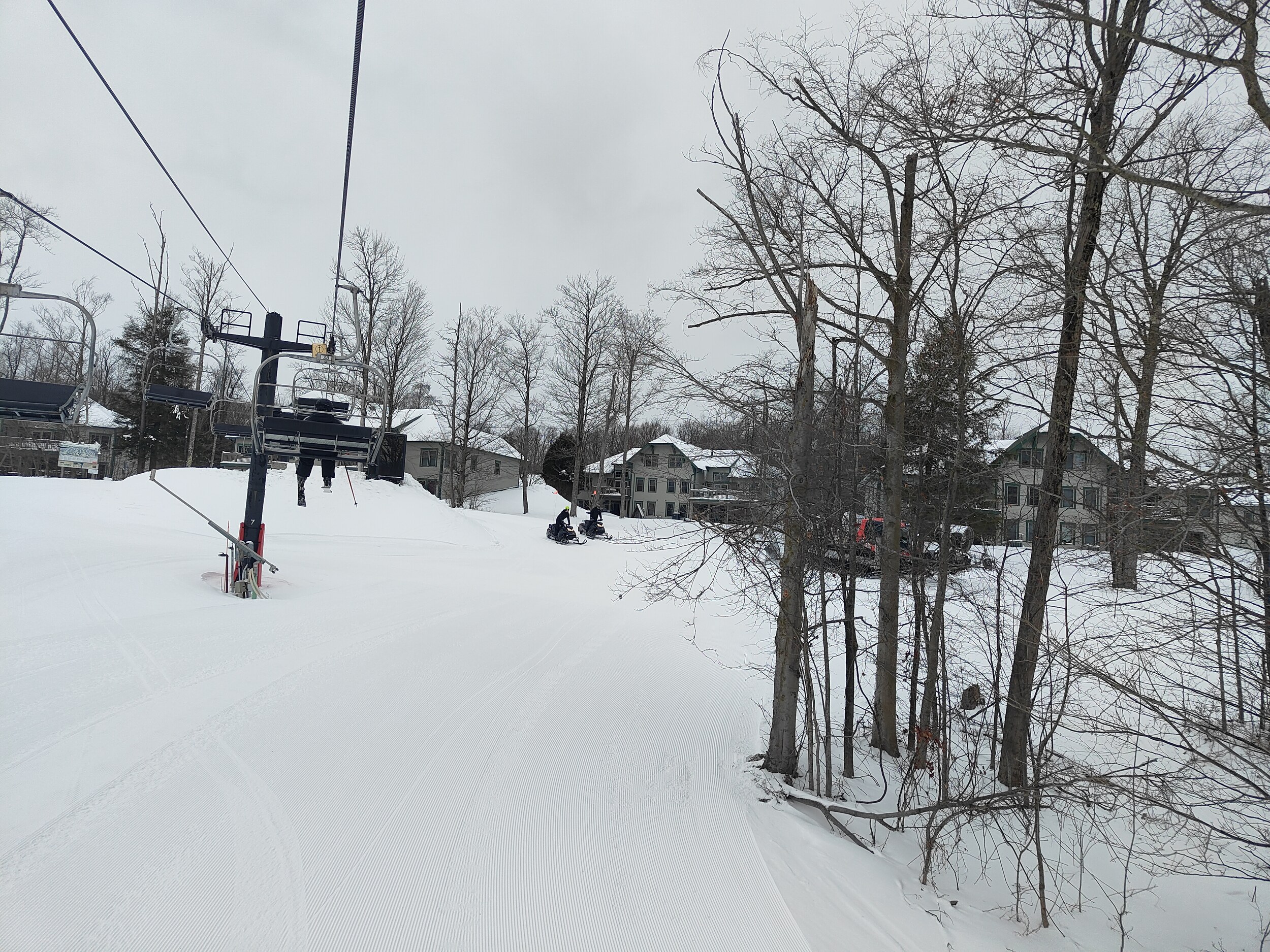 ist ein Resort am Fuss eines kleinen Hügels - ich habe mir länger überlegt, ob das hier derselbe Typ ist wie Afton Alps: Ein Gebiet aus einer Talsohle hinaus. Aber auch wenn die Verticals in etwa dieselben sind, ich glaube PK2 liegt tatsächlich am Fusse eine Hügels. Es gibt gleich drei Doppelsessellifte, die Pisten sind breit und super präpariert - aber eben, kurz. Kurz ist dann auch mein Aufenthalt hier. Denn auf das nächste Gebiet bin ich sehr gespannt.