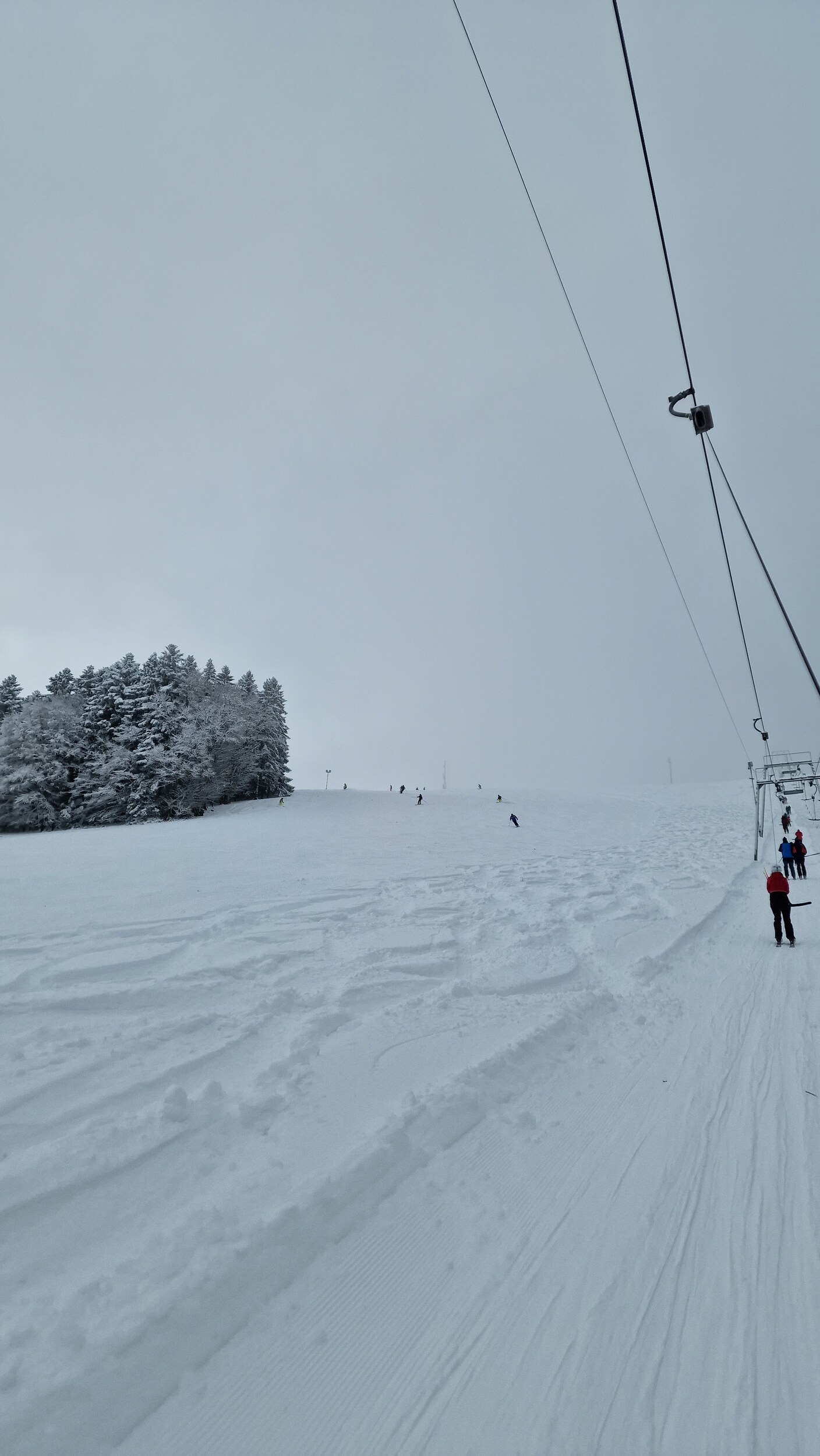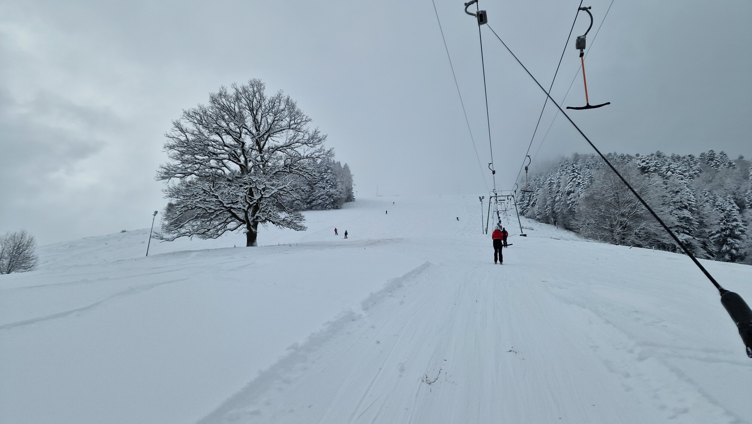Ich habe mir eine Halbtageskarte gekauft, da ich eigentlich gegen Mittag noch einen Abstecher nach Herrenschwand machen wollte. Die Rechnung habe ich allerdings ohne die Straße gemacht. Alternativprogramm war dann Belchen und Feldberg (viewtopic.php?p=52656#p52656). Anfangs war das Wetter noch sehr schlecht und die Sicht auf wenige Meter beschränkt, was wirklich eine Herausforderung darstellte. Es gibt zwar eine Piste direkt am Lift, die man problemlos fahren konnte, da ich mich am Lift orientieren konnte. Bei den anderen Pisten war ich aufgrund des Wetters jedoch ziemlich verloren, da die Pisten nicht markiert waren (Hab ich auch nicht erwartet) und man nicht immer der Präparierung folgen konnte. Daher hielt ich mich bei den ersten Fahrten nah am Lift auf. Die Piste direkt am Lift war überraschend griffig und sehr gut für Kurzschwünge geeignet, dazu anspruchsvolles Gefälle.