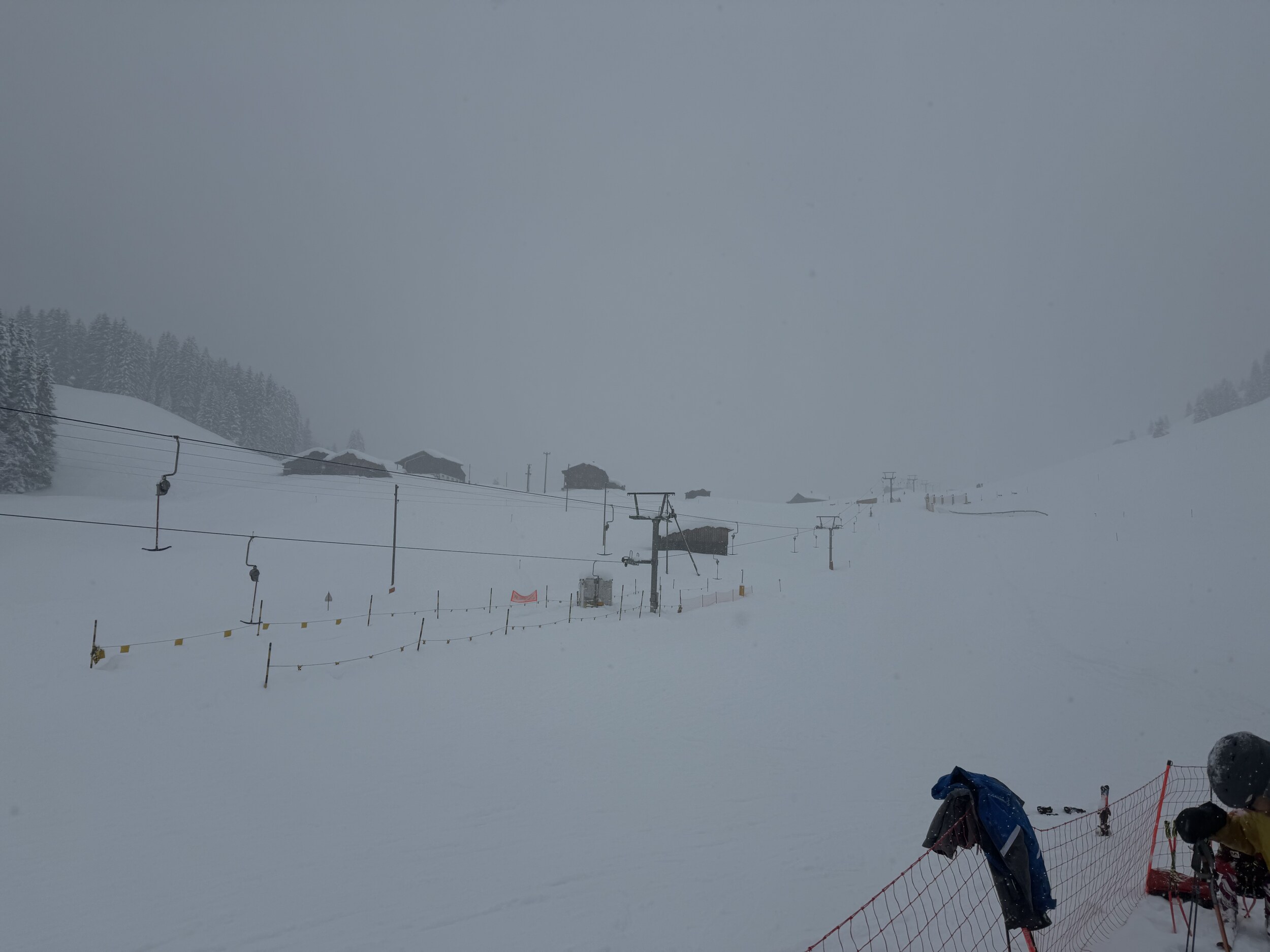 Um 14 Uhr wurde der Skilift wegen den schlechten Wetterbedingungen geschlossen. Hier wird man die nächsten Tage richtig gut skifahren können.