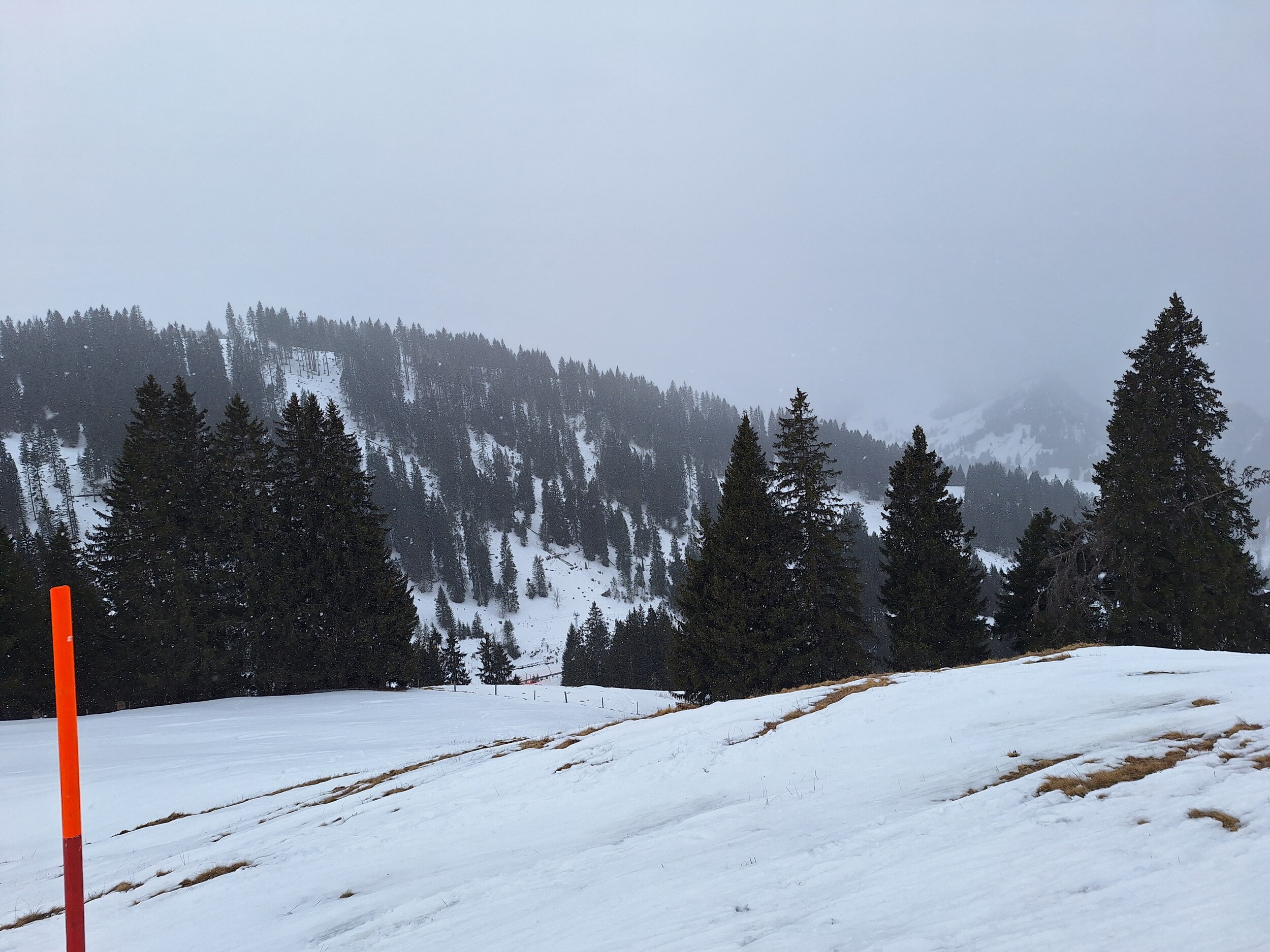 Für die Talfahrten reicht der Schnee leider nicht. An der Talstation hat es die Woche leider immer wieder mal geregnet.