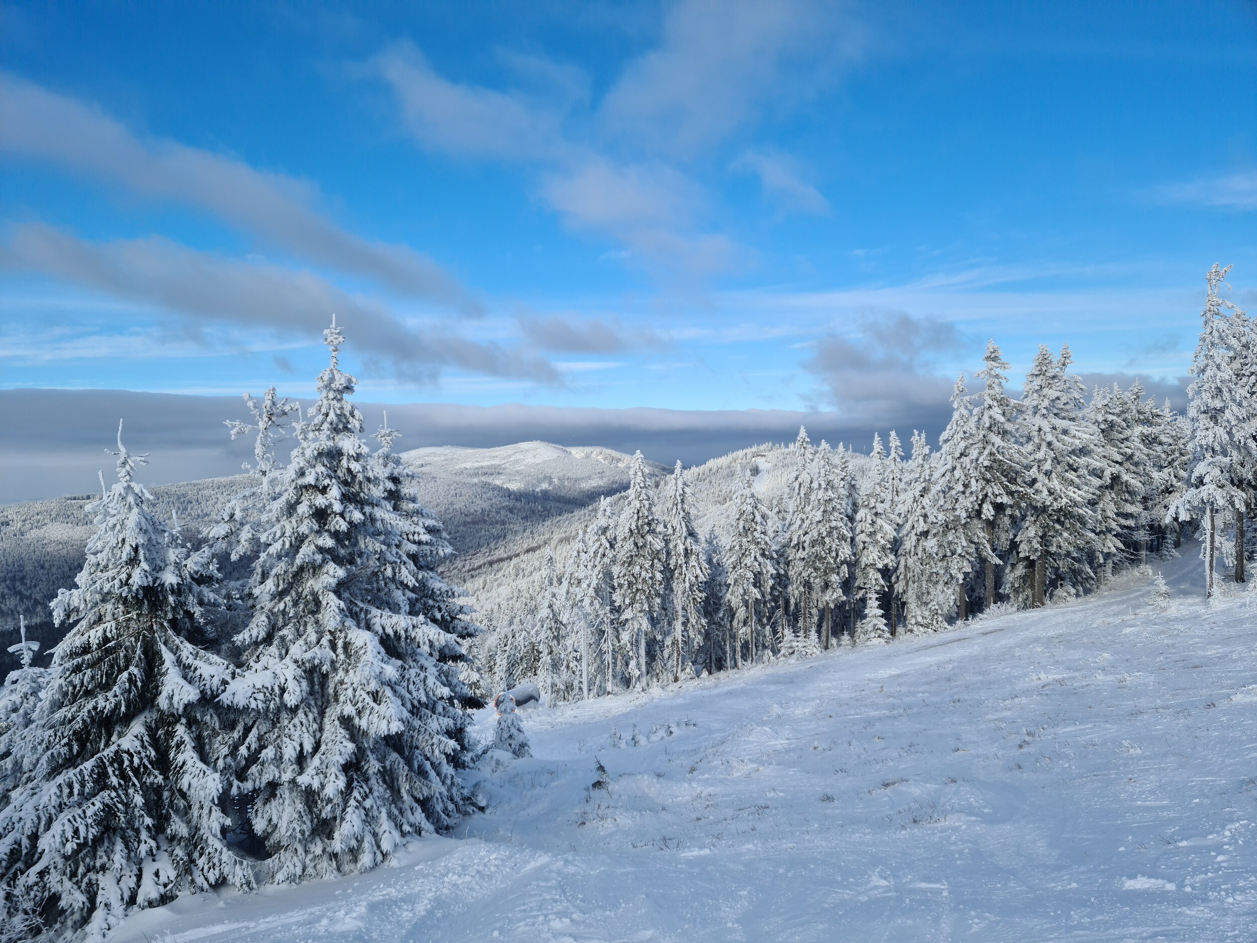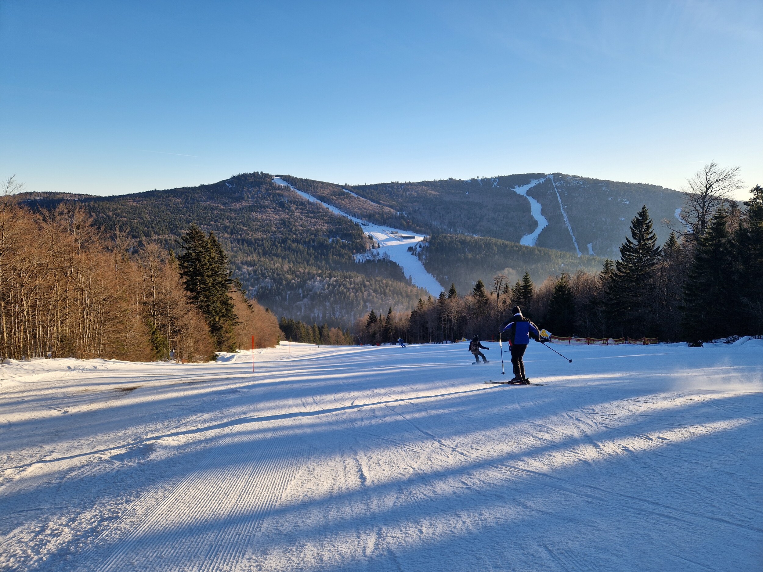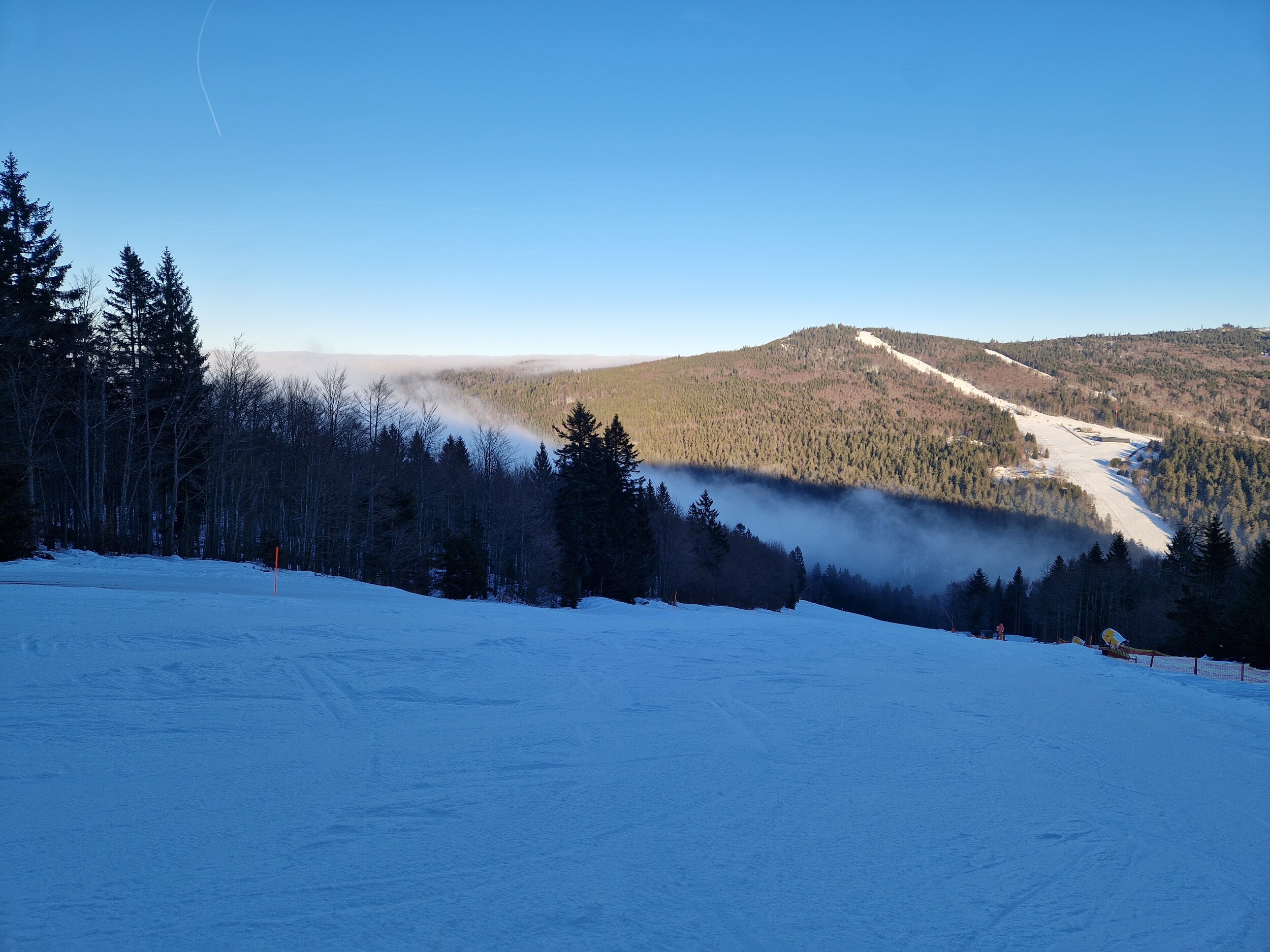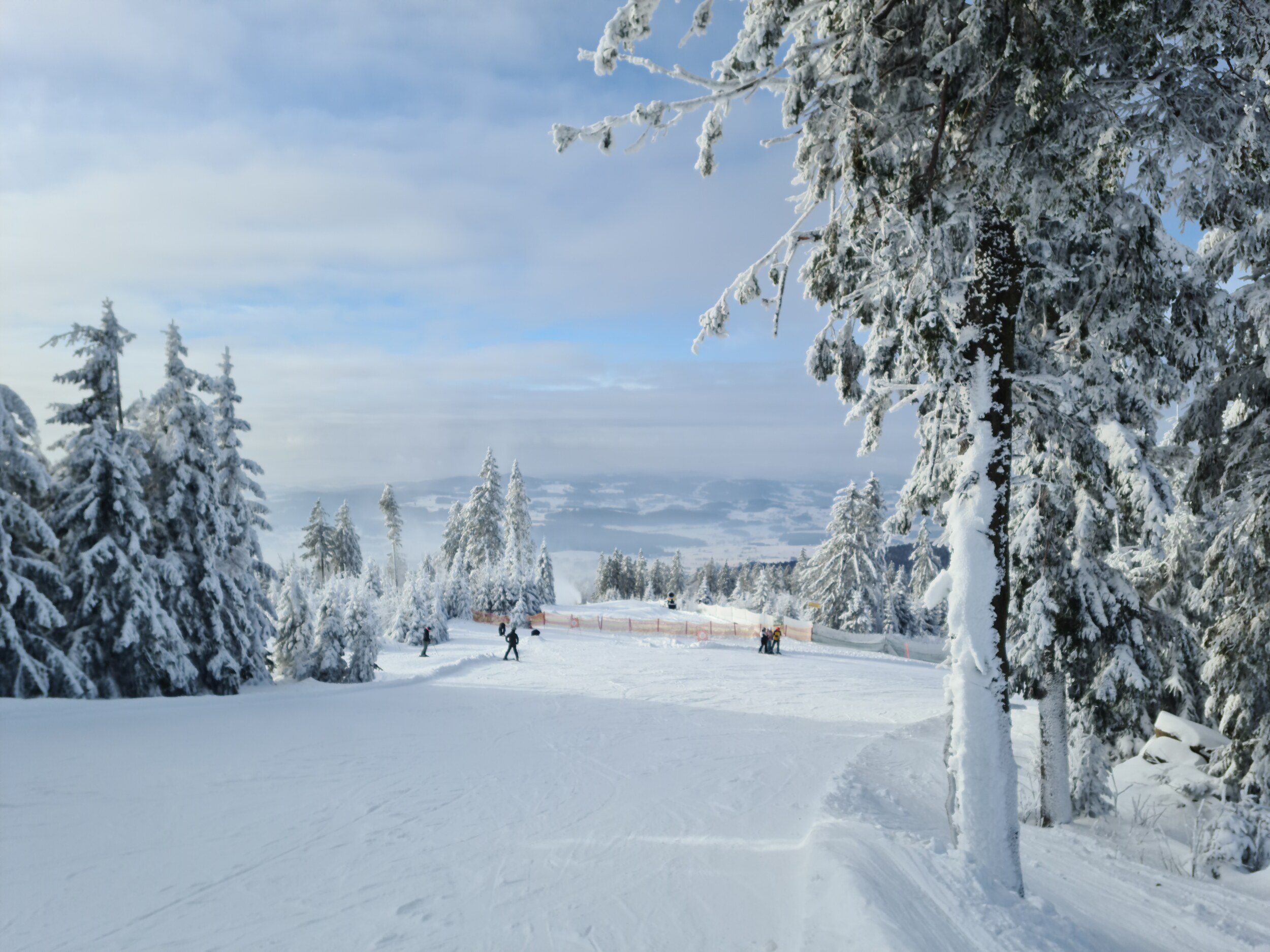 Die offenen Pisten gehen super. Dicke Schneeauflage und super griffig.