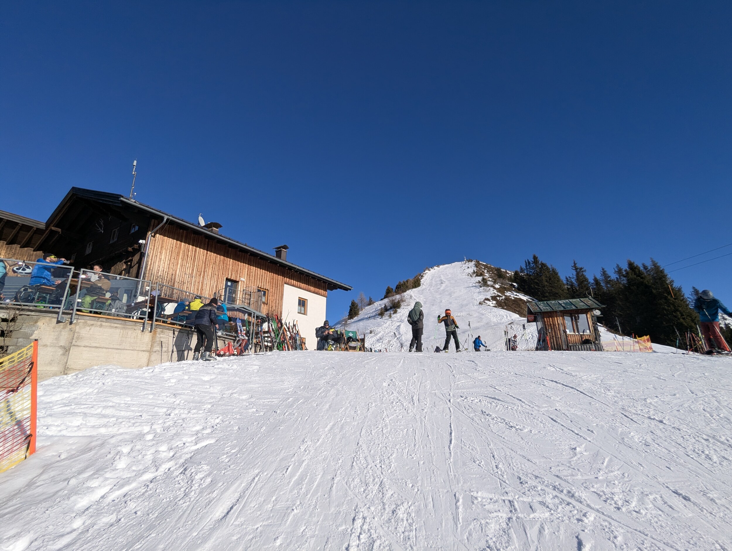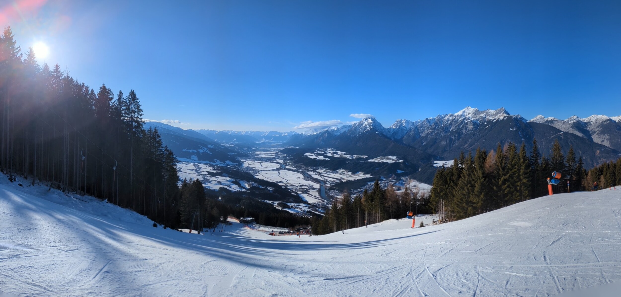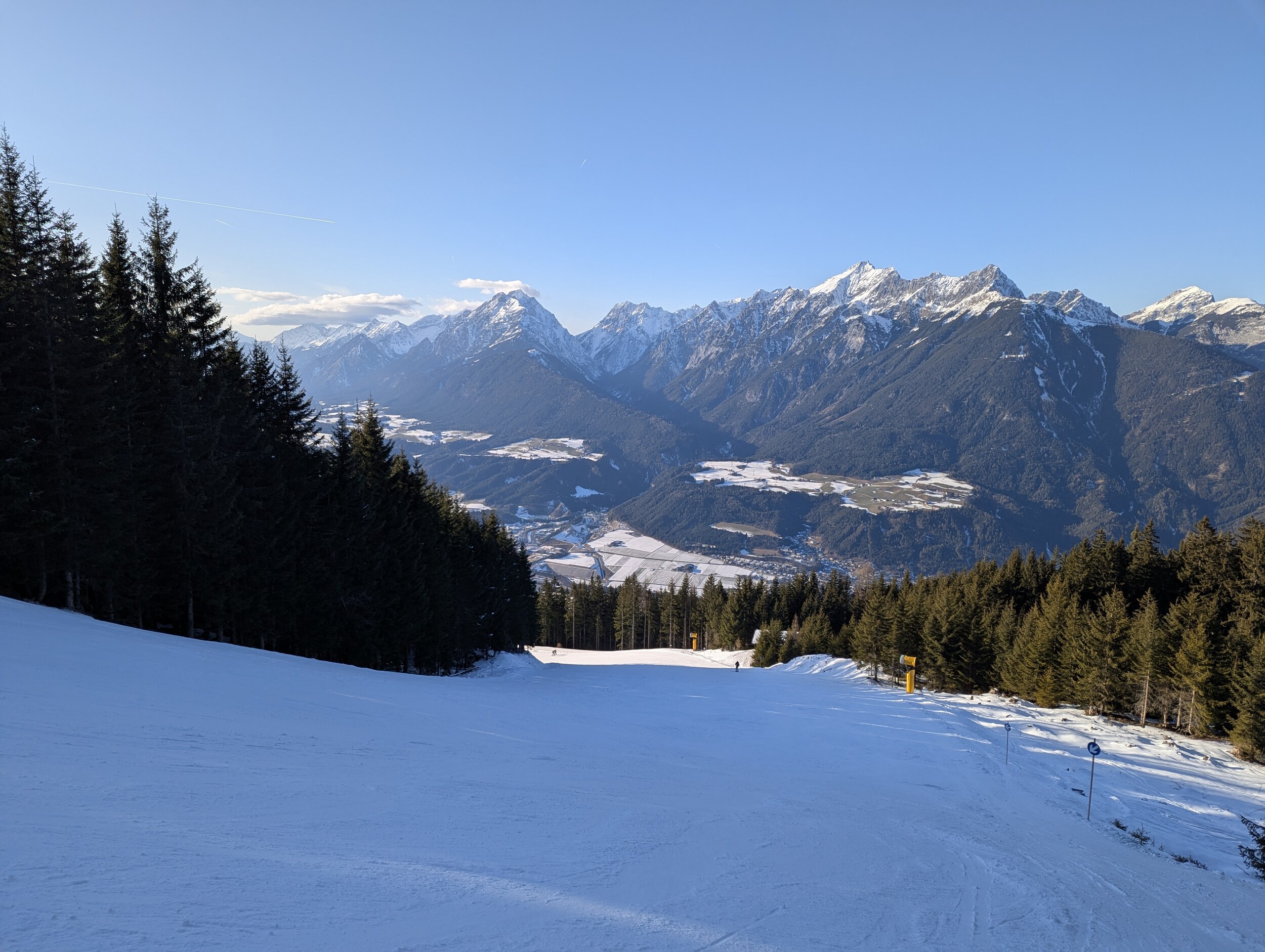 Nach der Einzelliftesafari nun zum Abschluss noch am Kellerjoch, hier war ich schon ein paar Jahre nicht mehr. Seitdem wurde ein Speicherteich gebaut und gut in die Beschneiung investiert. Leider gibt es aber auch den ESL in der ehemaligen zweiten Sektion nicht mehr, sodass es doch eine ziemlich langwierige Fahrt bergauf ist.