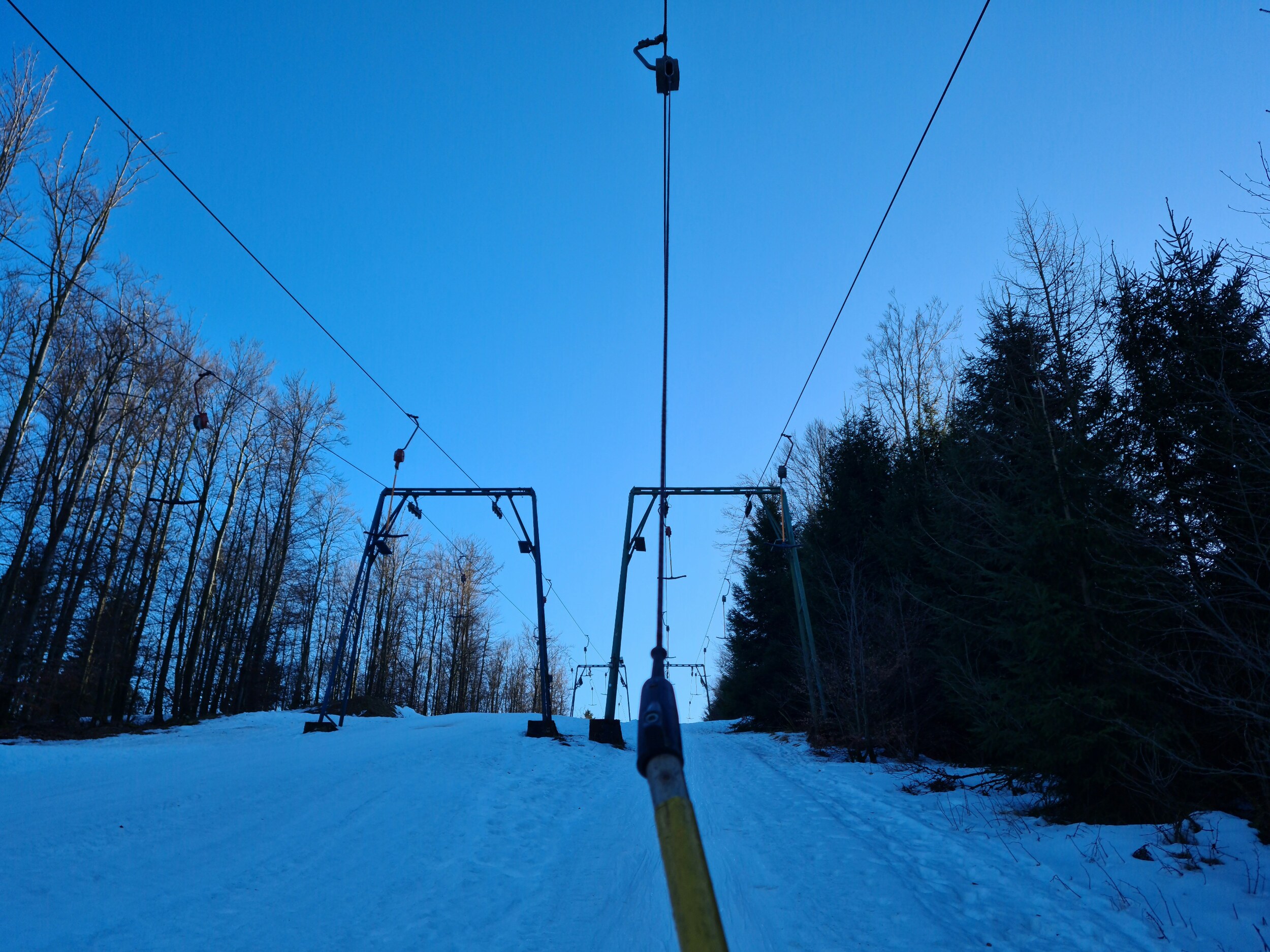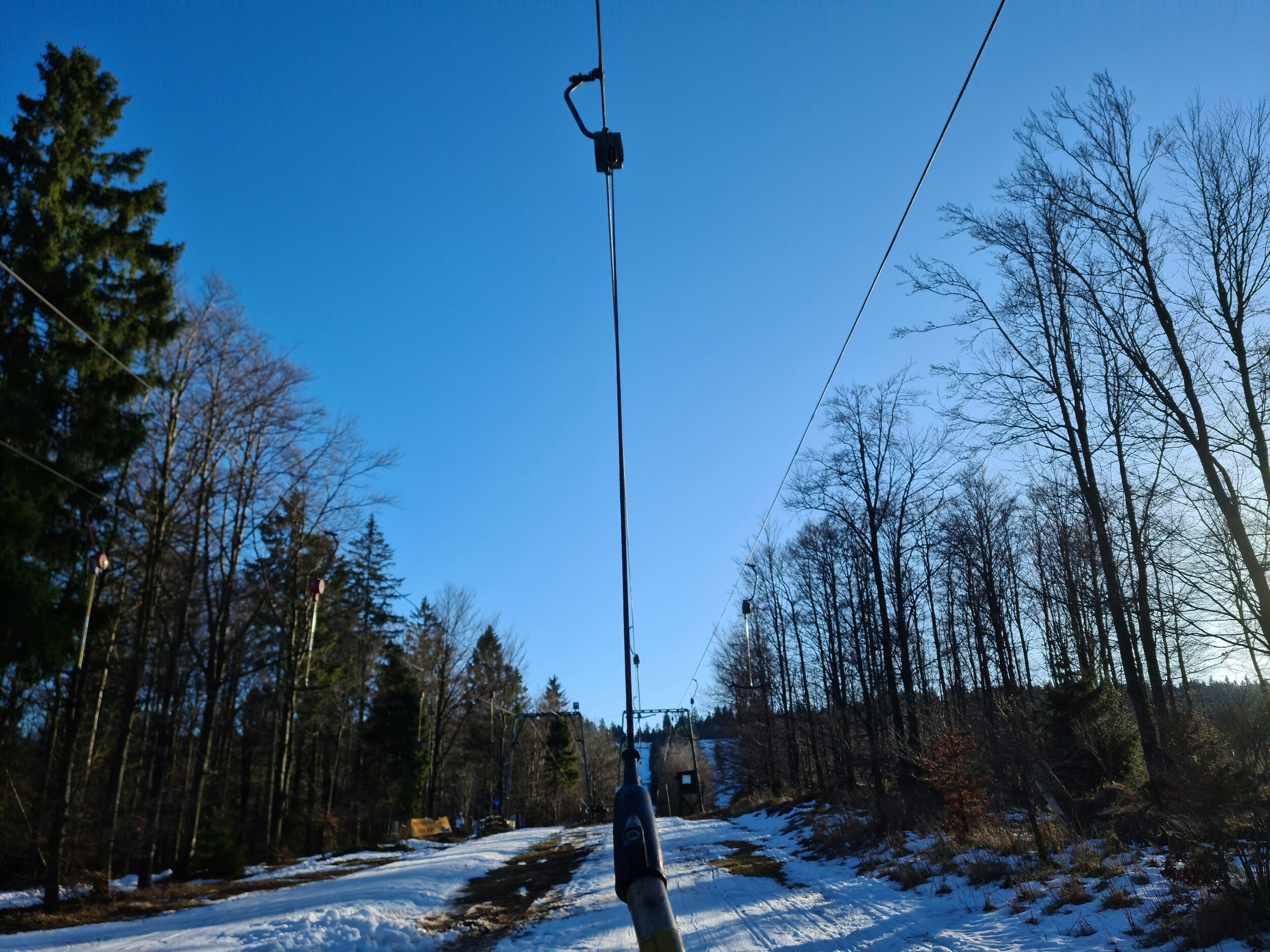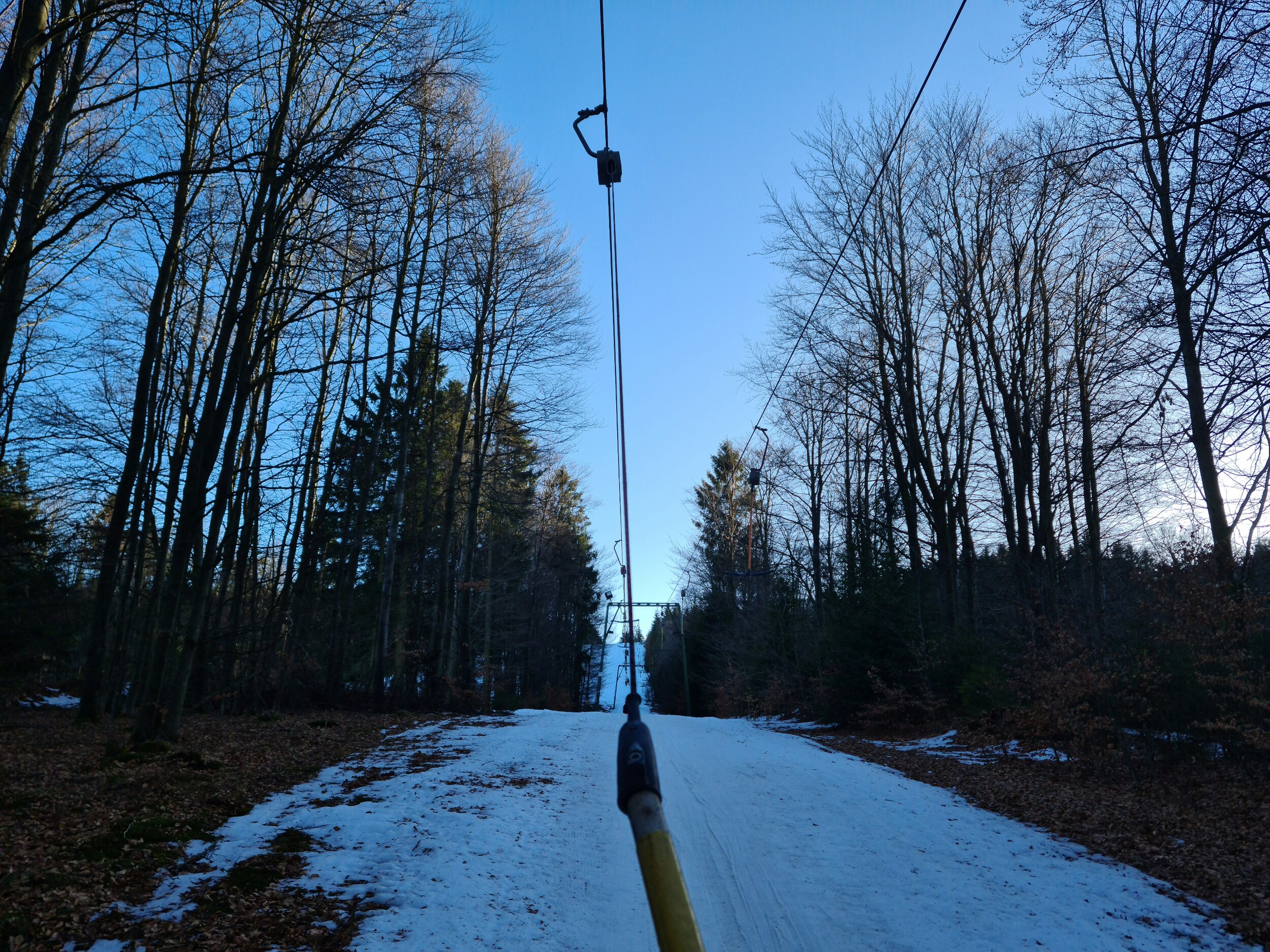 Heute ging es für mich erstmalig zur Hunau. Nach dem schneereichen letzten Wochenende hat es leider deutlich getaut, sodass die Naturschneedecke weitgehend weg ist. Dank Beschneiung ist das Gebiet mit dem langen Lift sowie dem Tallift geöffnet, der Gipfellift wird aufgrund eines Defekts erst nächste Saison wieder geöffnet. Der lange Lift ist mit über 1,3 Kilometern übringens der längste Schlepplift des Sauerlands und überwindet etwas über 190 Höhenmeter. Der Tallift doppelt den langen Lift auf etwa der halben Länge. Schön ist hier auch, dass die beiden Lifte mit schätzungsweise 3 m/s zu den schnelleren Liften im Sauerland zählen und teilweise auch noch die roten Leitnergehänge haben, teilweise aber auch neuere Silberne.