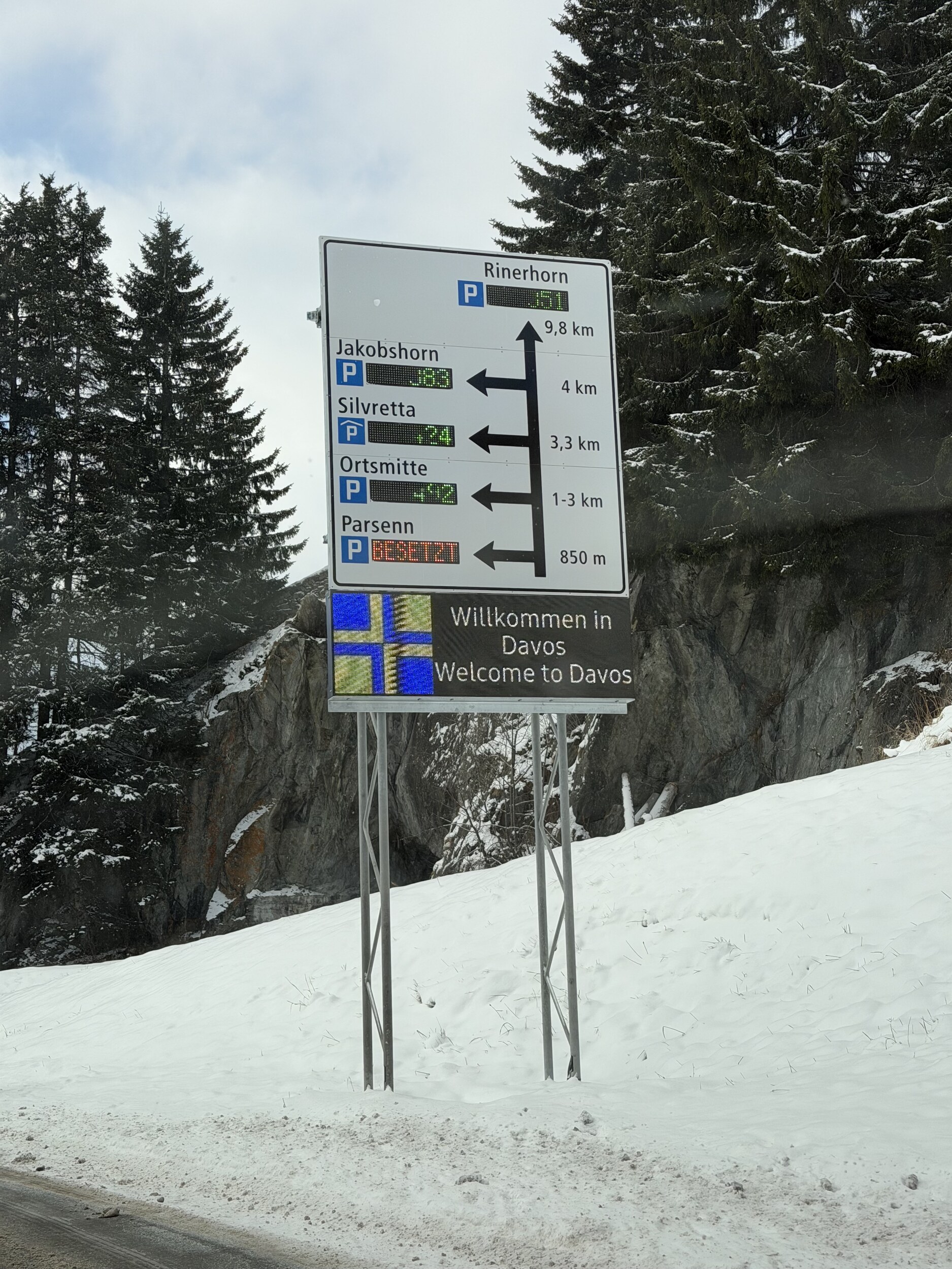 Neue Tafel mit Angabe freier Parkplätze vor Davos: