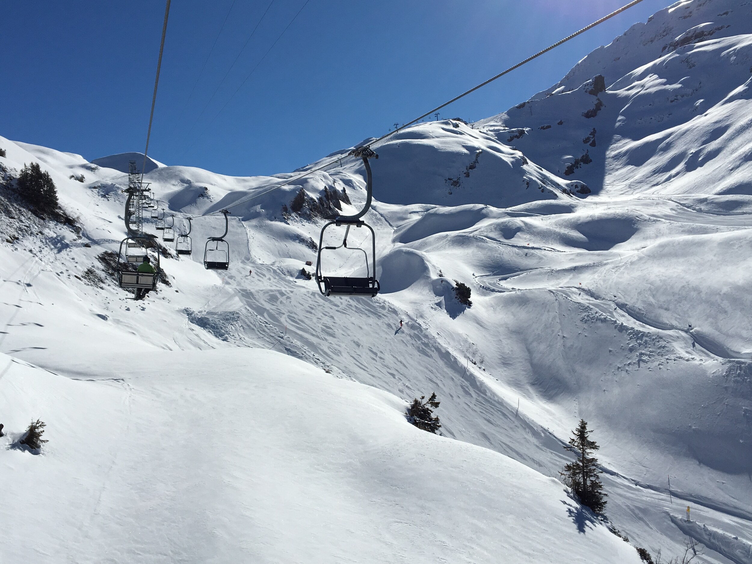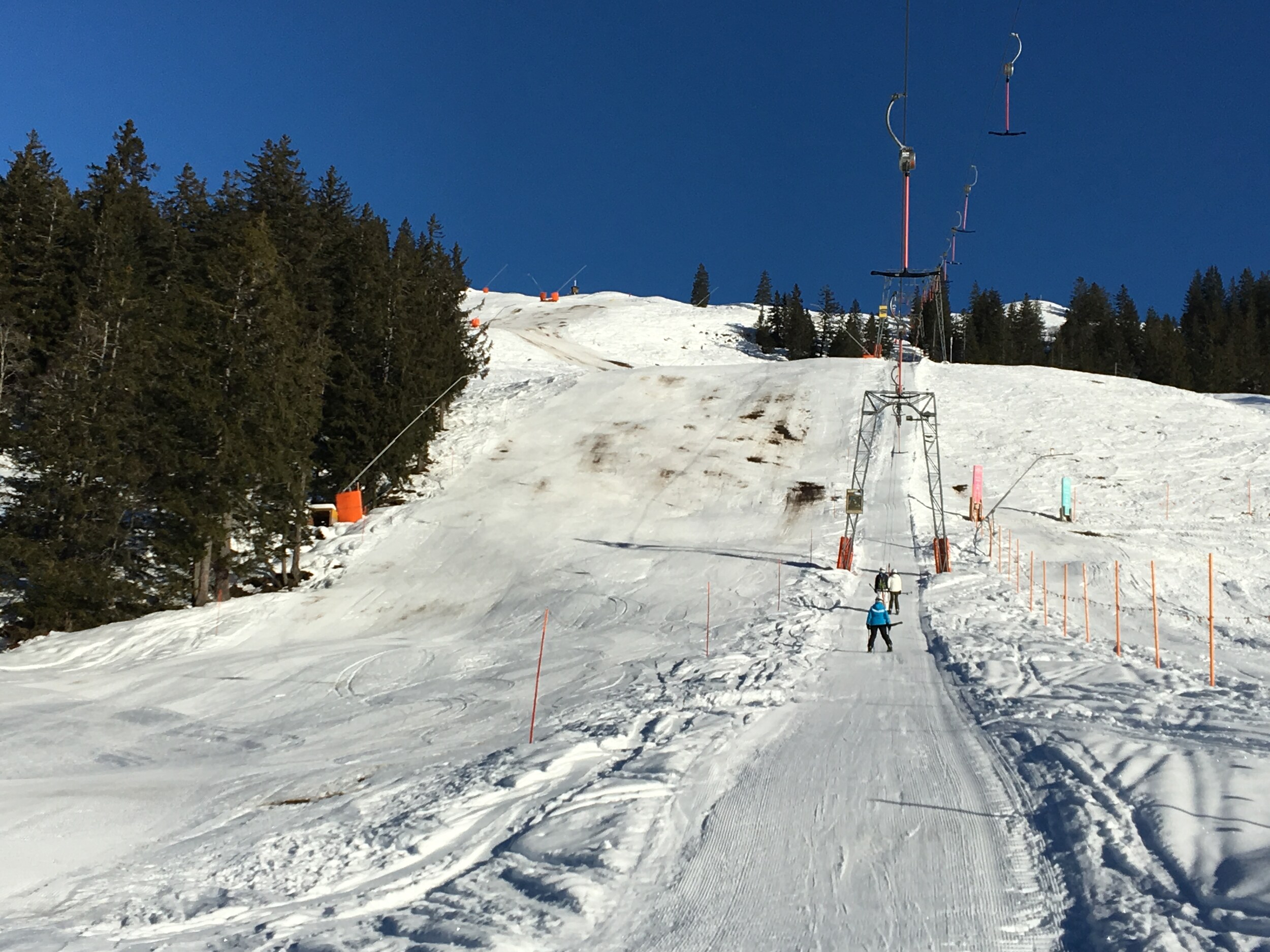 Einziger Wermutstropfen: Die Sesselbahn ist ein wenig langsam und wird bei Fussgängern/Schlittlern runtergebremst. Eine KSB wäre wünschenswert. War an diesem Tag nicht so tragisch hatte kaum Leute.