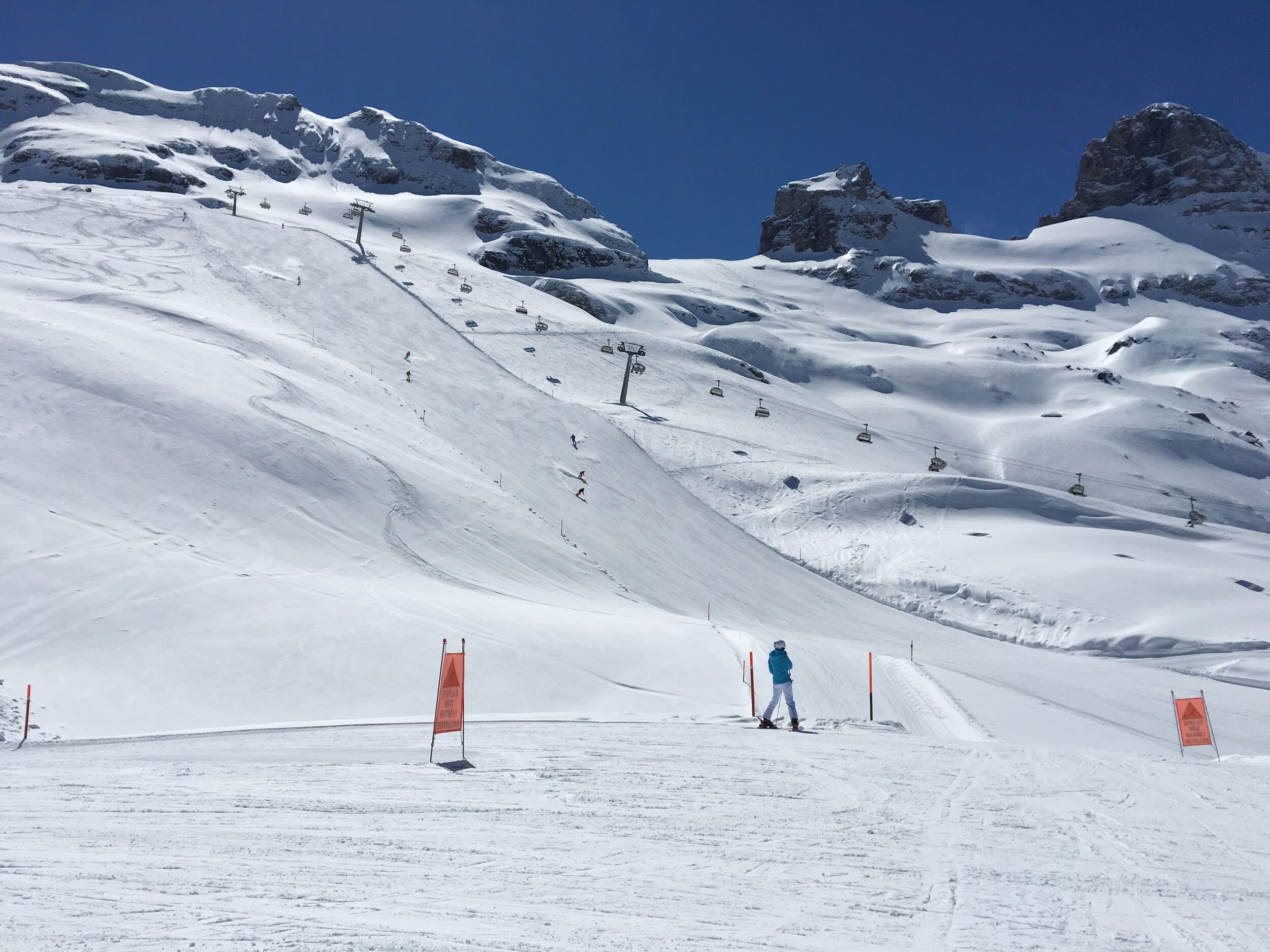 Die blaue war leider nur zwei Spuren breit neu präpariert worden, aber immer noch vieeeel besser als am Titlis.