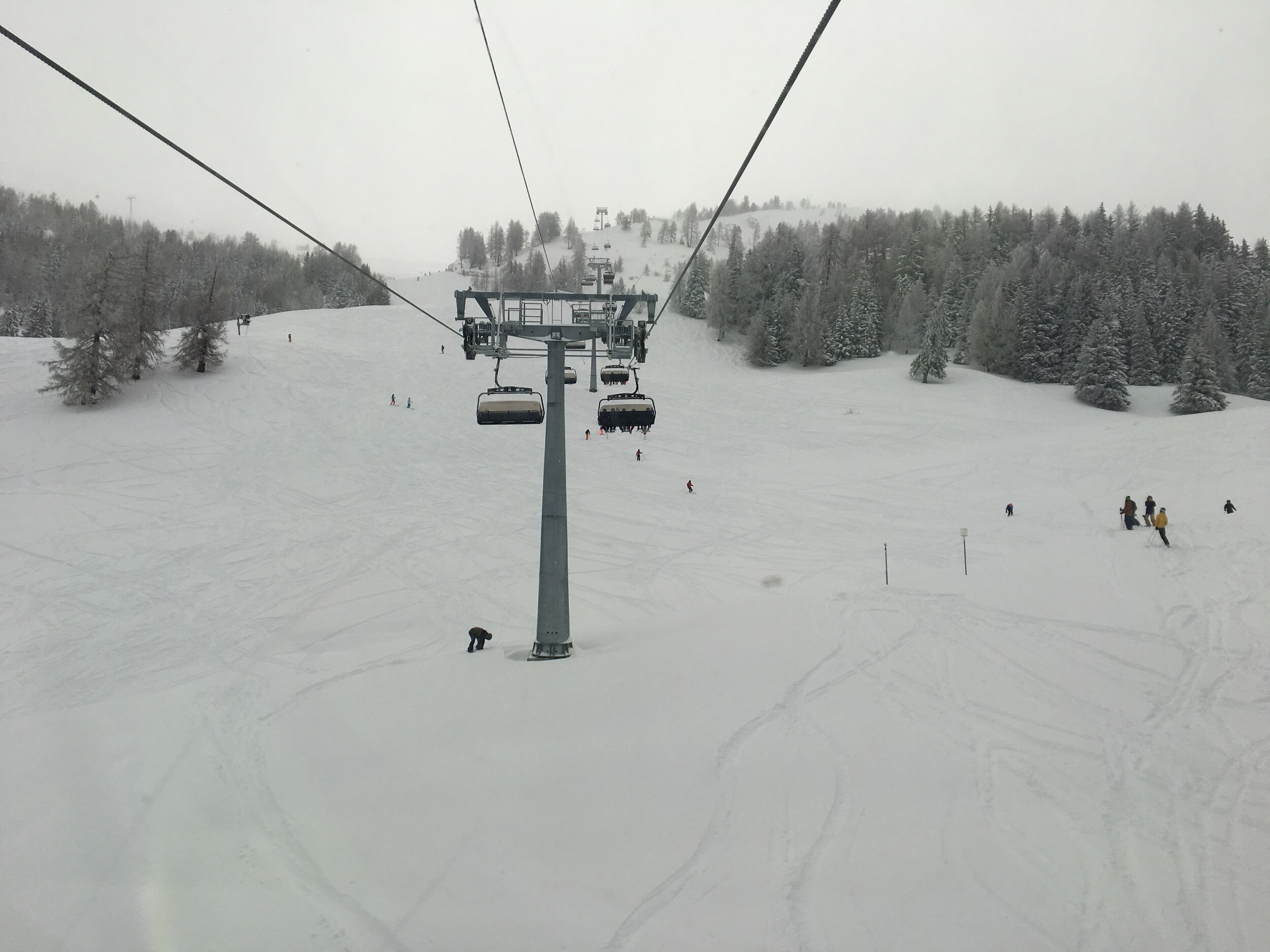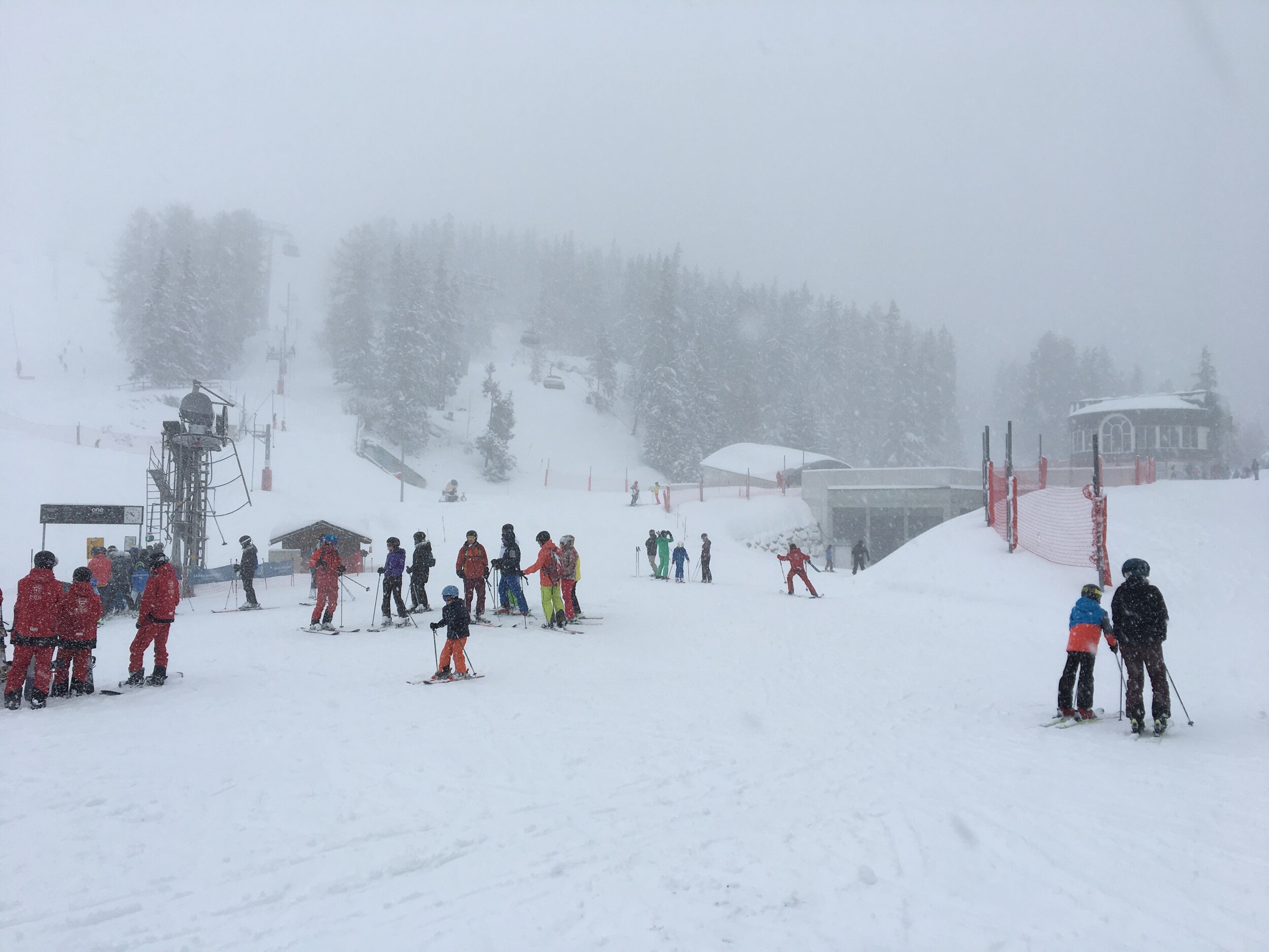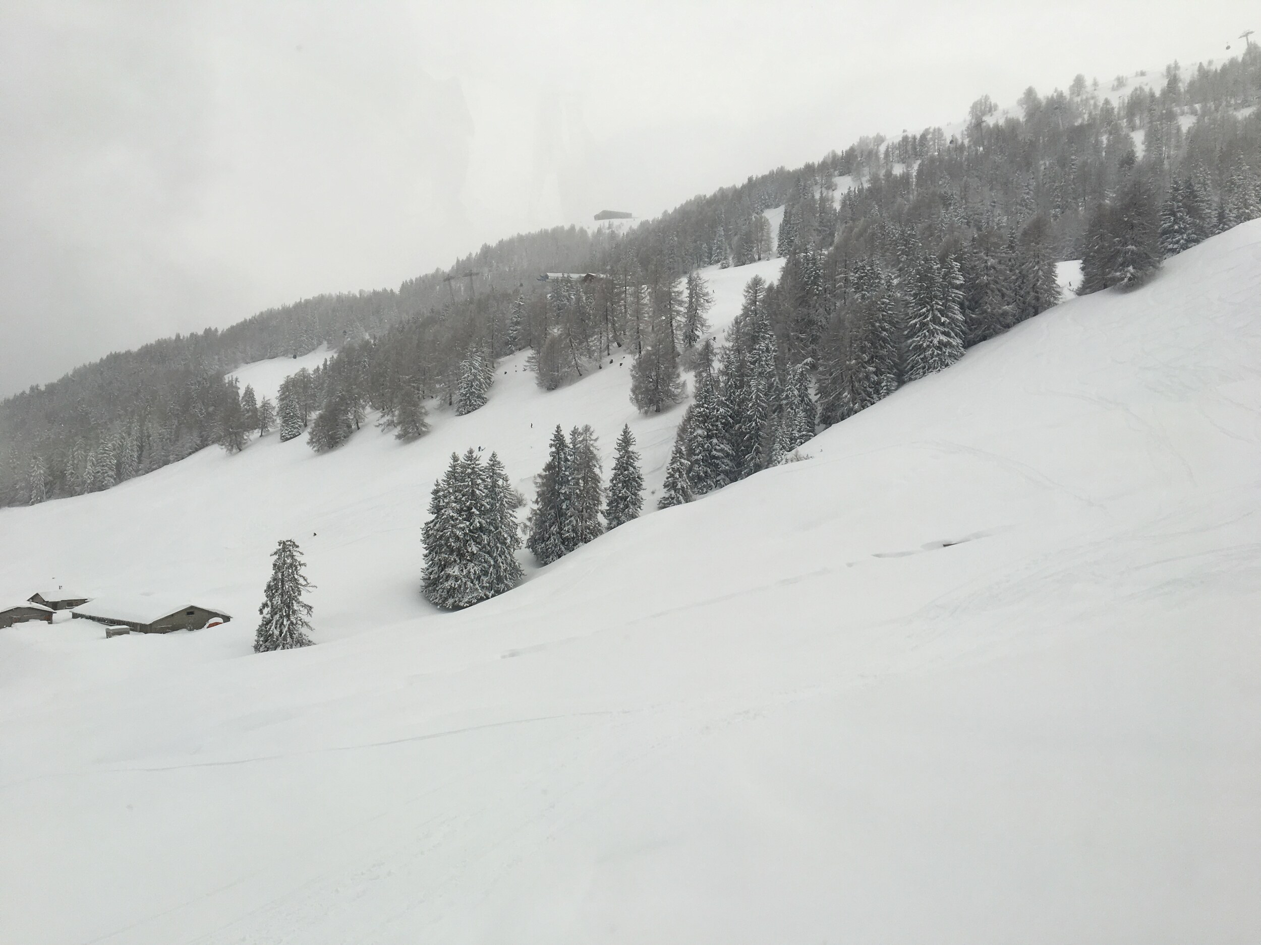 Auf der Talabfahrt gab es dann eine kurze Aufhellung und die Sicht war gut. Die „Piste“ war allerdings katastrophal zu fahren. Die Lanzen liefen und bildeten so eine harte, eisige Schicht auf viel Neuschnee, bei welcher ich hin und wieder einbrach. Abrupte stopps sind die Folge. :sauer: Da lässt man die Bahnen geschlossen bis 10 Uhr und schafft es nicht mal die Pisten bis dann frisch zu präparieren.