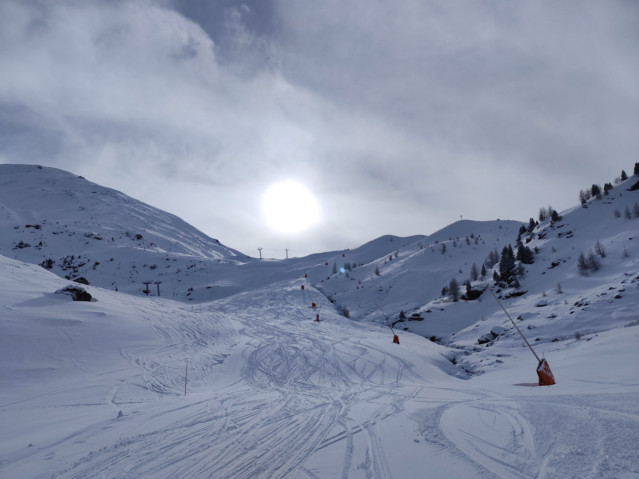 Die schwarze Talabfahrt hat wenig Schnee, war aber am Morgen hervorragend zu fahren, am Nachmittag war jedoch der Schnee aufgrund der Wärme und des Föhns weich. Die rote Piste von Seefeld ist absolut perfekt und ohne Steine, einfach großartig! Die blaue Piste bis Breite Steg ist im oberen Teil super, im unteren Teil fehlt es jedoch wirklich Schnee und es gibt viele Steine. Die Rückpiste bis Brandalp hat etwas zu wenig Schnee, aber es geht noch. Aber insgesamt super: wenig Leute, perfekt präparierte Pisten, guter Schnee.