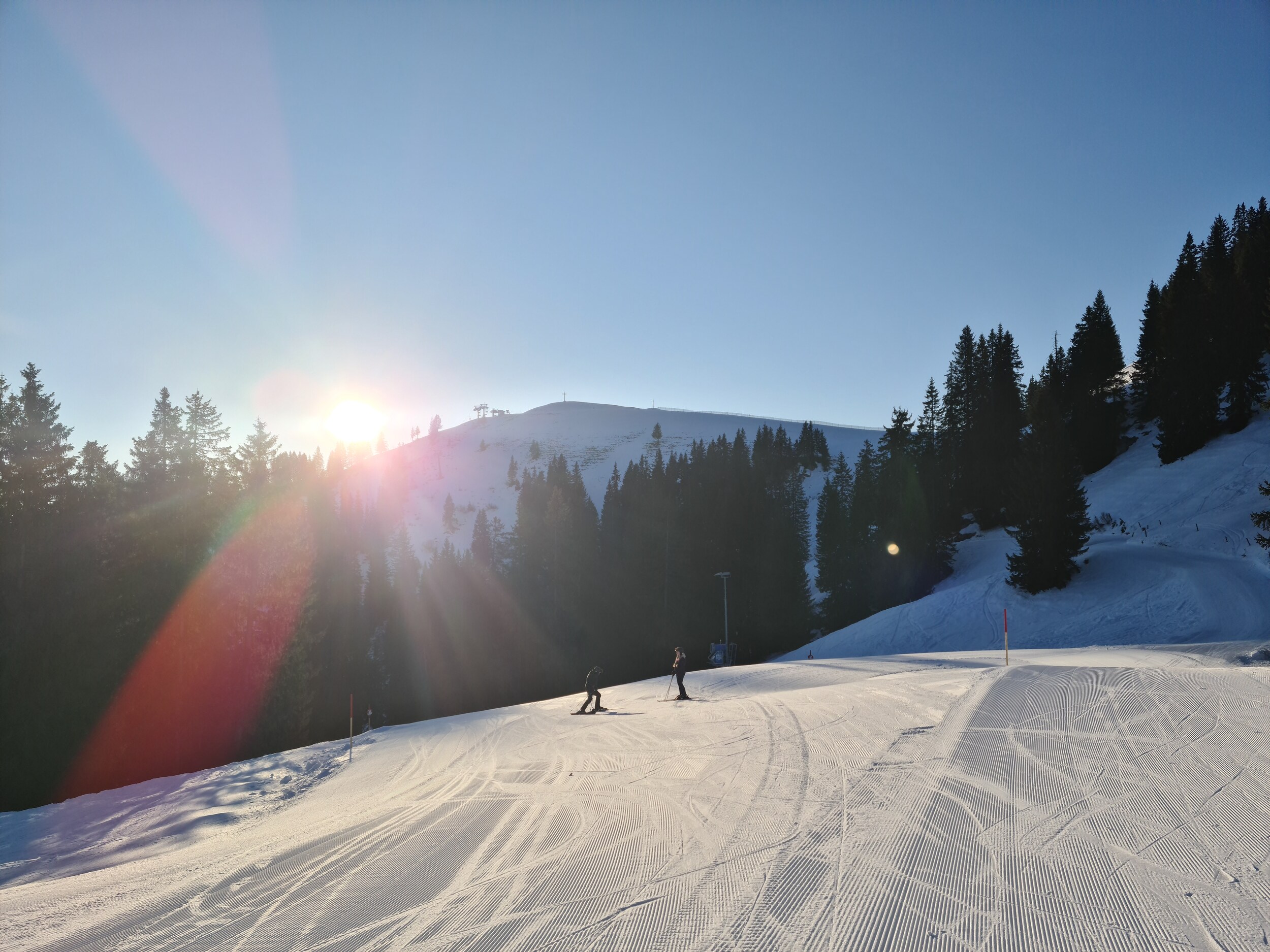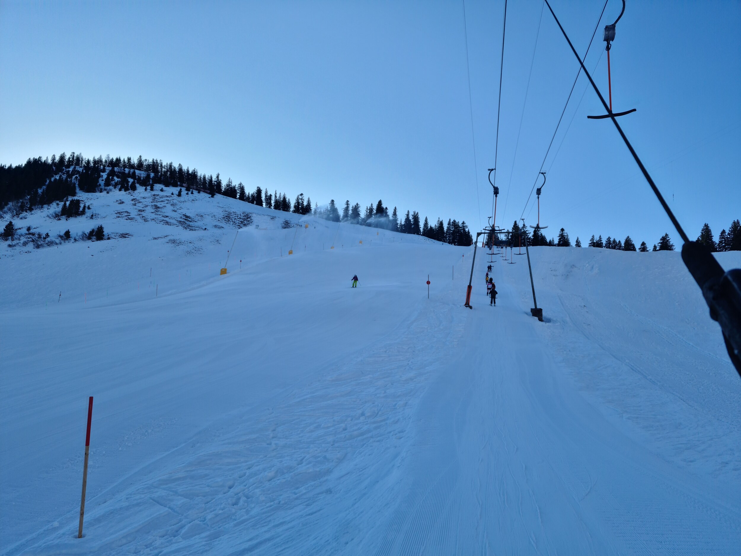 Zu den Pisten: Die Beschneiten Pisten haben eine gute Schneeauflage und waren bis Mittag super zu fahren. Ab Mittag waren die Abfahrten an den beiden Vierersesselbahnen aber schon gut zerfahren, mit Buckeln und glatten Stellen. Der Dreitannenlift ist leider nicht beschneit, dieser war besonders im oberen Teil von der Schneelage her sehr grenzwertig. Auch der untere Teil vom Kurvenlift ab der Abzweigung zu diesem war nicht sehr gut, teilweise kommt der Dreck raus und teilweise auch knollig. Die Abfahrten Stümpflingbahn, Osthang und Kurvenlift überschneiden sich teilweise, dadurch ist des auf diesen Abschnitten auf den Pisten oft etwas voller. Der Nordhang hat mir sehr gut gefallen, ein schöne kupierte Carvingpiste.
