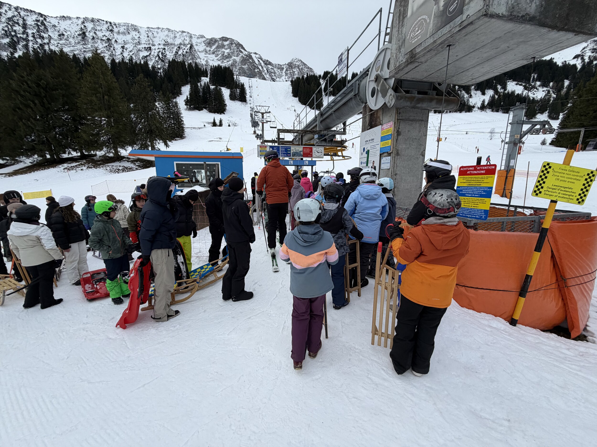 Einmal Tellerlift muss sein: Relativ grosser Andrang beim Sessel, es sins Schulklassen am Schlitteln: Die blaue Talabfahrt ist die beste Piste: